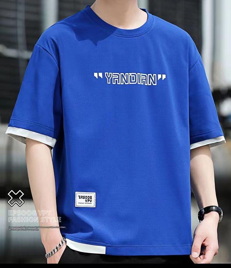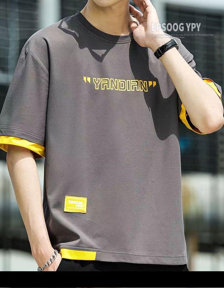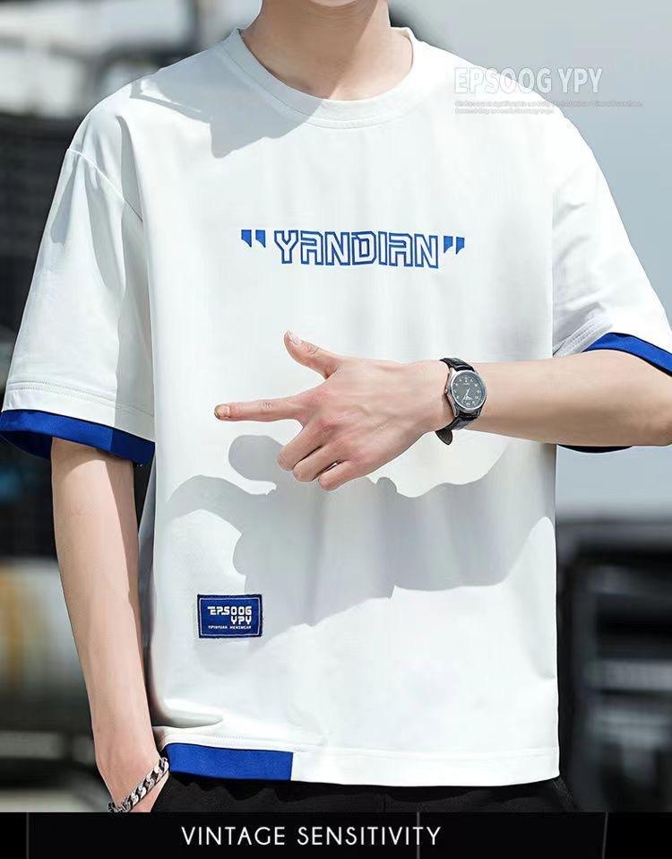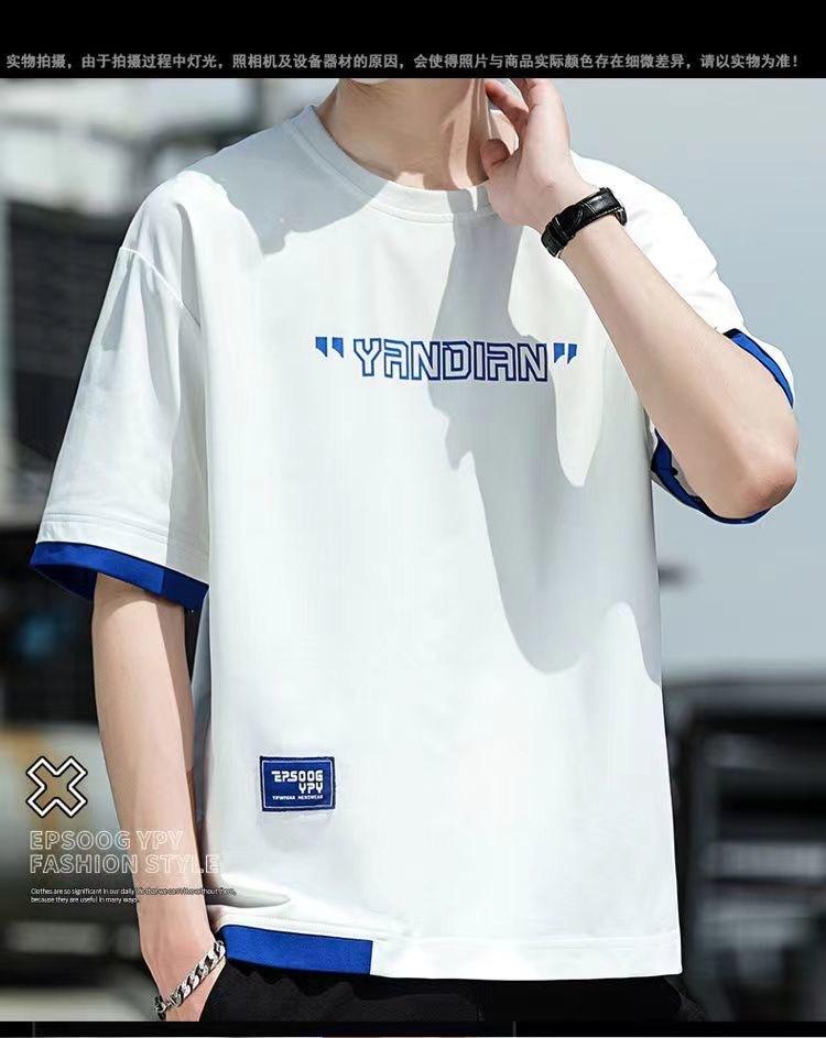 Compra Camiseta de manga corta de verano para hombre, holgada, con cuello redondo, de marca moderna, de media manga, estampada, informal, para estudiantes guapos. al por mayor en Joom.pro