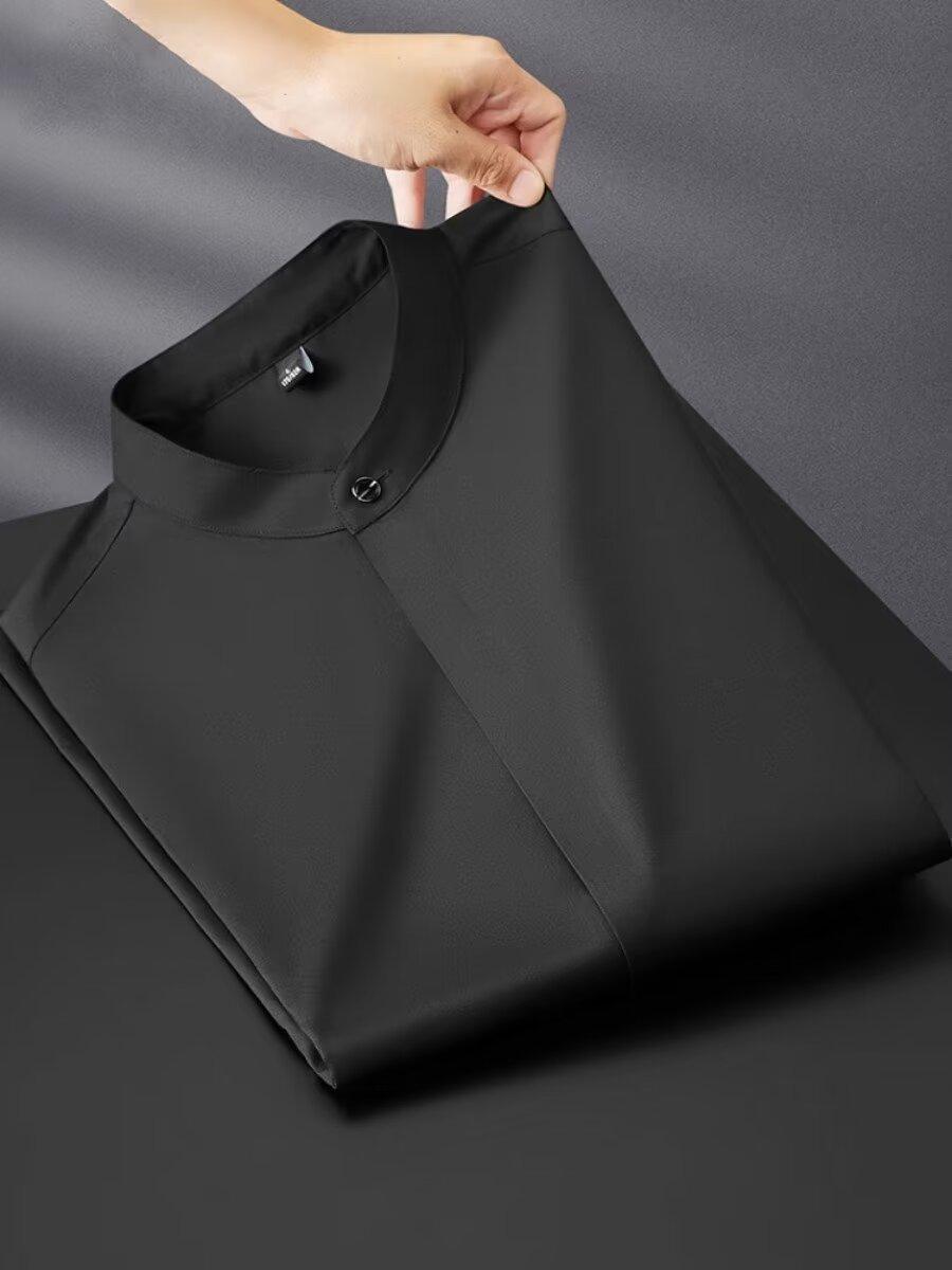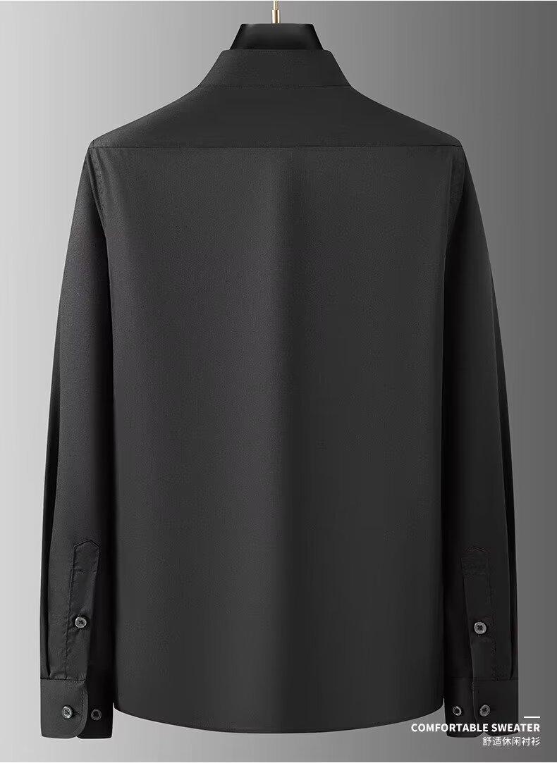 Camisa de manga larga sedosa sin planchar para hombre, primavera y otoño, corte entallado, color liso, informal, de negocios, 2025
