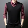 Suéter tipo camisa para hombre, dos grandes marcas de prendas de punto, para jóvenes y de mediana edad, primavera y otoño de 2025, nuevo top con solapa para hombre.