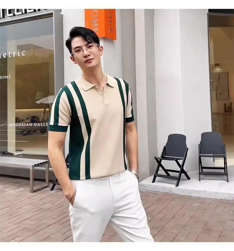 Verano nuevo solapa POLO suéter suéter manga corta para hombre seda de hielo slim negocios camiseta comercio exterior transfronterizo venta al por mayor