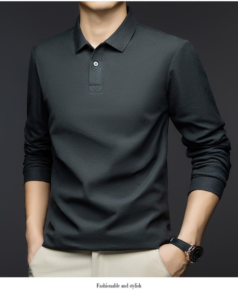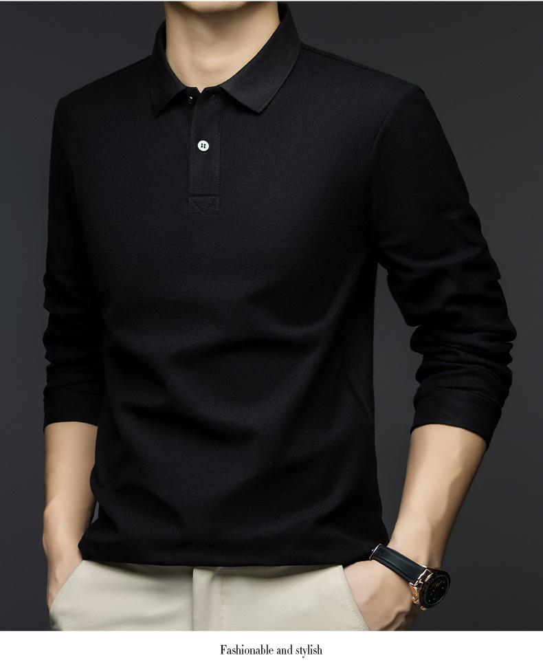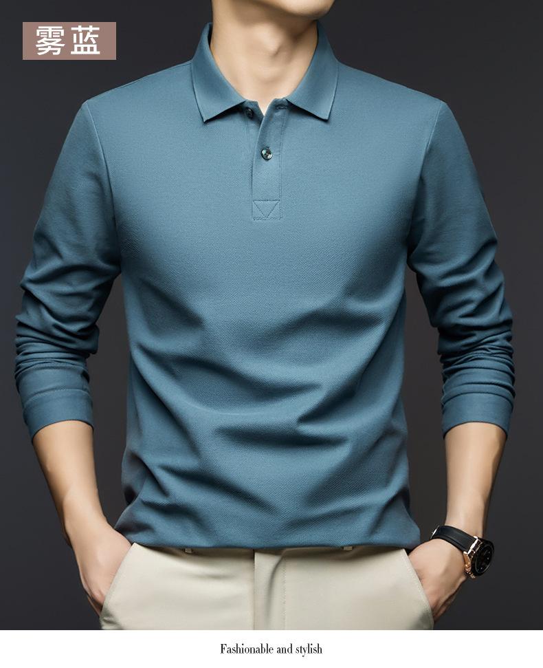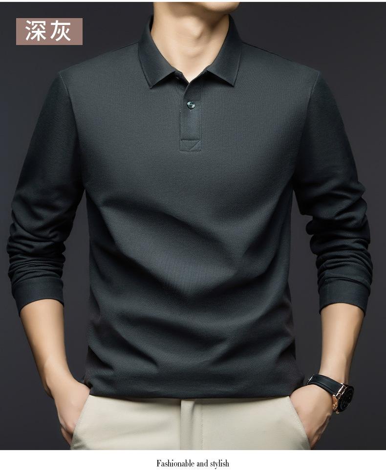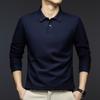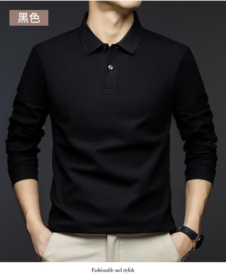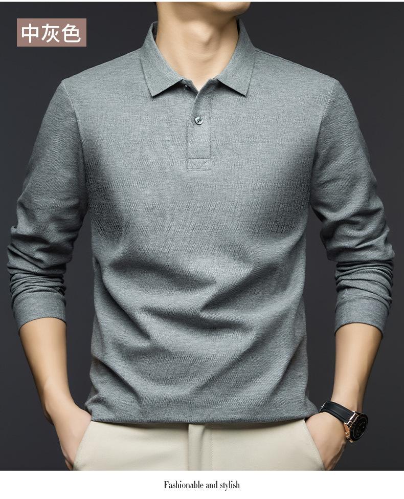 Camiseta de manga larga de algodón puro para hombre, nueva camisa polo informal de negocios de mediana edad con solapa de color sólido para primavera y otoño.