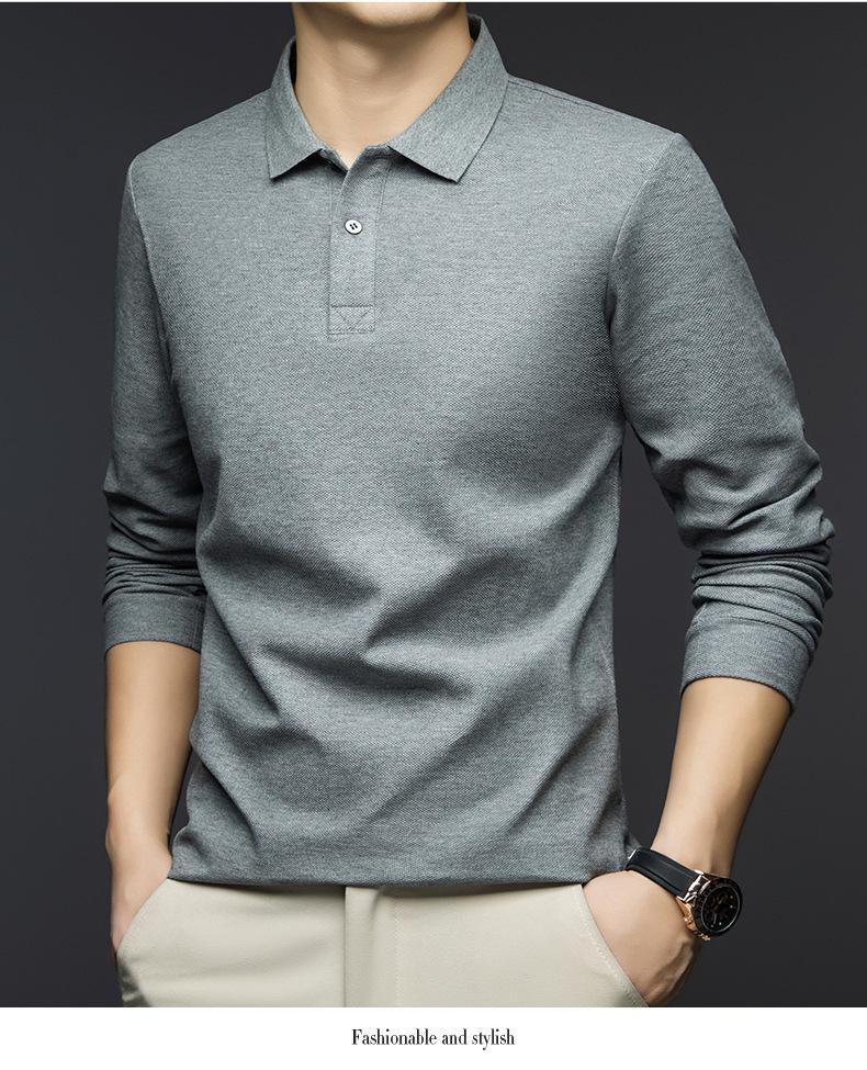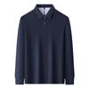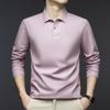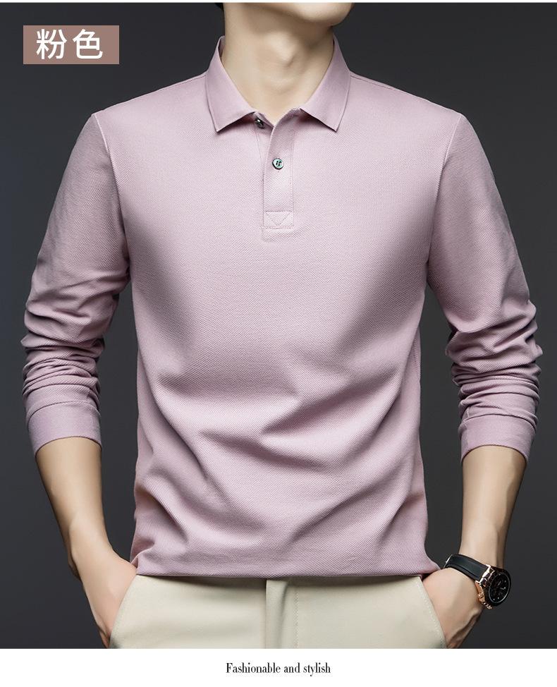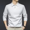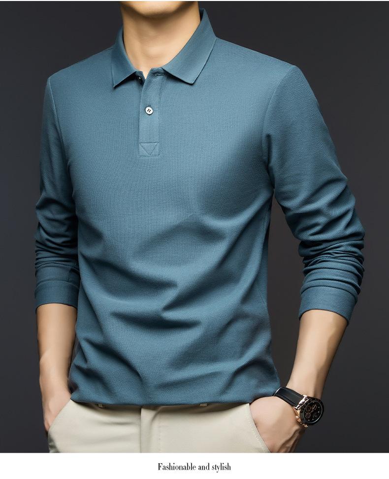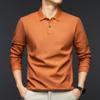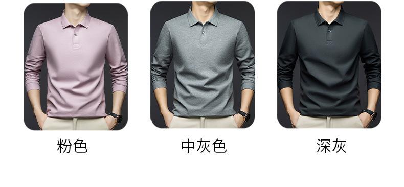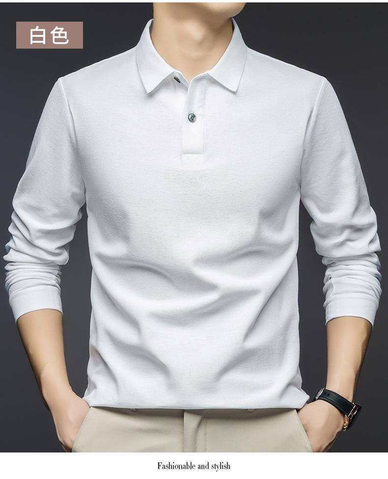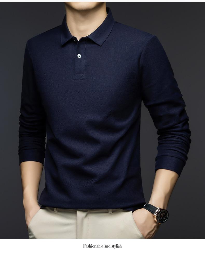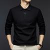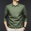 Camiseta de manga larga de algodón puro para hombre, nueva camisa polo informal de negocios de mediana edad con solapa de color sólido para primavera y otoño.
