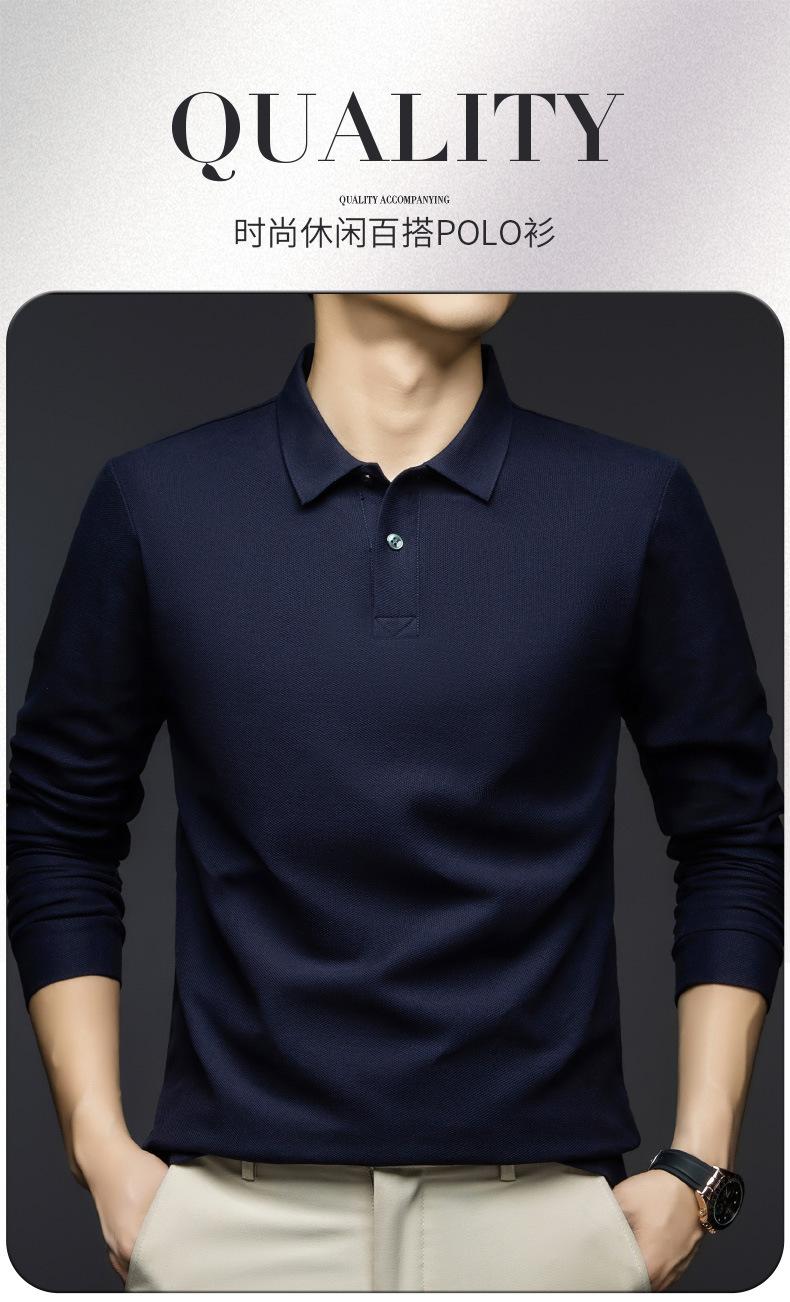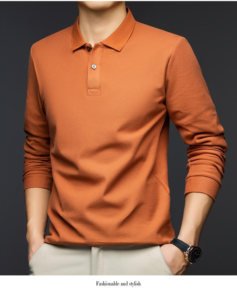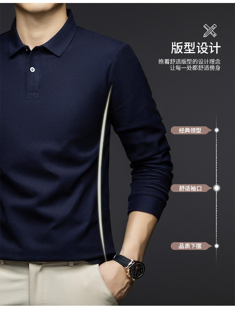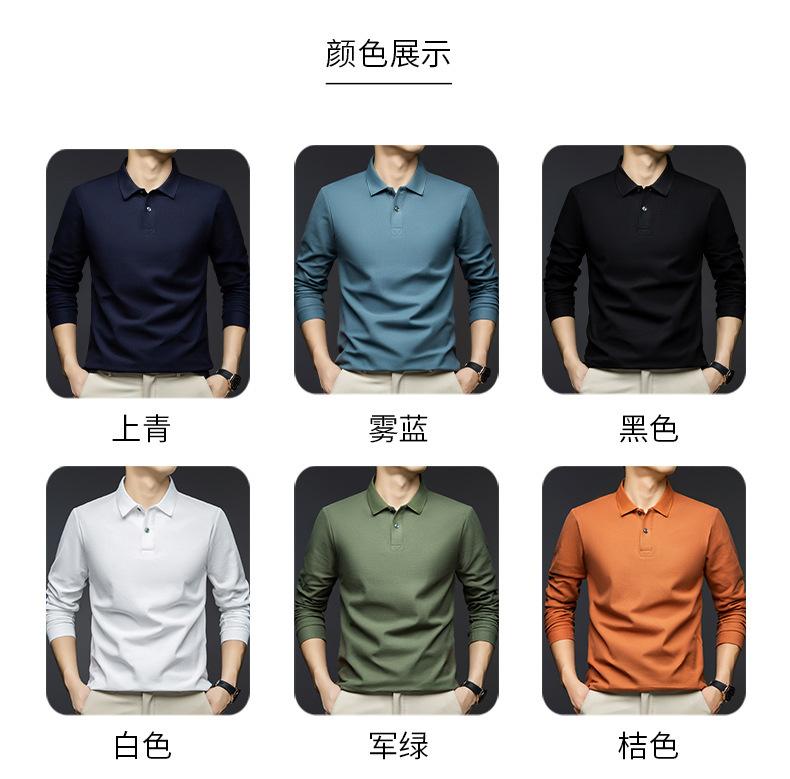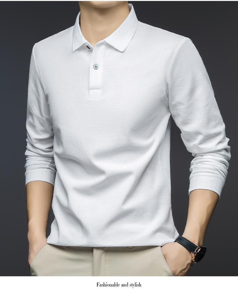 Camiseta de manga larga de algodón puro para hombre, nueva camisa polo informal de negocios de mediana edad con solapa de color sólido para primavera y otoño.