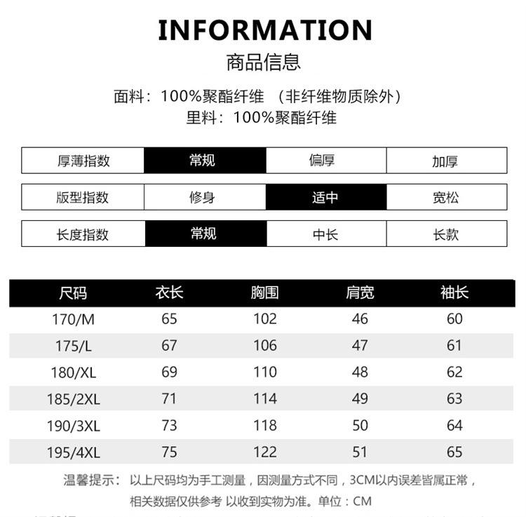 170/M, 175/L, 180/XL, 185/2XL, 190/3XL, 195/4XL