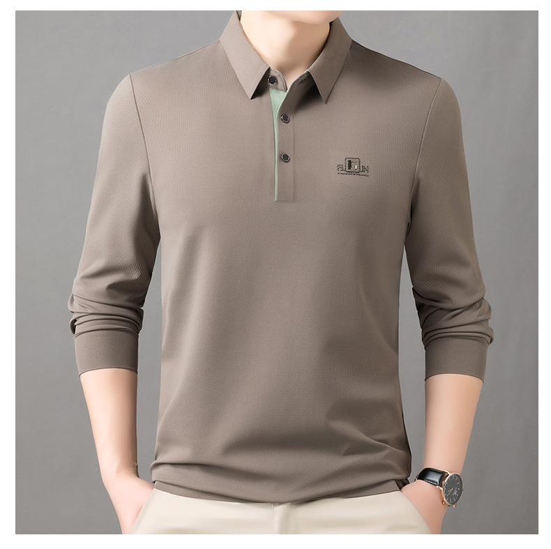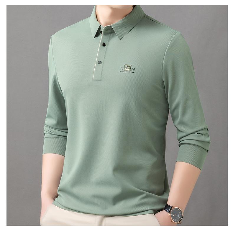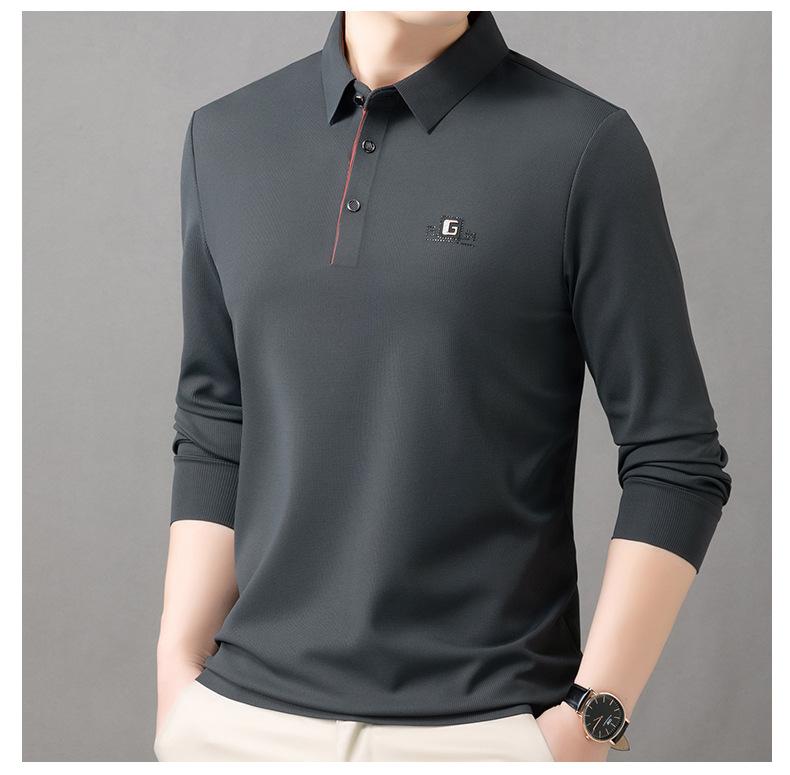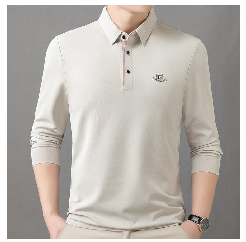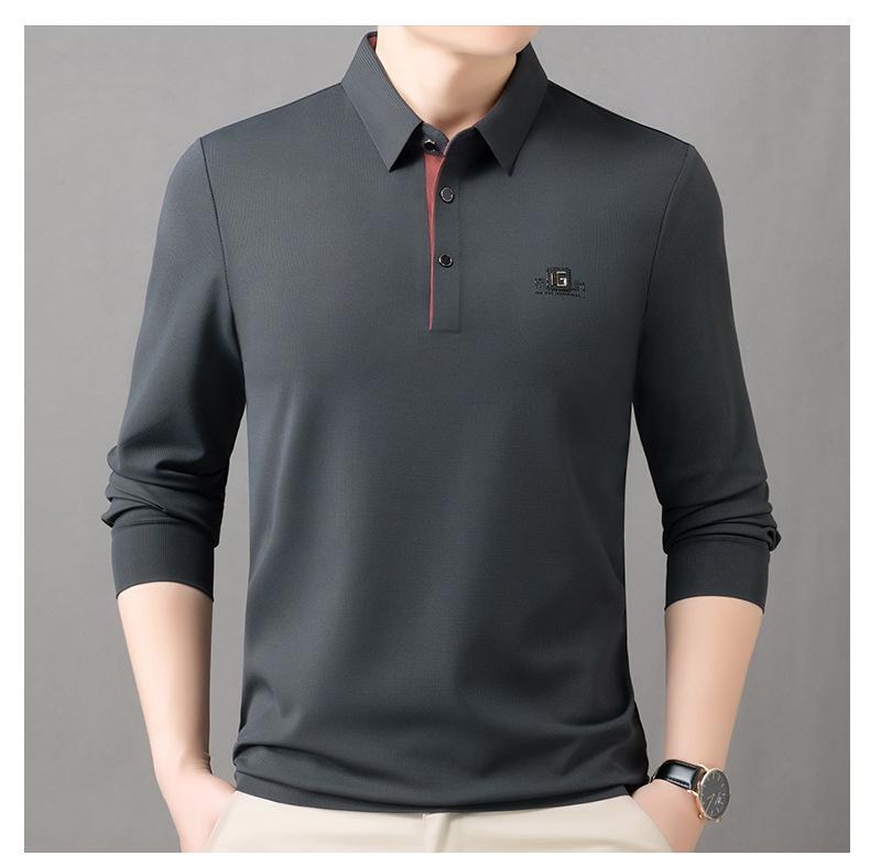 Camiseta de Manga Larga de Seda de Hielo para Hombre para Primavera, Moderna, Casual, Delgada, Holgada, Camiseta Básica para Hombre, para Papá
