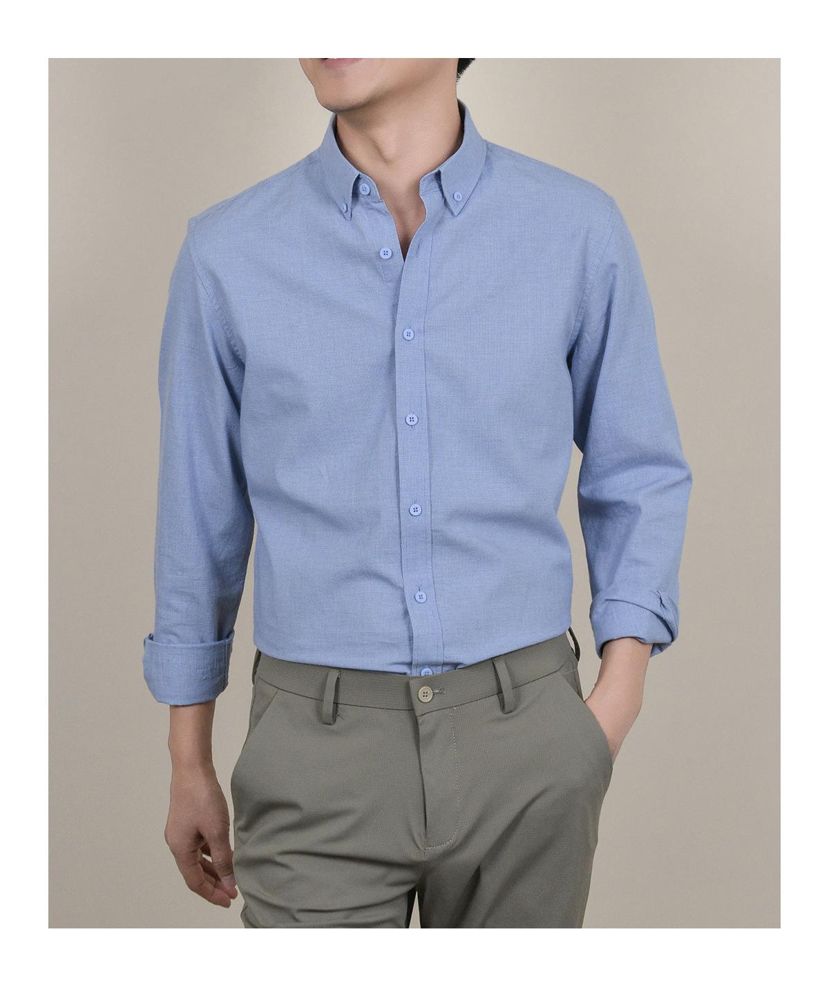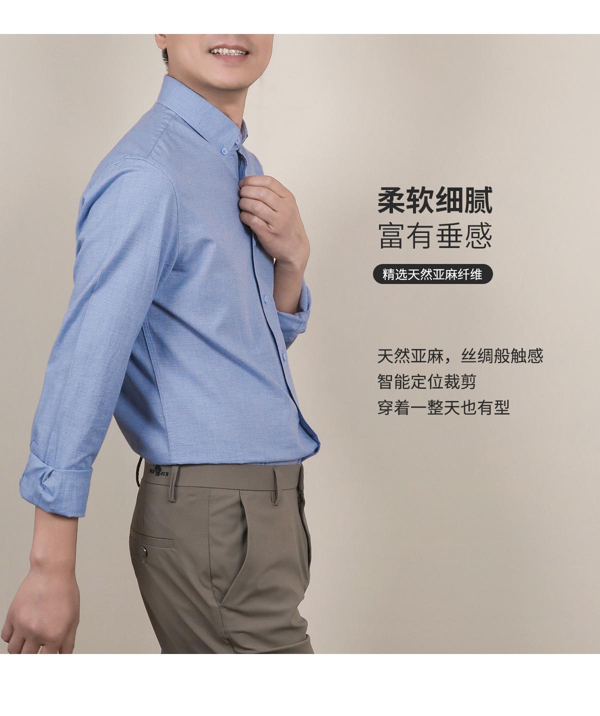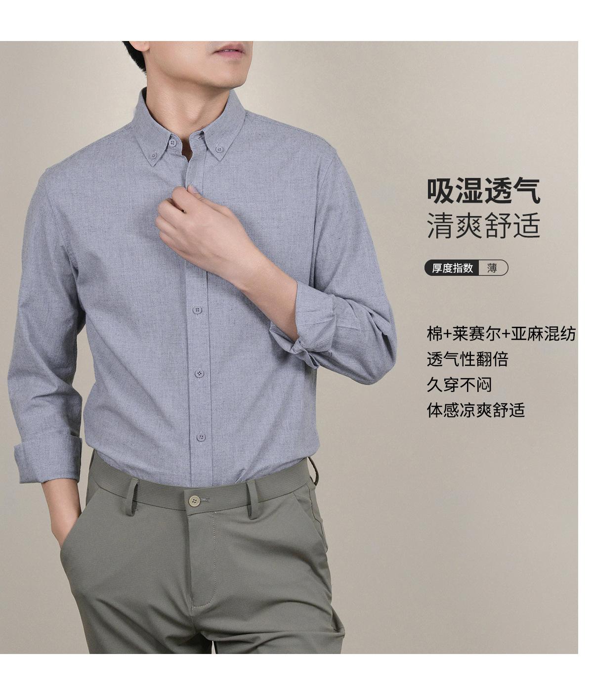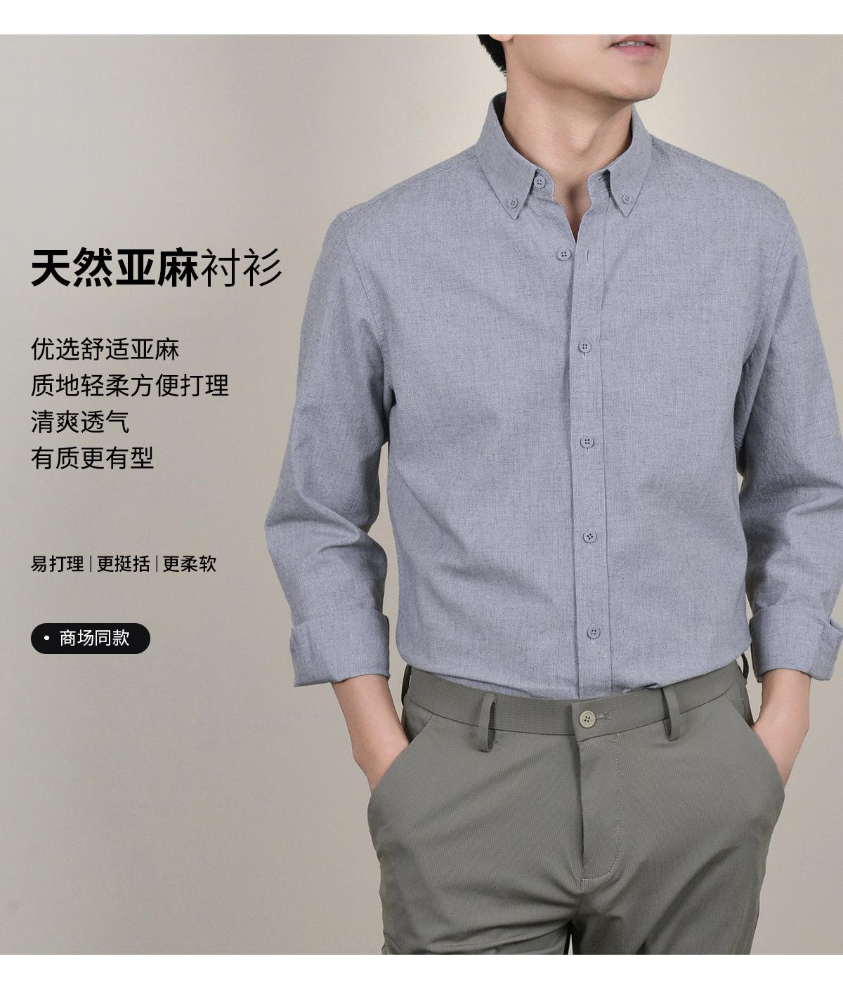 Camisa de hombre de manga larga, informal, de negocios, para jóvenes de mediana edad, de lino, color liso, primavera 2025, nueva camisa para hombre