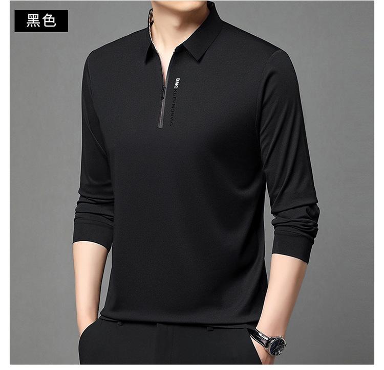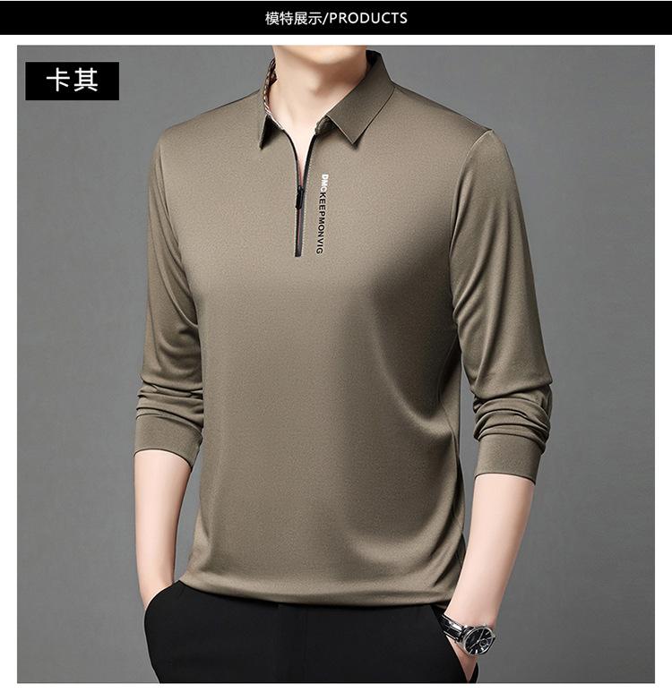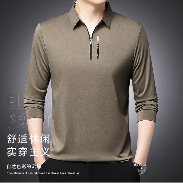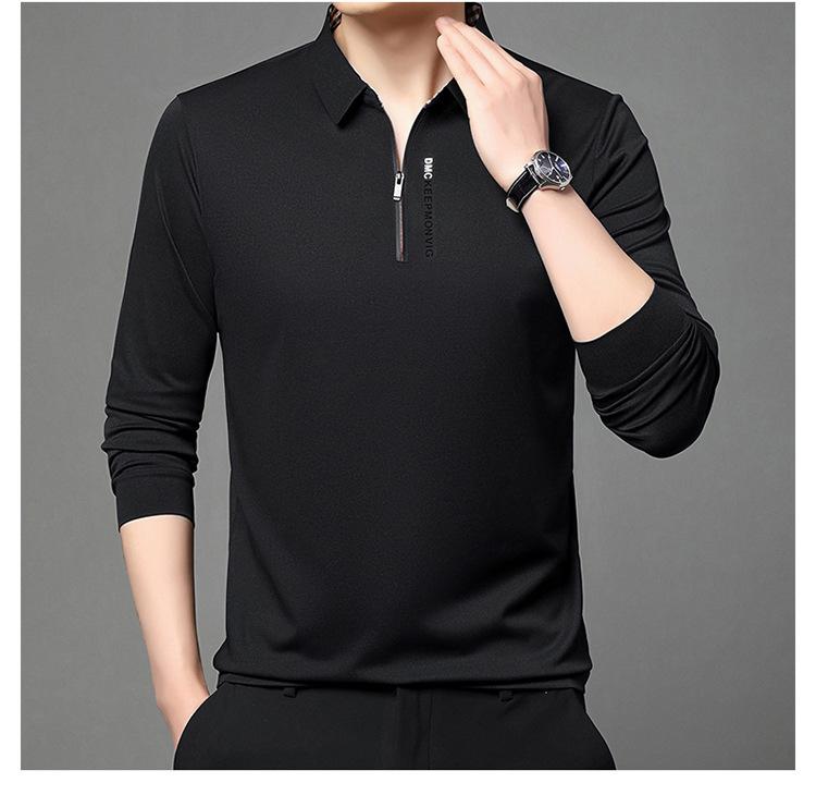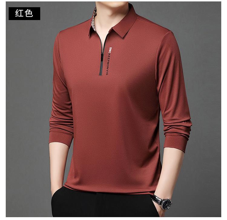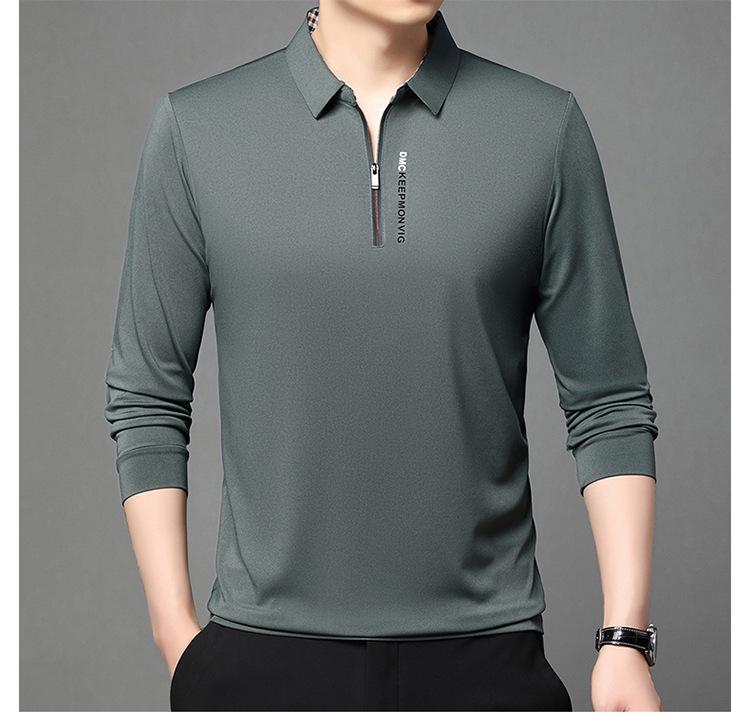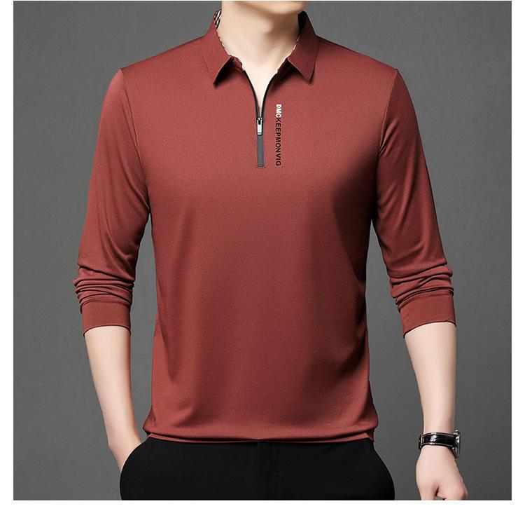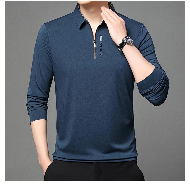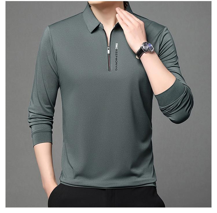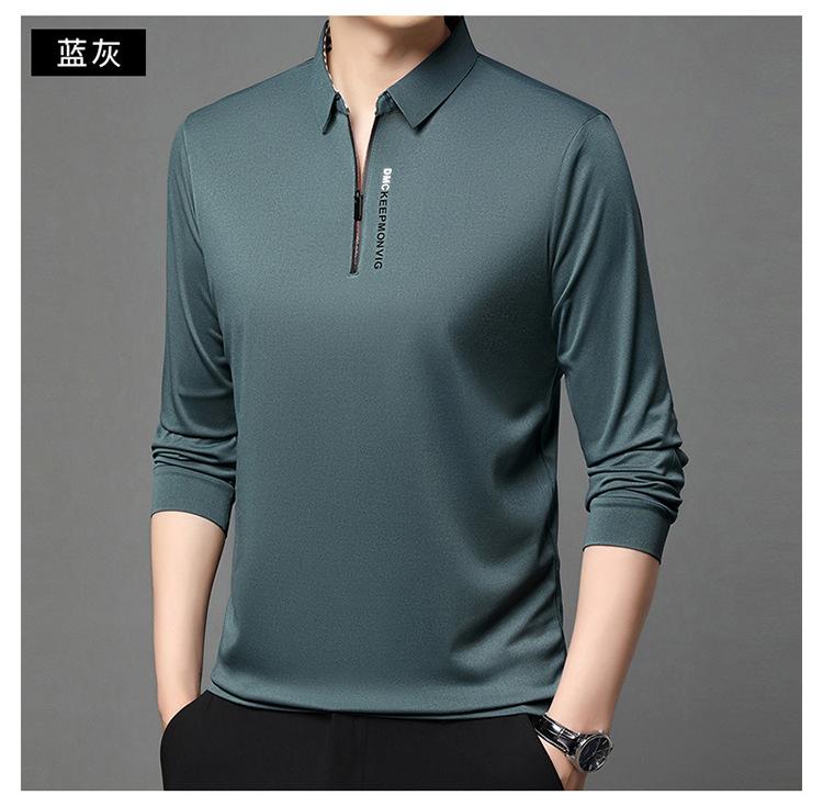 Camiseta transpirable de otoño para hombre, nueva llegada, polo de manga larga con solapa, sin costuras, de color sólido, informal, a la moda, combina con todo.