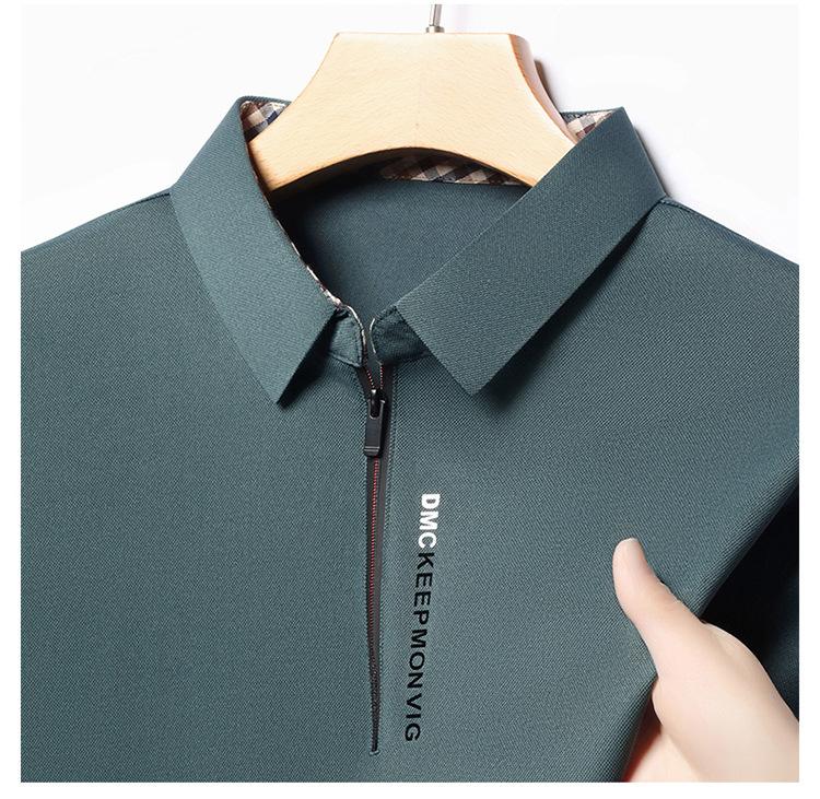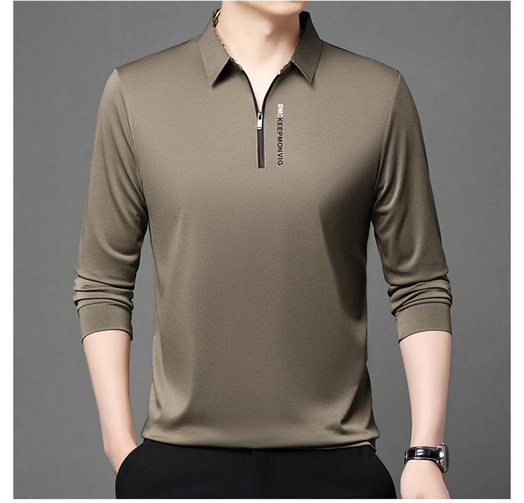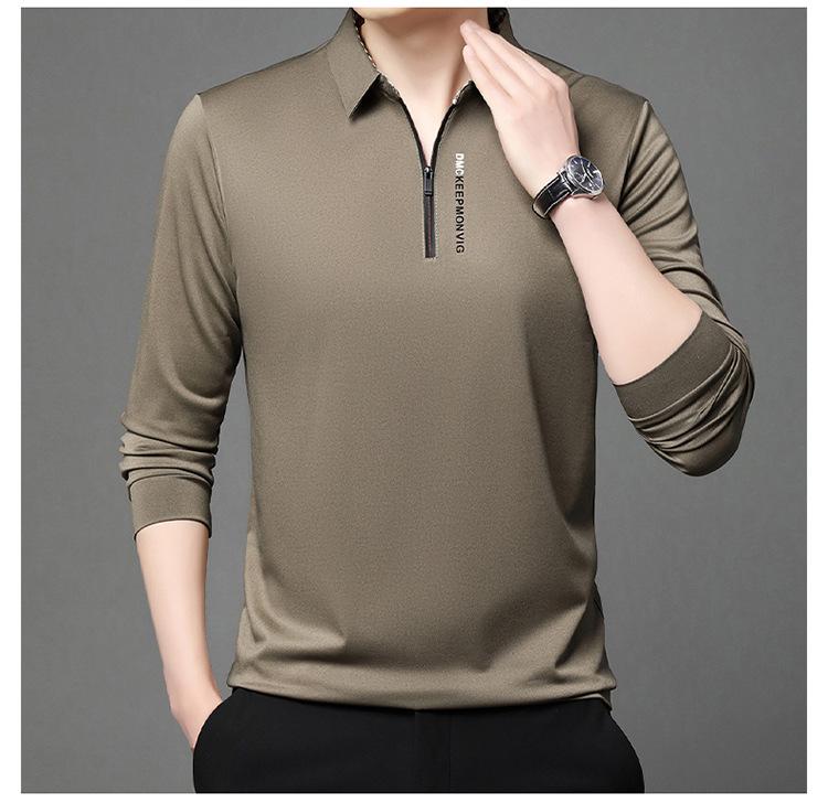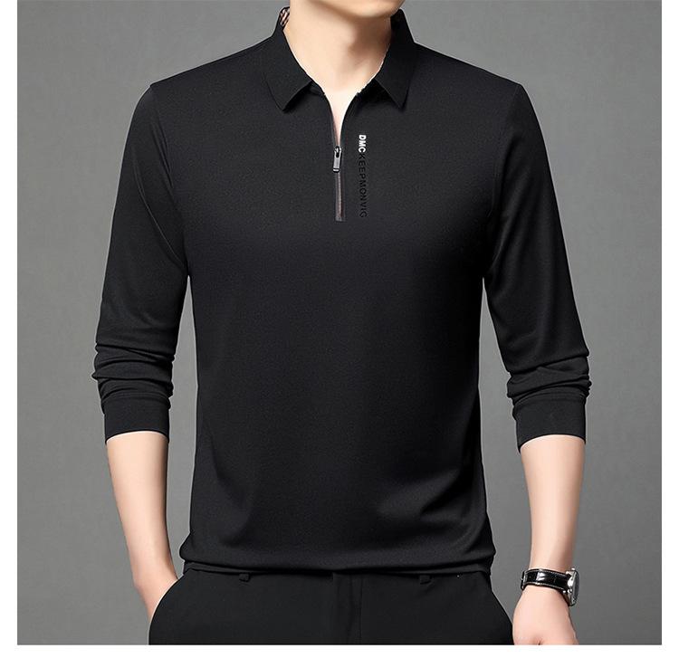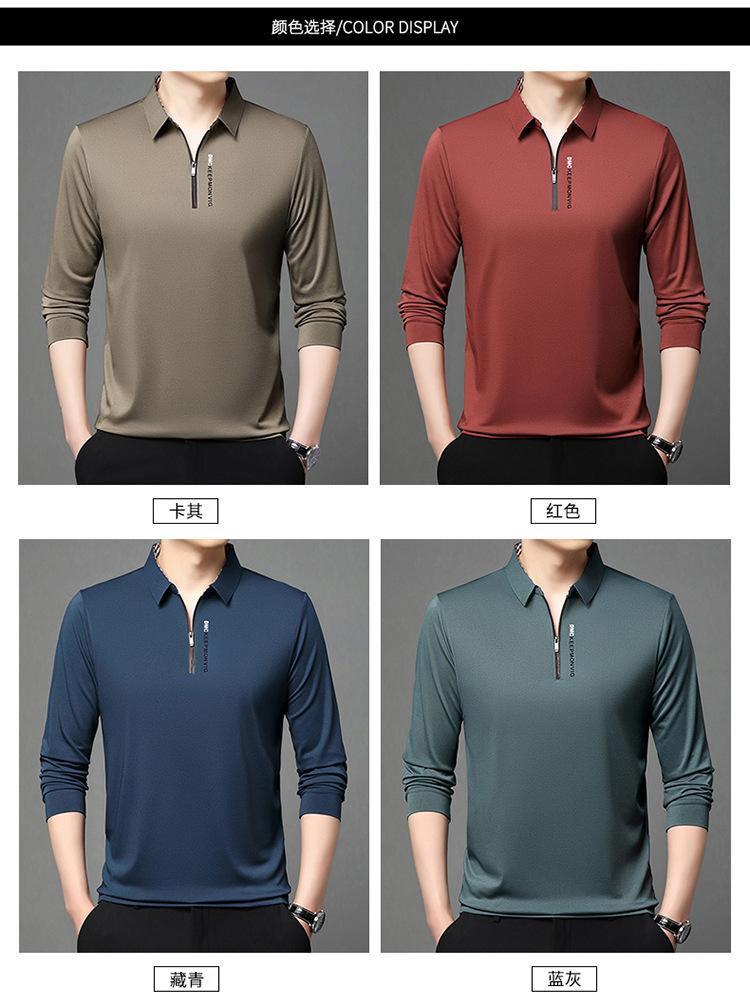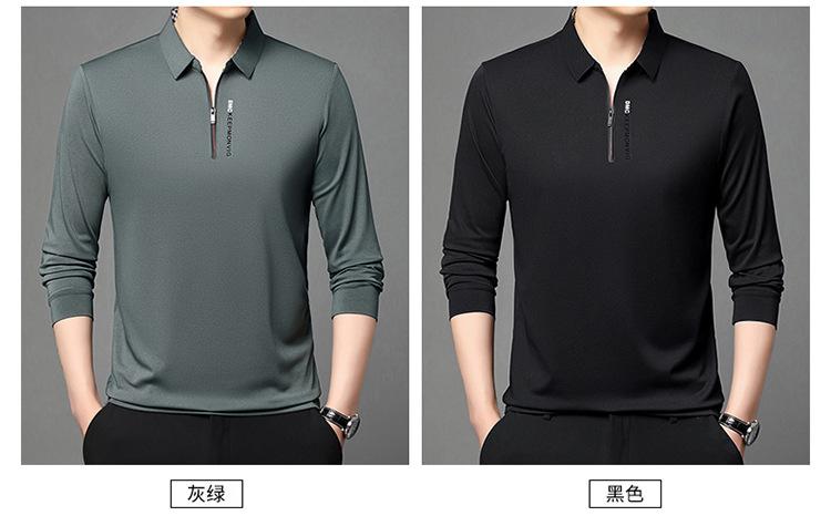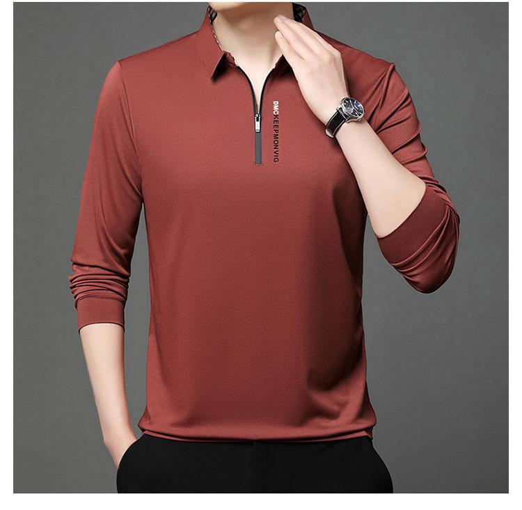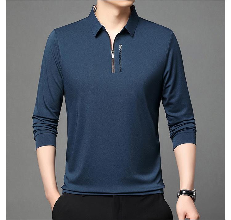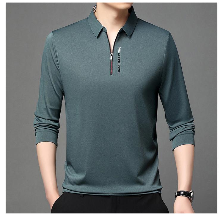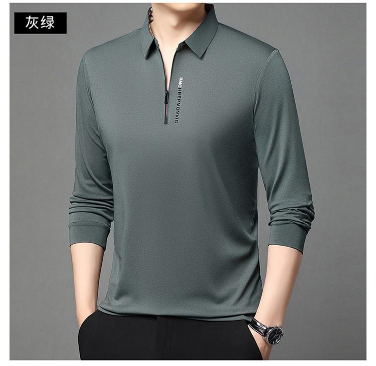 Camiseta transpirable de otoño para hombre, nueva llegada, polo de manga larga con solapa, sin costuras, de color sólido, informal, a la moda, combina con todo.