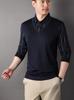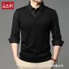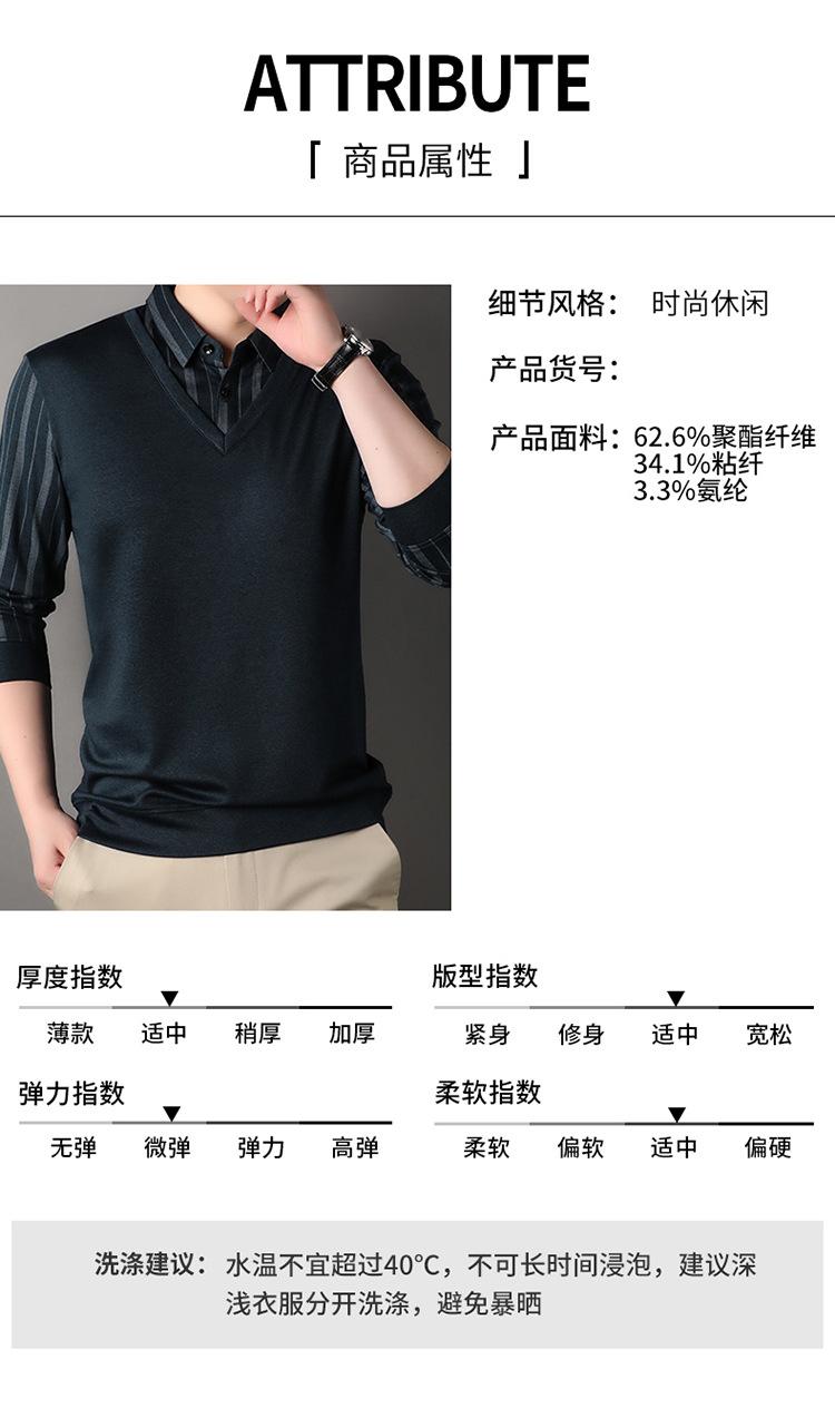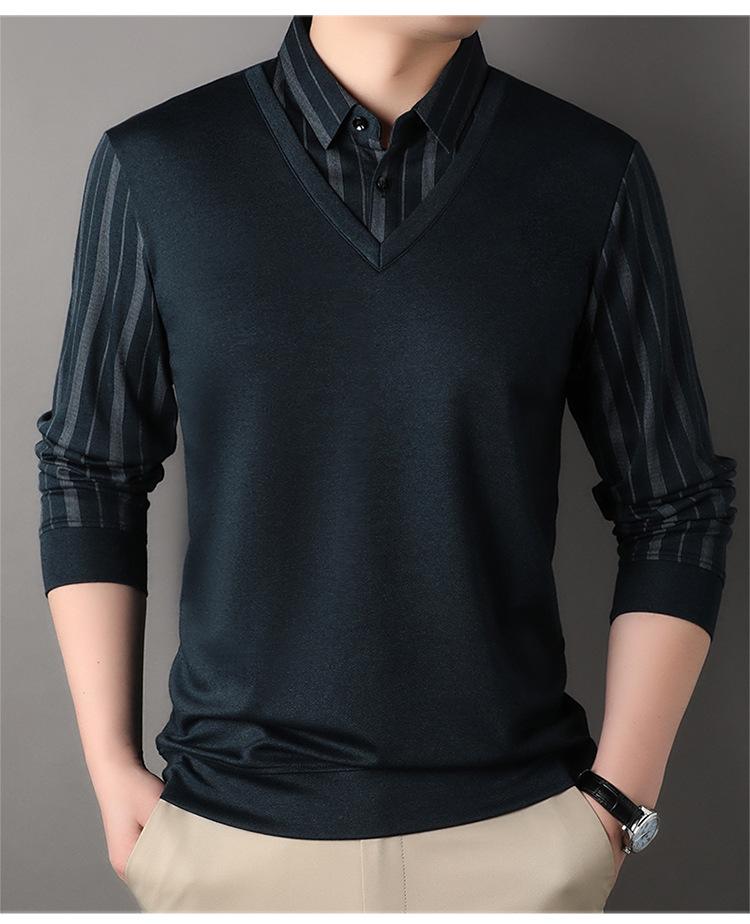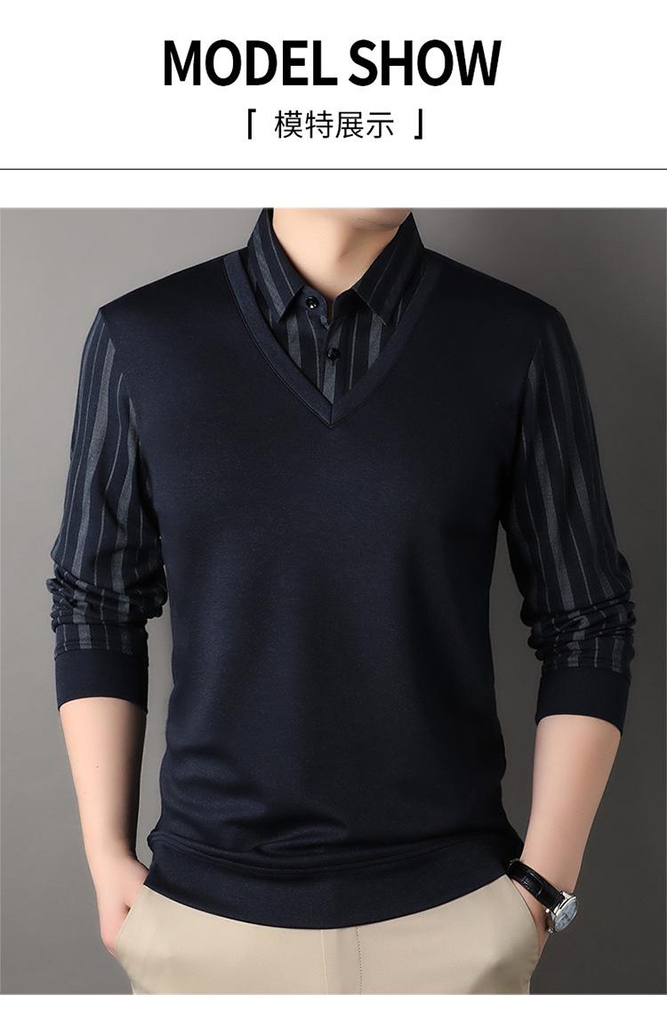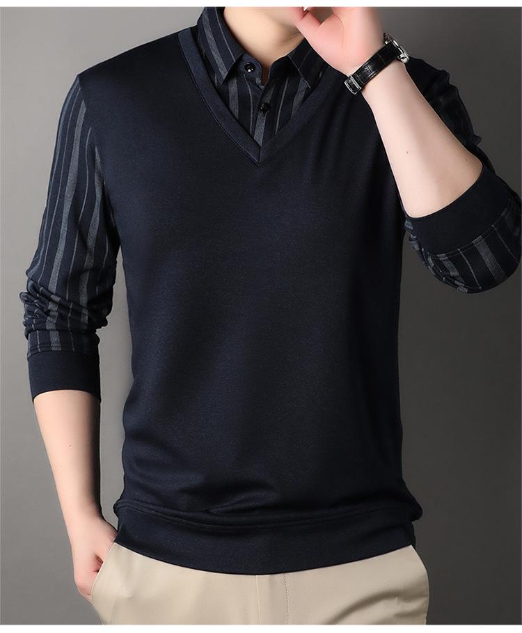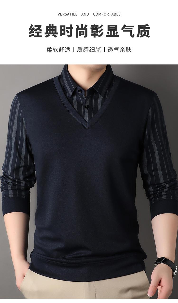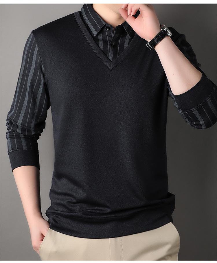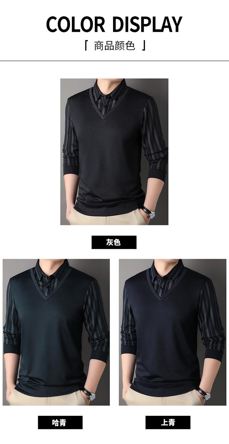 Ropa de papá de mediana edad, camiseta de manga larga para hombre, cuello de camisa, polo, ropa de otoño, primavera y otoño, rayas falsas de dos piezas