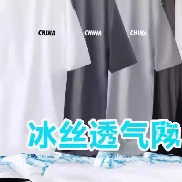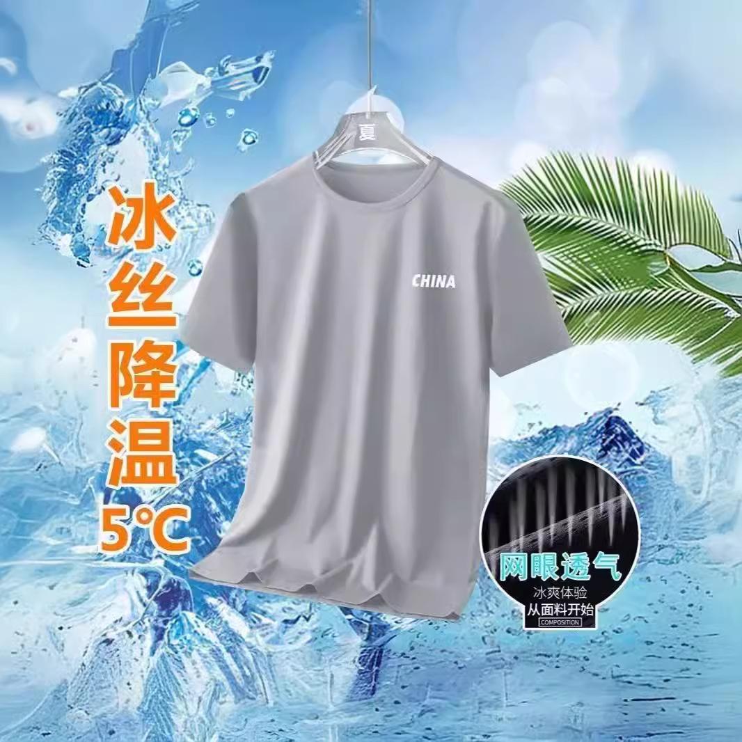 Camiseta de Manga Corta de Seda de Hielo Transfronteriza para Hombre Verano Delgada Transpirable de Secado Rápido Camiseta Deportiva Holgada Talla Grande Top Casual