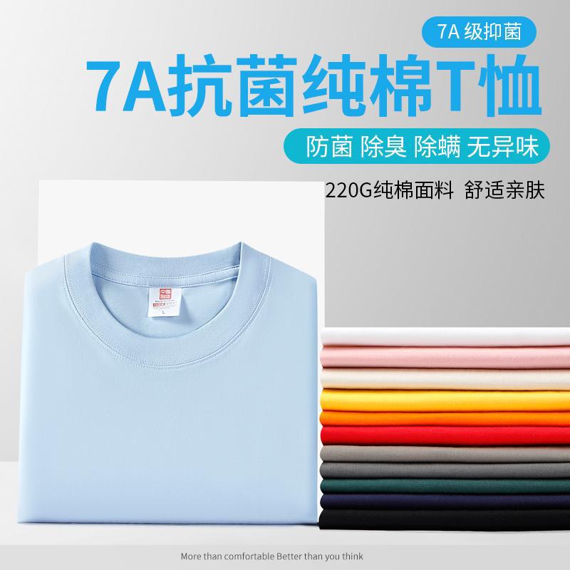 Camiseta de manga corta de algodón de 220 g con cuello redondo y logotipo, camisa publicitaria cultural, ropa de trabajo para grupos empresariales, logotipo al por mayor