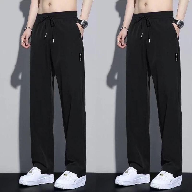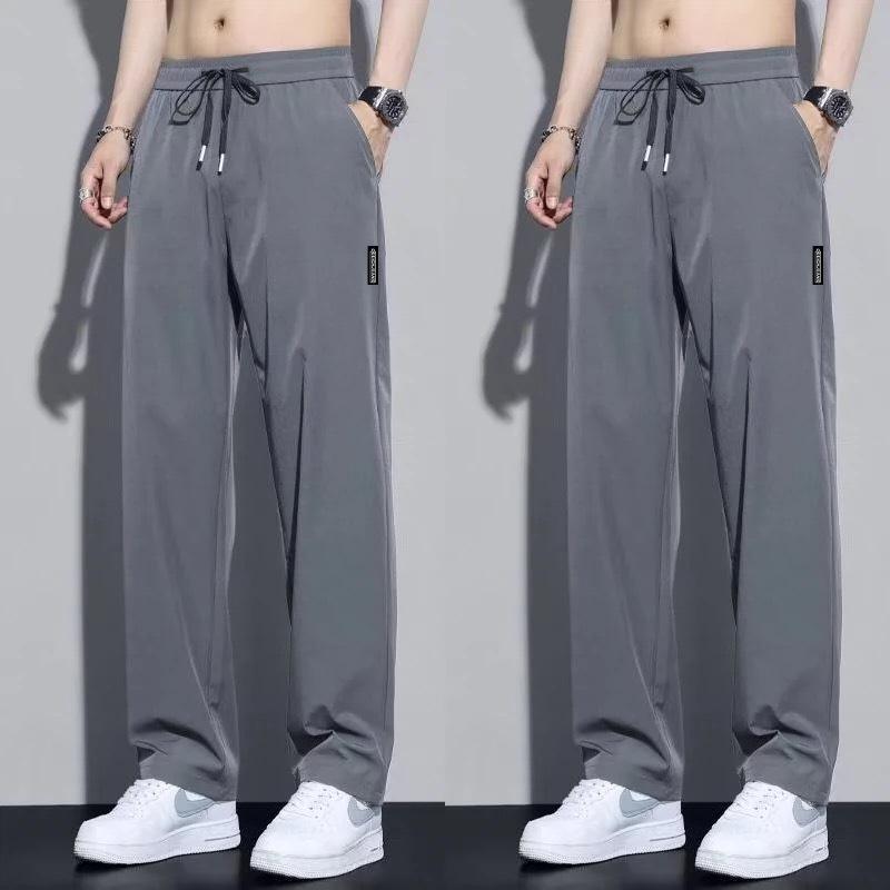 Pantalones de hombre de seda fina de hielo, de verano, talla grande, elásticos, de secado rápido, informales, holgados, deportivos, transpirables, rectos.