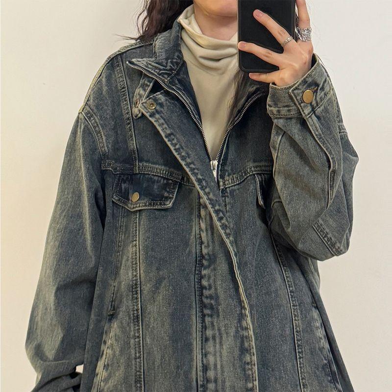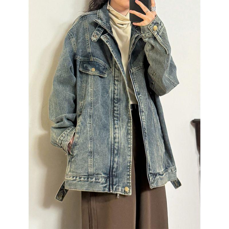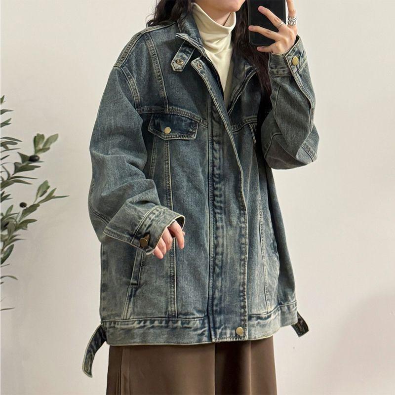 Compra Chaqueta de mezclilla casual de otoño estilo americano retro lavado viejo combinable talla grande chaqueta de pareja para hombres y mujeres al por mayor en Joom.pro