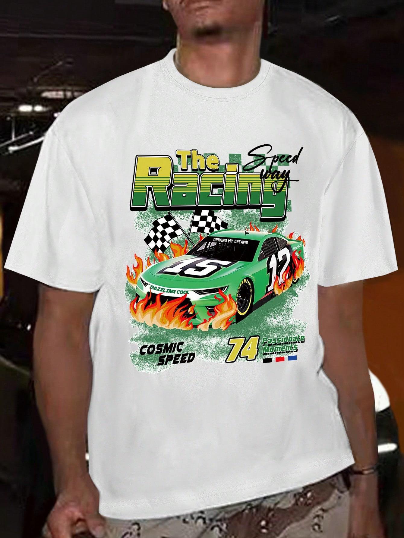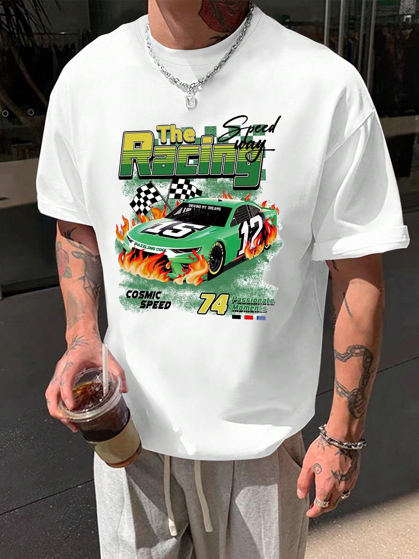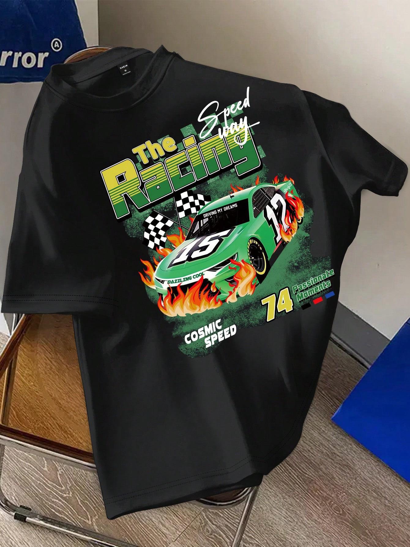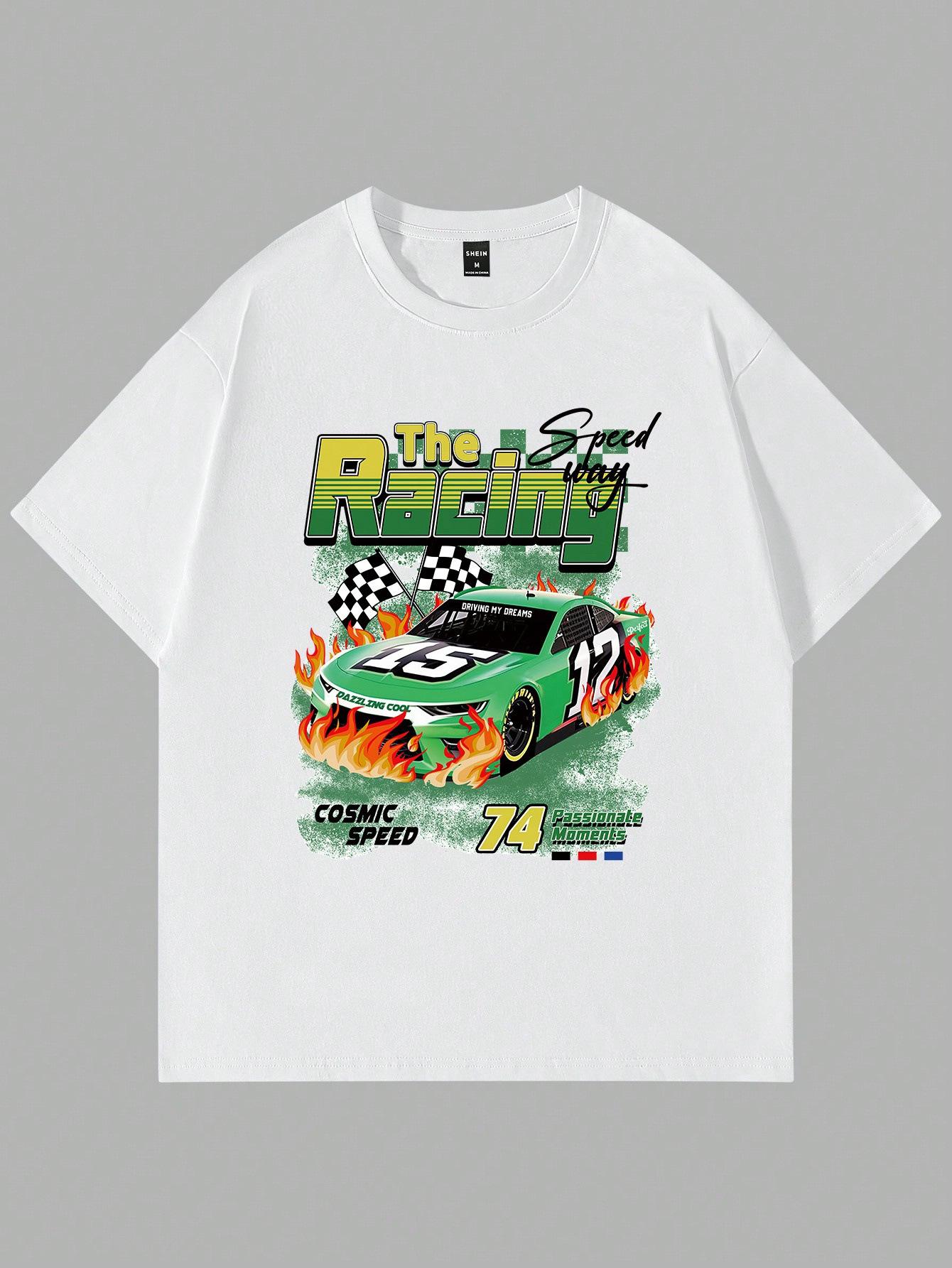 Camiseta de Moda Urbana Cool de Manga Corta para Pareja con Slogan de Carreras Retro Transfronterizo para Hombre Verano Ropa Urbana