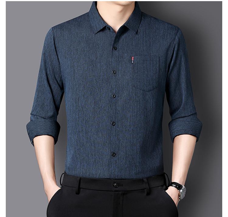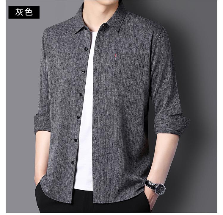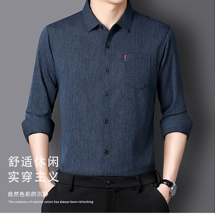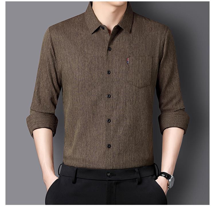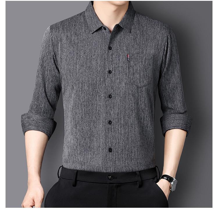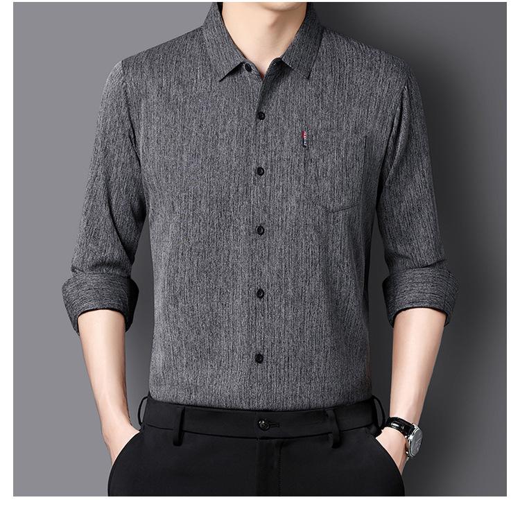 Camisa de manga larga para hombre, primavera y otoño, nueva, informal, de negocios, de mediana edad, holgada, tipo cárdigan, sin planchado, para papá, a la moda.