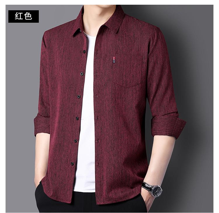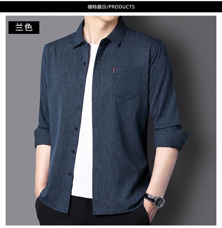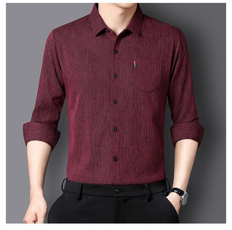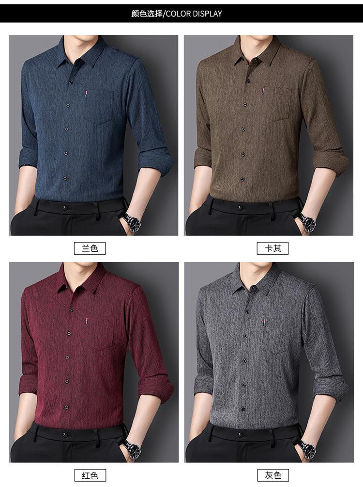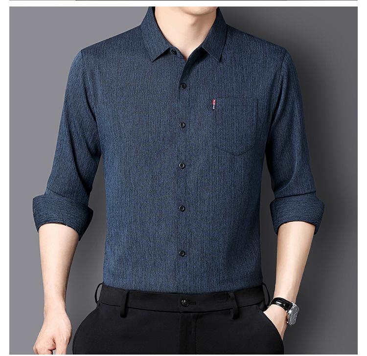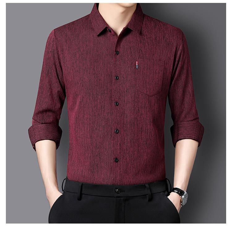 Camisa de manga larga para hombre, primavera y otoño, nueva, informal, de negocios, de mediana edad, holgada, tipo cárdigan, sin planchado, para papá, a la moda.