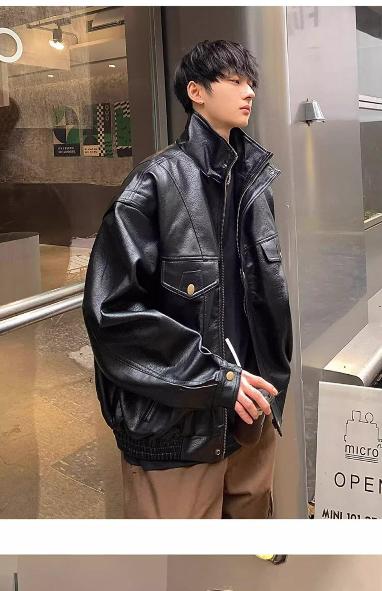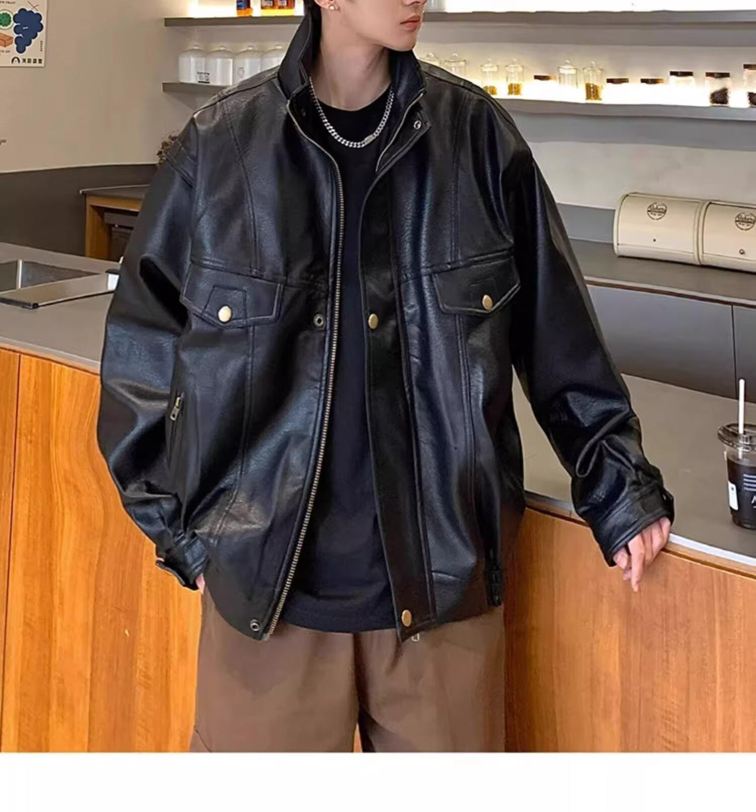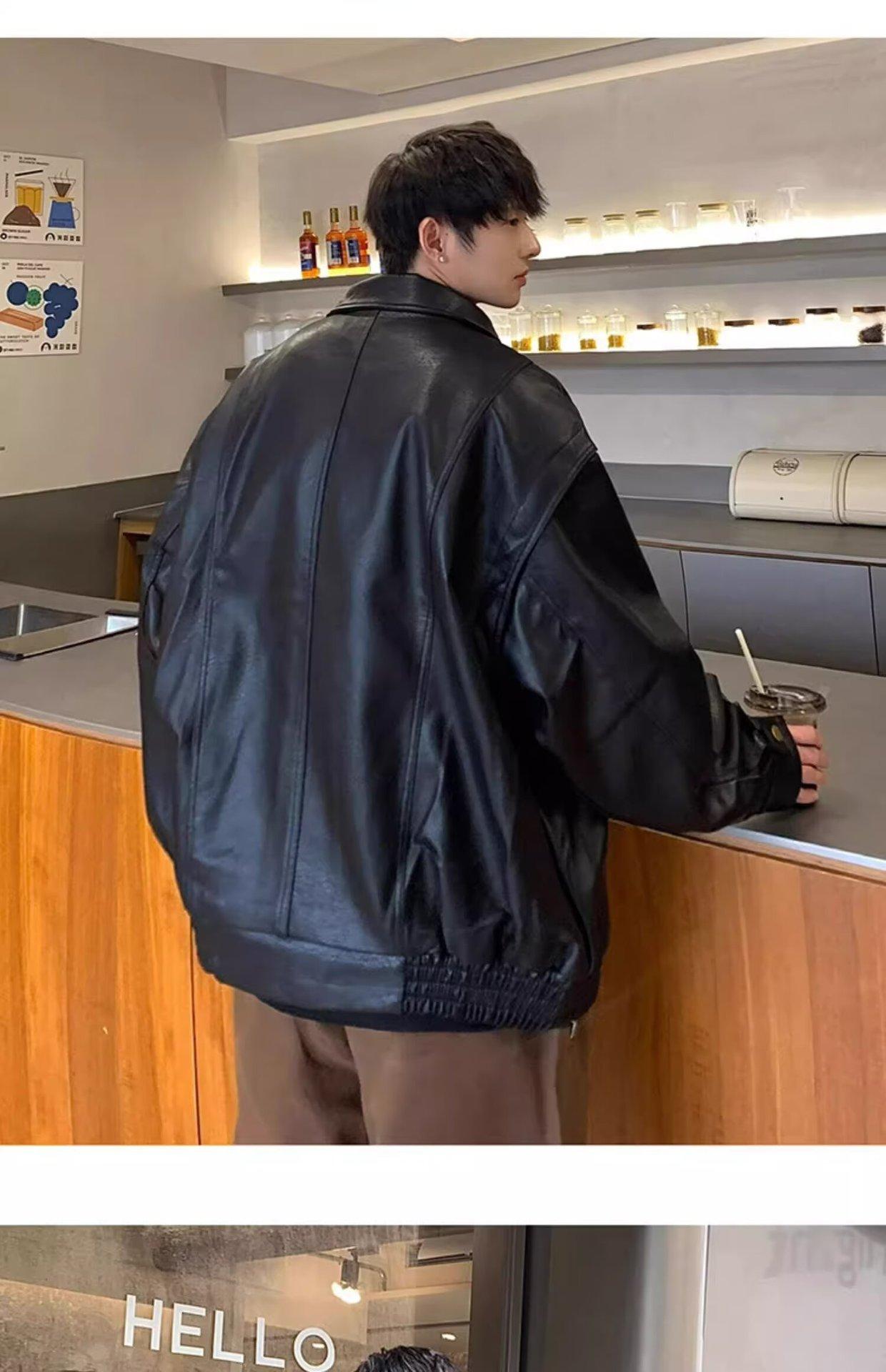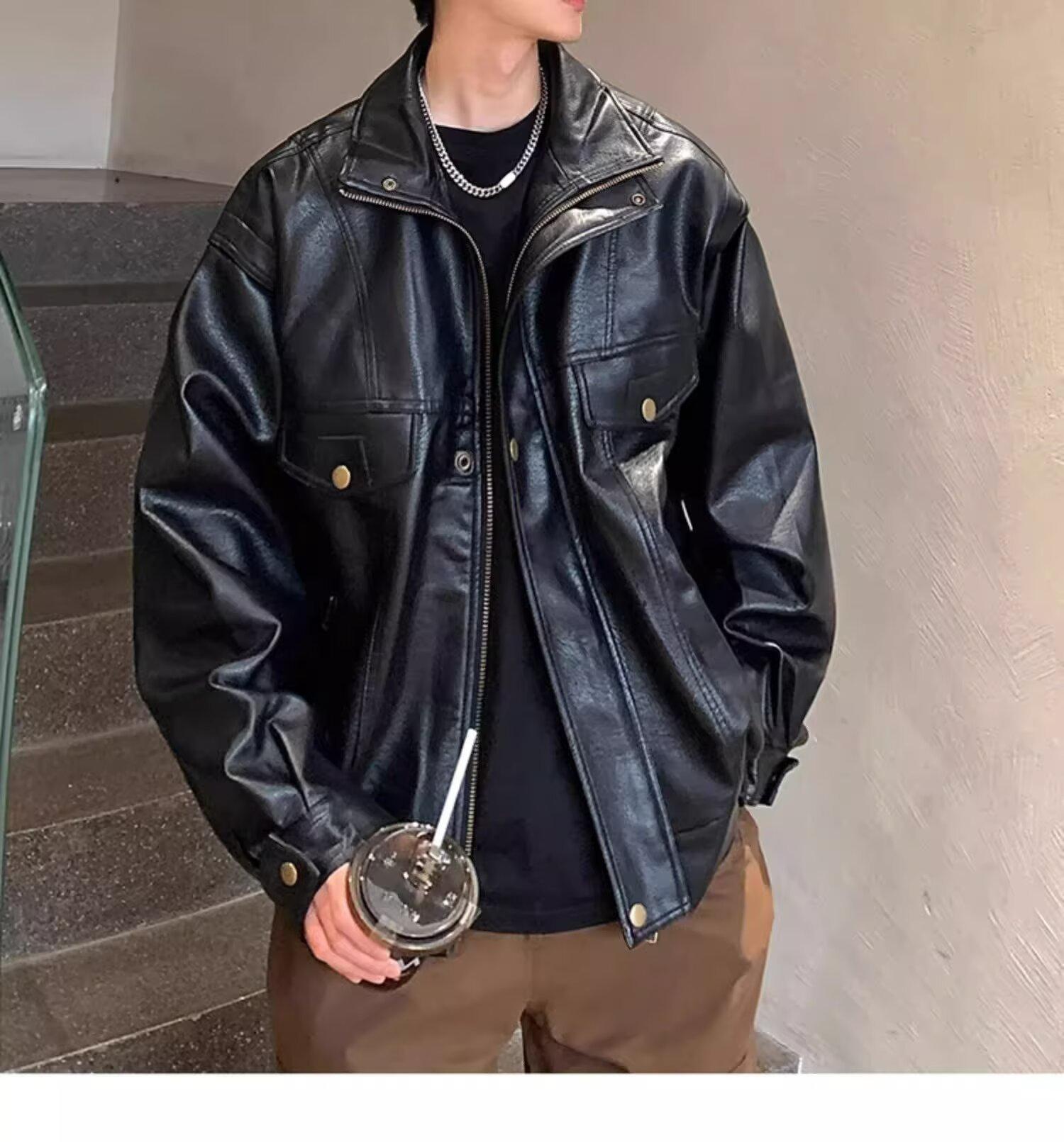 Ropa Biker Vintage Chaqueta de Cuero para Hombre Casual Corta Primavera y Otoño de Alta Gama Aviador Solapa Chaqueta de Cuero a la Moda