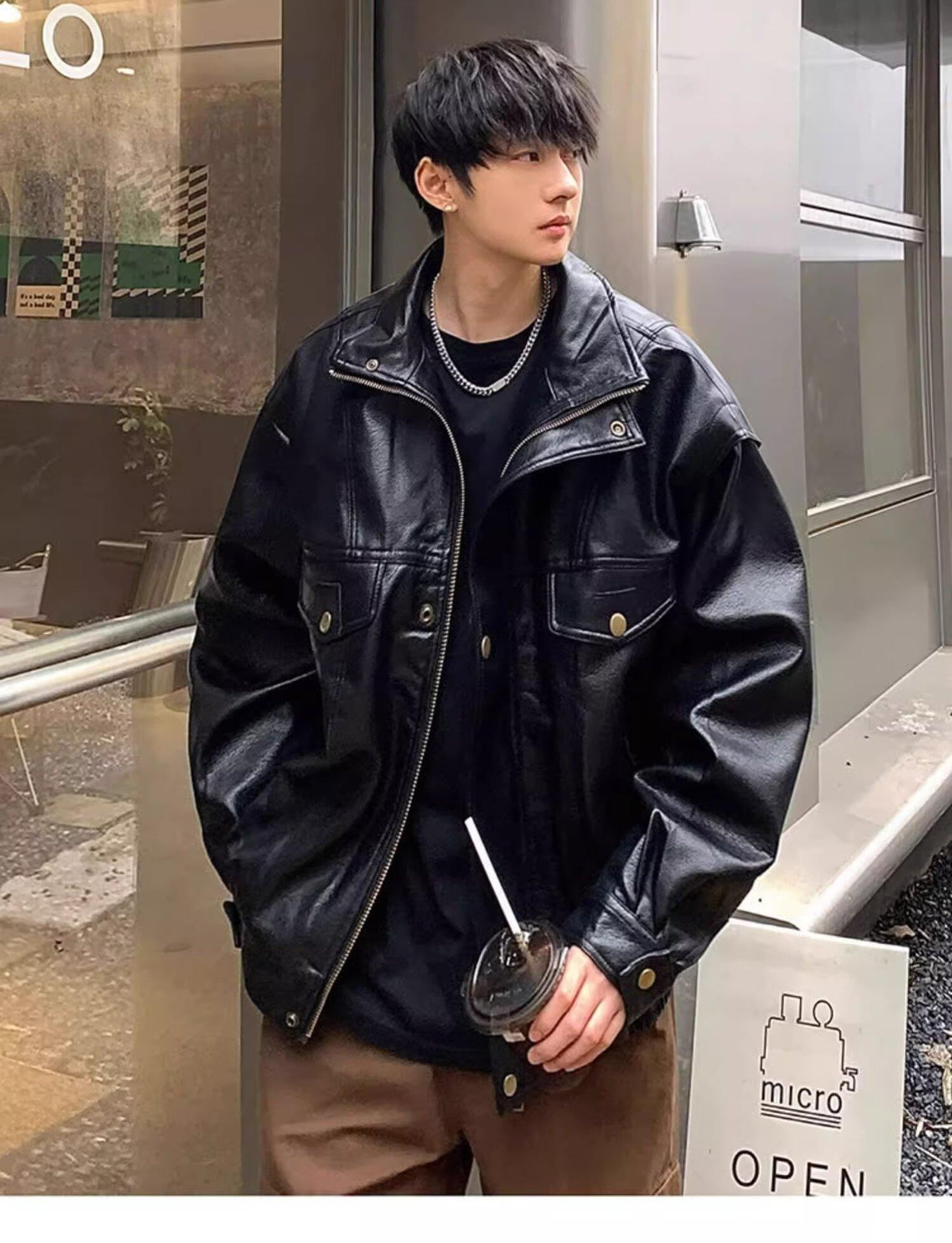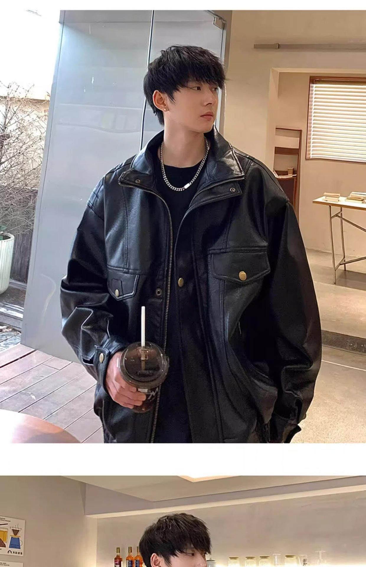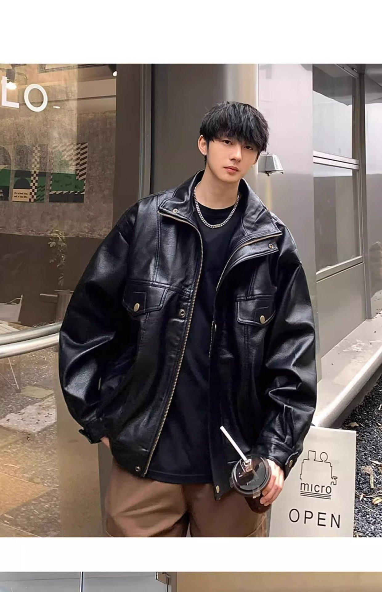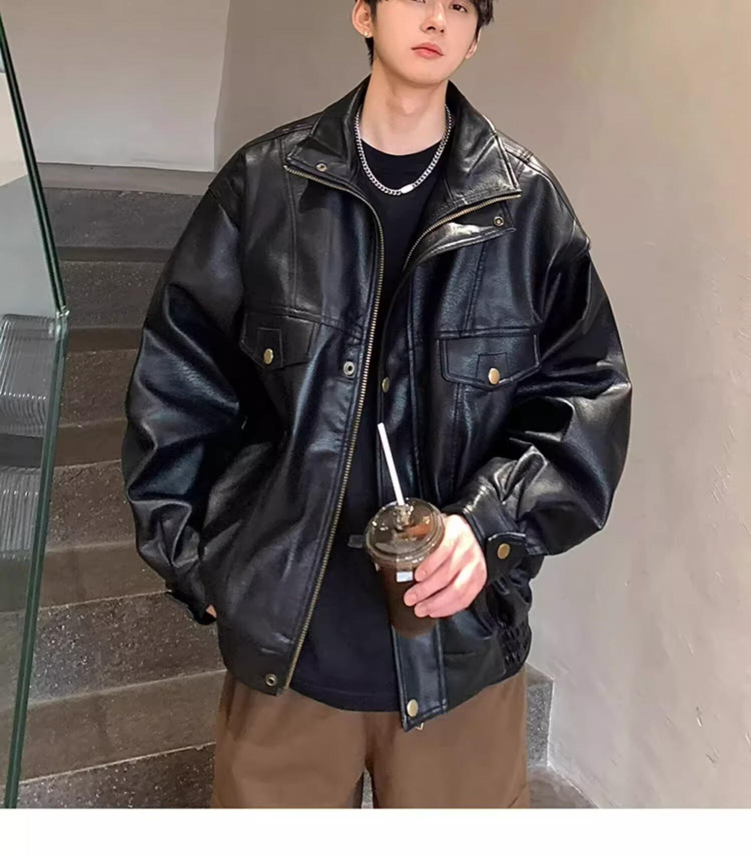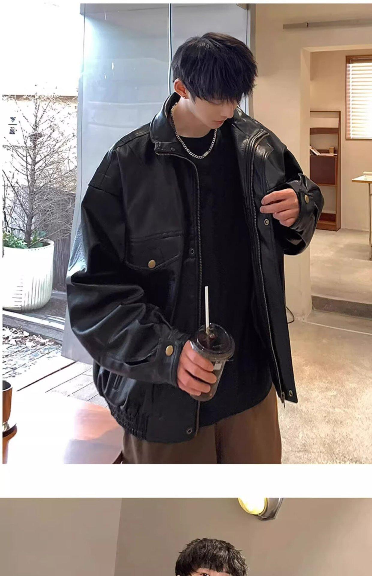 Ropa Biker Vintage Chaqueta de Cuero para Hombre Casual Corta Primavera y Otoño de Alta Gama Aviador Solapa Chaqueta de Cuero a la Moda