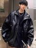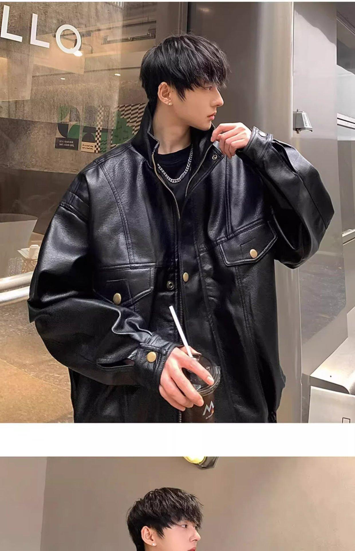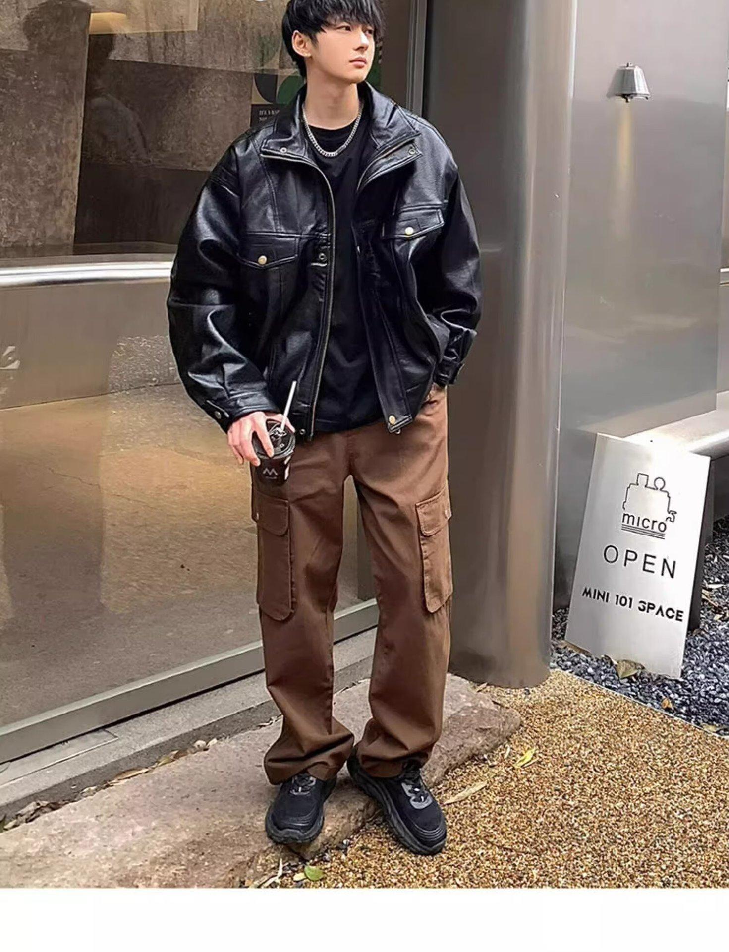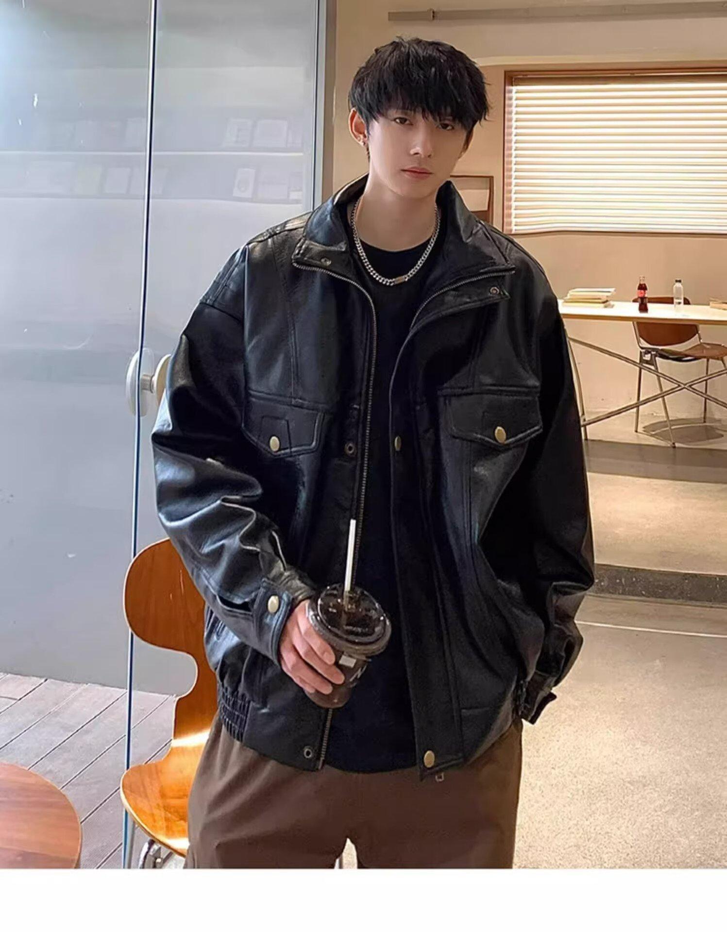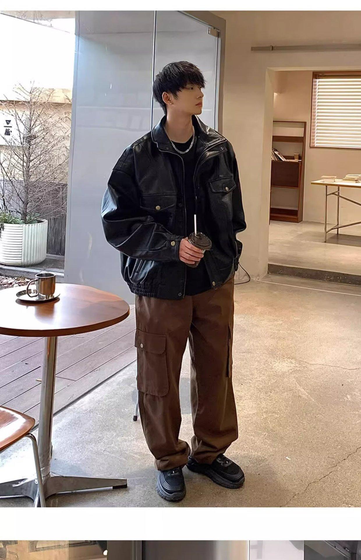 Ropa Biker Vintage Chaqueta de Cuero para Hombre Casual Corta Primavera y Otoño de Alta Gama Aviador Solapa Chaqueta de Cuero a la Moda