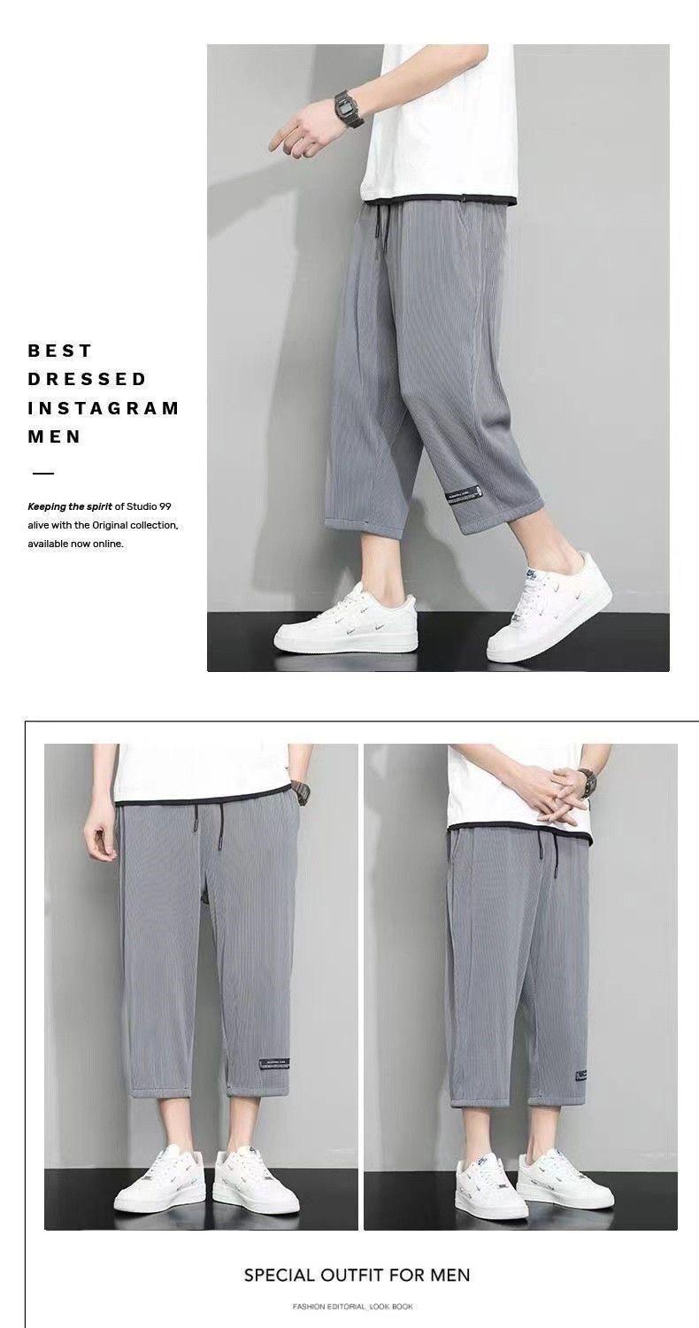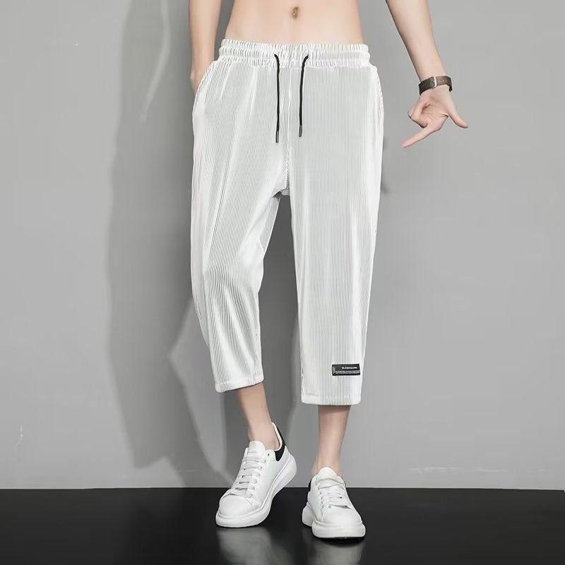 Pantalones de seda de hielo, pantalones cortos para hombre, ligeros, de verano, finos, elásticos, de secado rápido, deportivos, casuales, sueltos, combinables, para jóvenes, a la moda