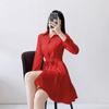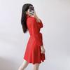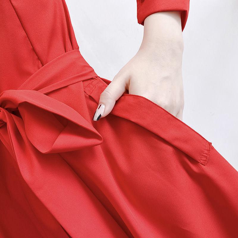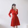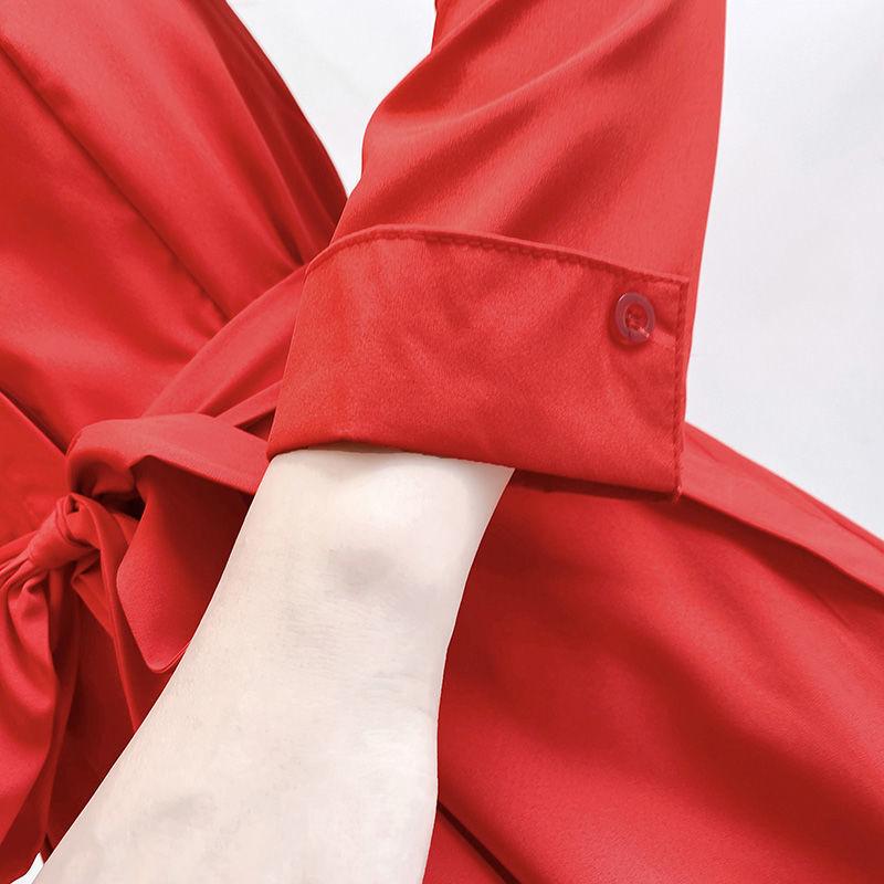 Vestido de cuello en V estilo coreano para primavera y verano, nuevo estilo coreano, corte entallado, largo medio, moda, manga larga, elegante camisa roja, envío gratis