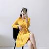Red [long sleeve dress] V-neck + belt, Yellow [long sleeve dress] V-neck + belt, Chic Blue [long sleeve dress] V-neck + belt