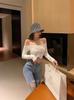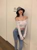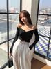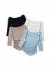 Camiseta de manga larga para mujer, estilo Spice Girl, sexy, plisada, elegante, con hombros descubiertos, ajustada y adelgazante.