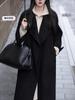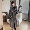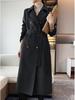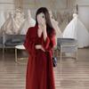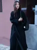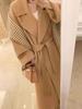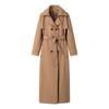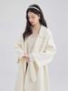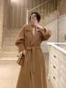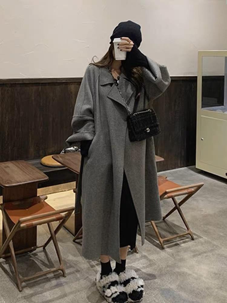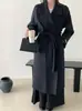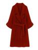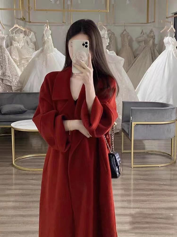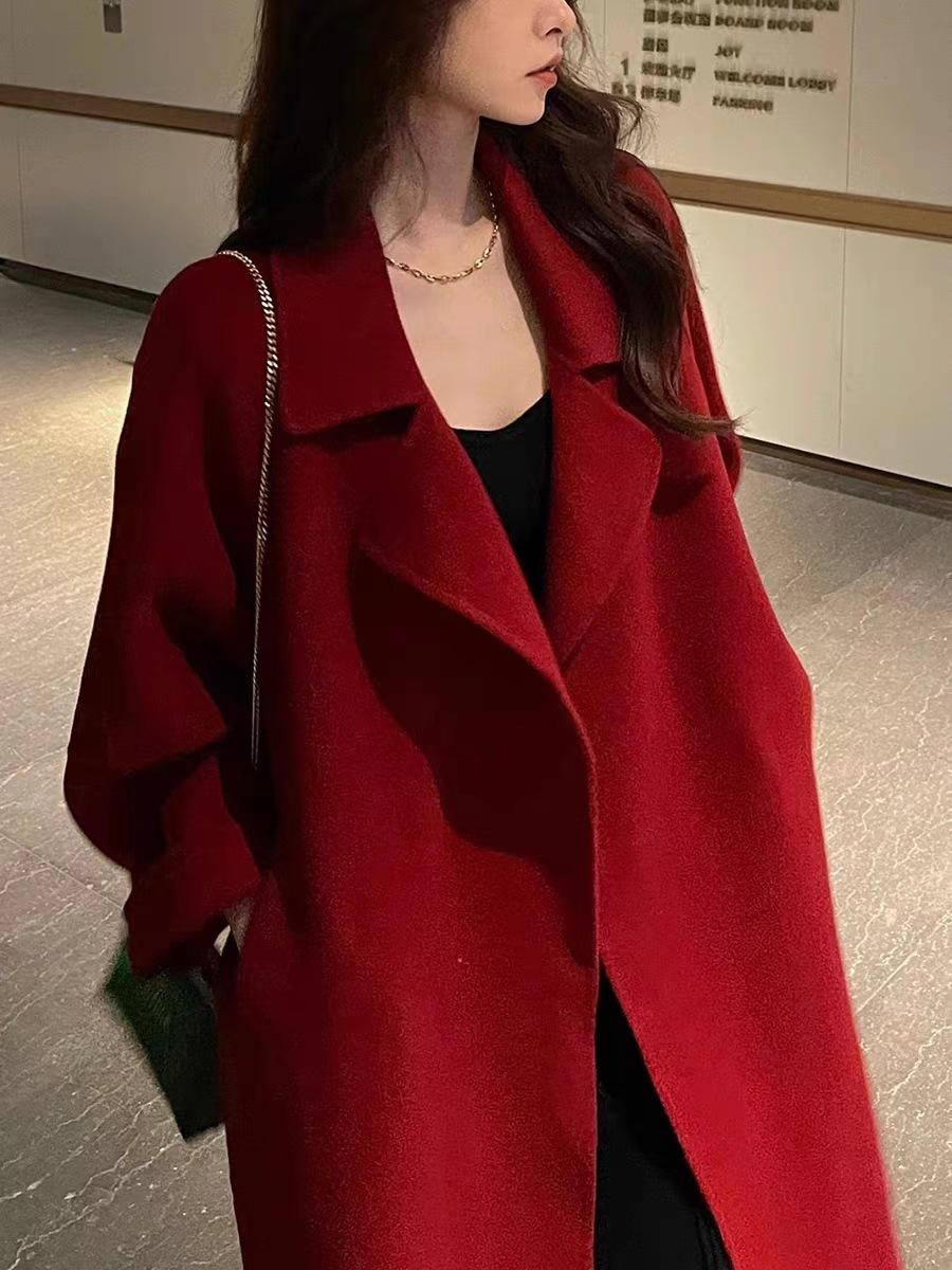 Abrigo de Lana Siciliano Doble Faz con Cinturón Rojo, Cuello Blazer, Abrigo Largo de Lana para Mujer, Estilo Relajado con Hombros Regulares