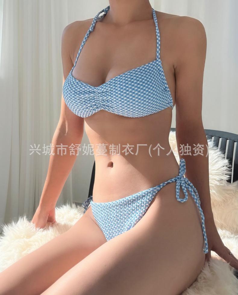 Traje de baño bikini de dos piezas dividido para mujer de comercio exterior transfronterizo, deseo puro, aguas termales, sexy, para senos pequeños, traje de baño para mujer