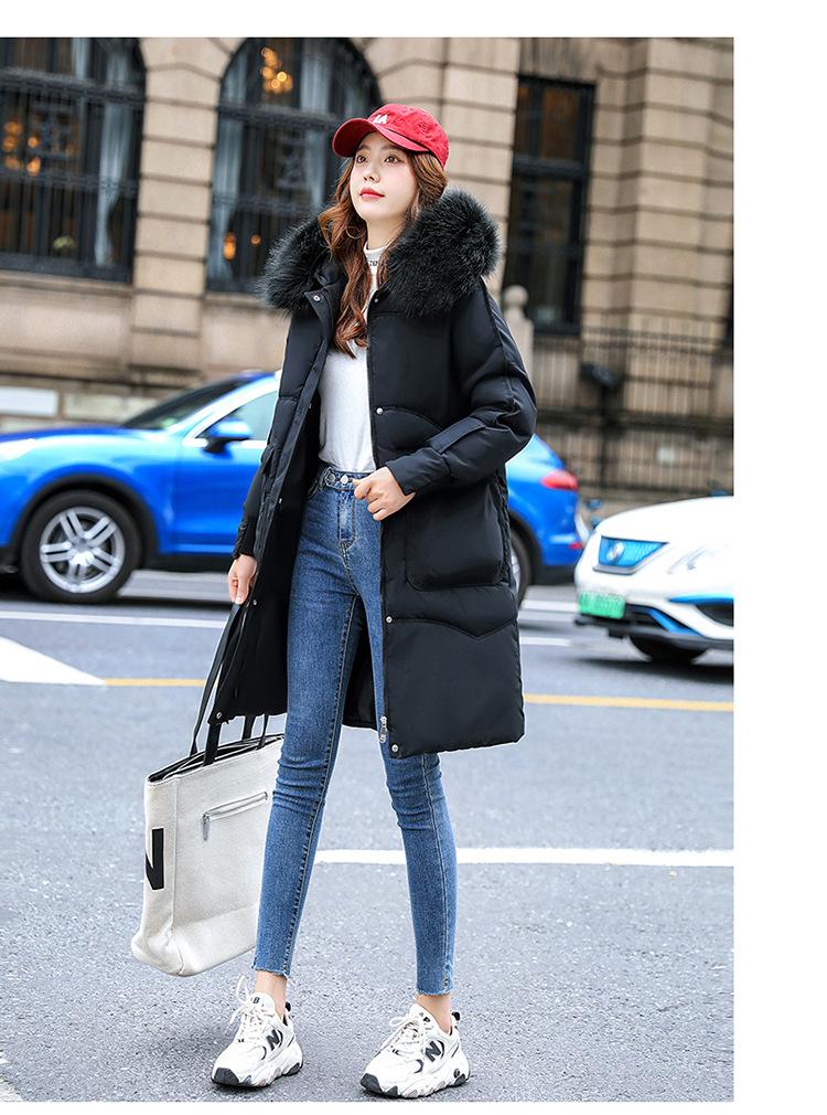 Abrigo de algodón con cuello de lana grande hasta la rodilla para mujer, ropa de invierno 2022, nueva y de moda, de plumón grueso.