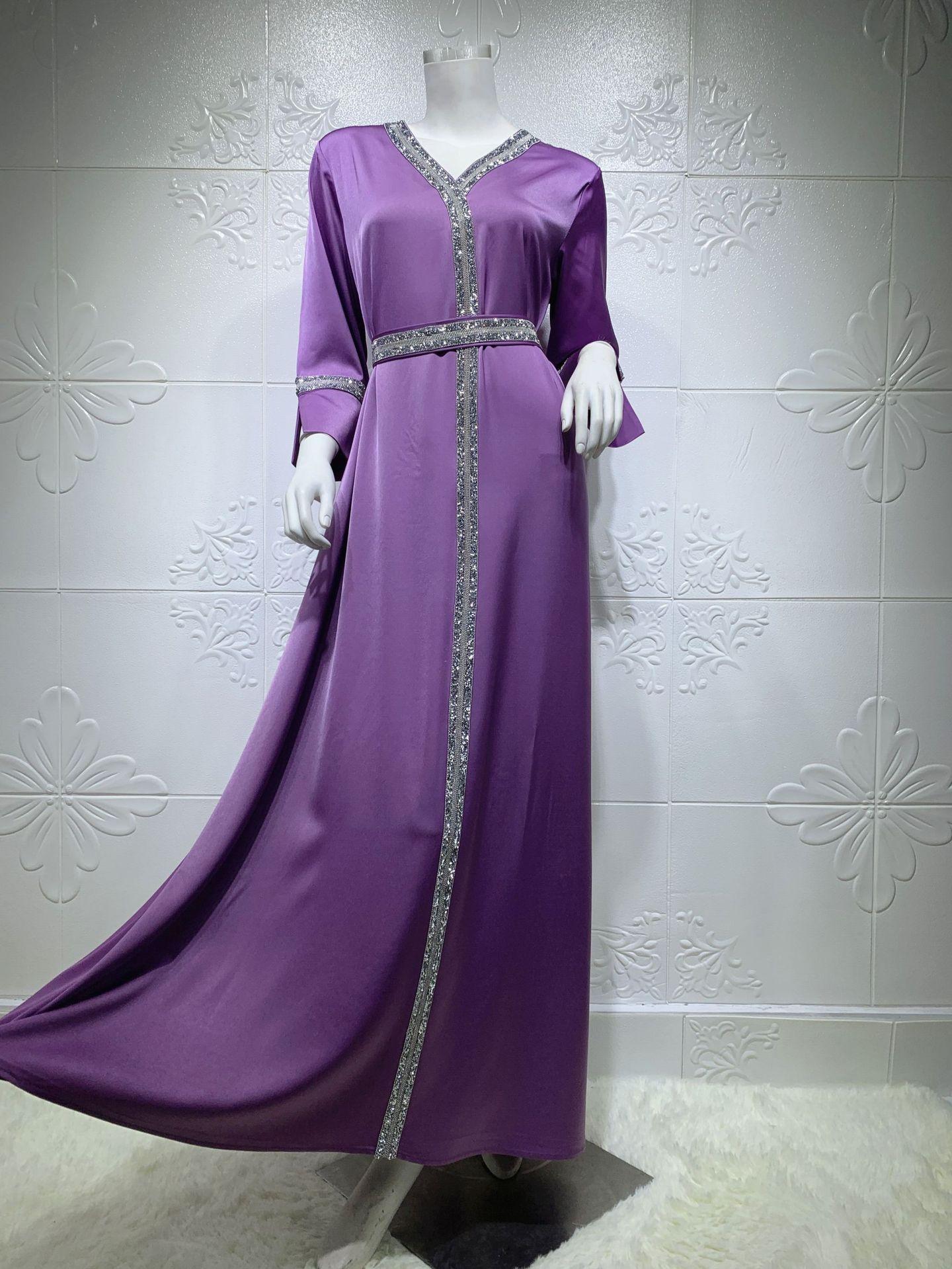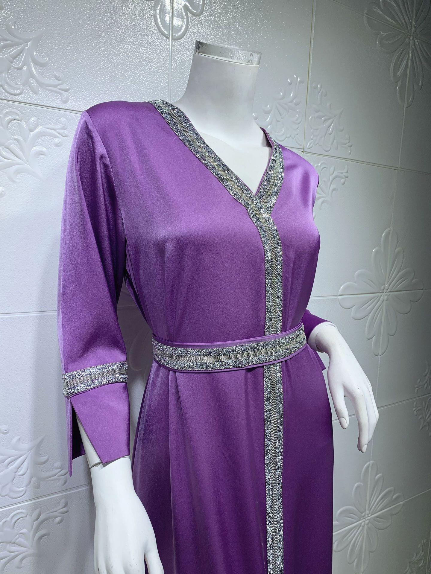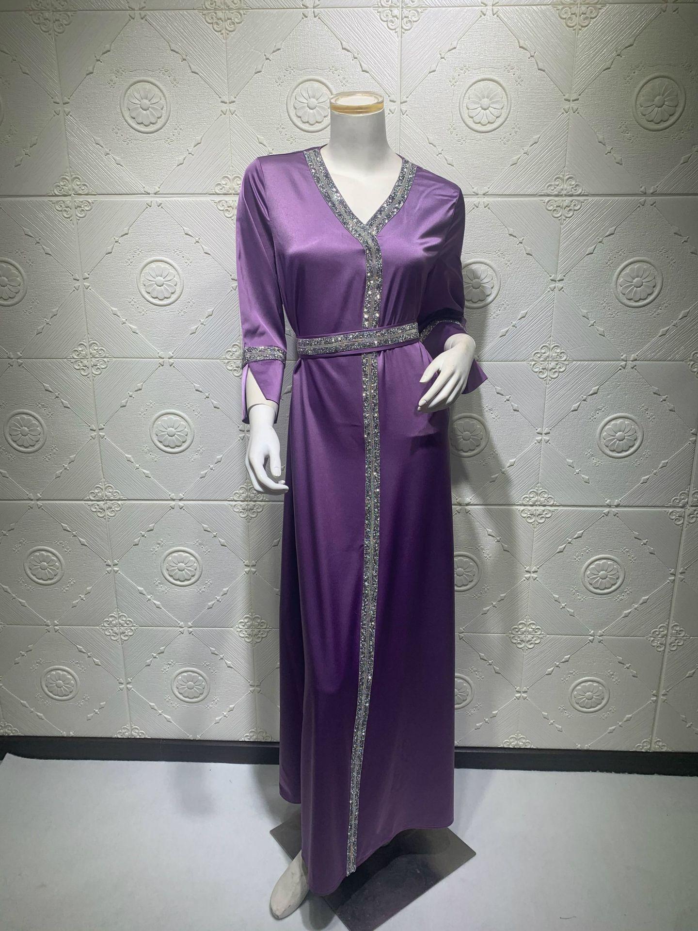 AB014 cinturón de mujer musulmana de Oriente Medio con diamantes de imitación transfronterizo, bata abaya turca larga, ropa de mujer musulmana