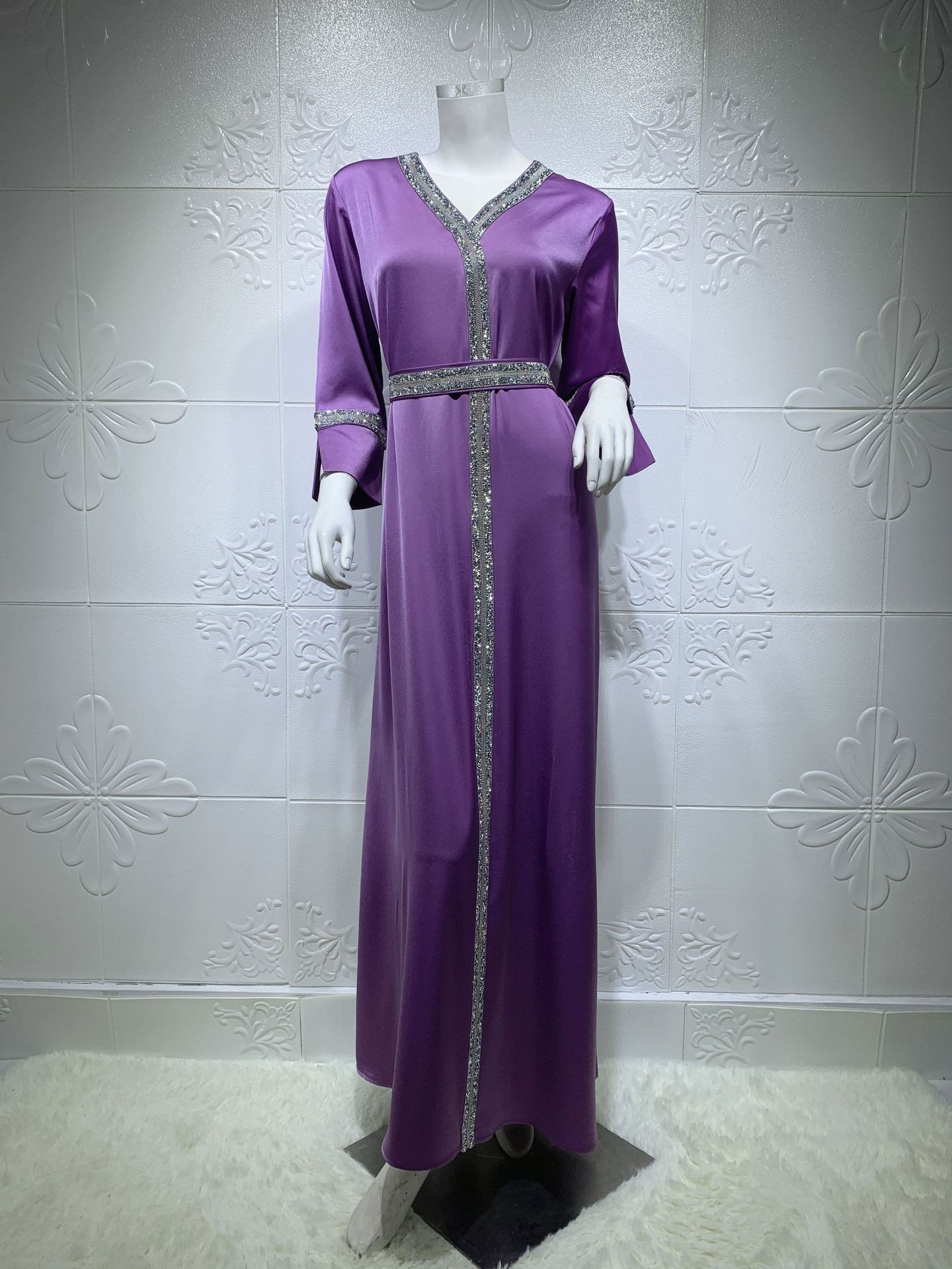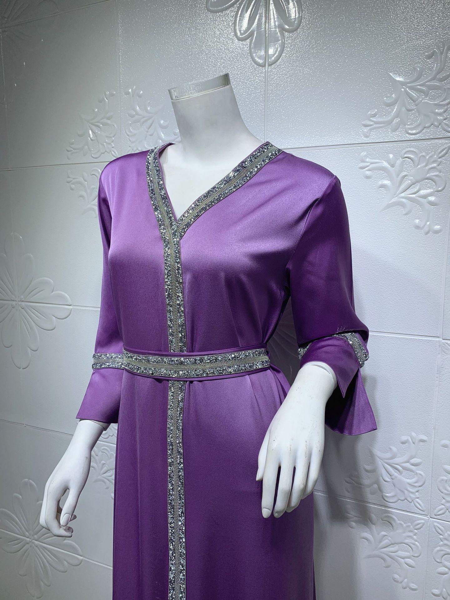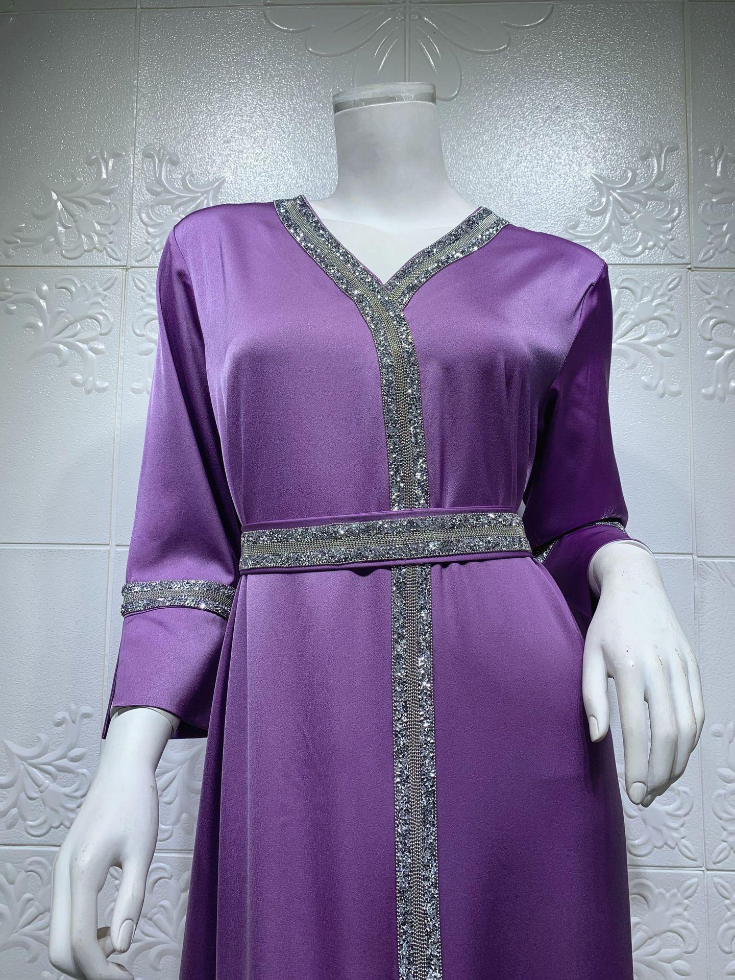 AB014 cinturón de mujer musulmana de Oriente Medio con diamantes de imitación transfronterizo, bata abaya turca larga, ropa de mujer musulmana