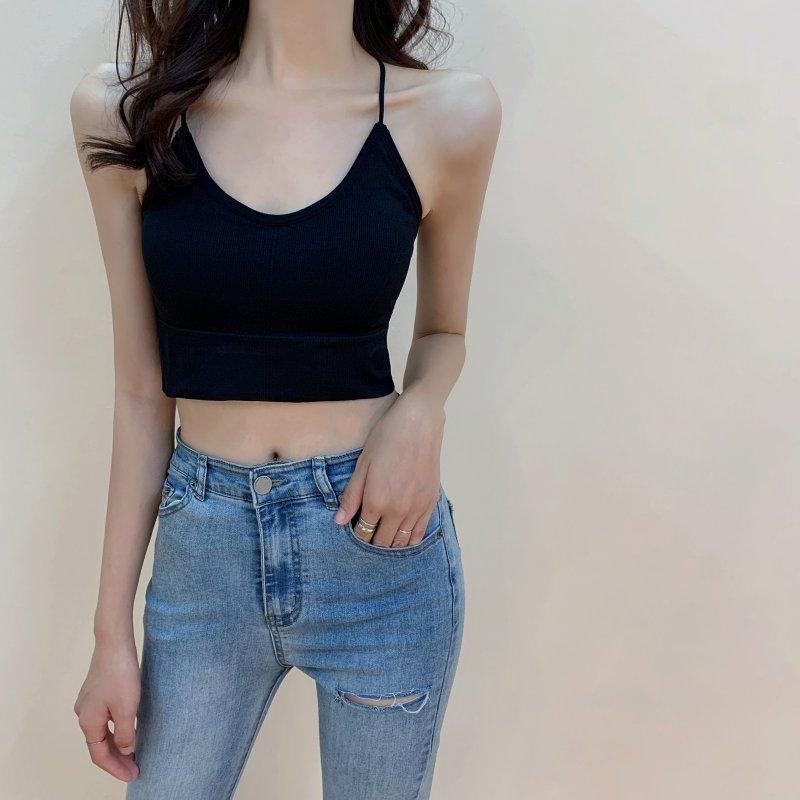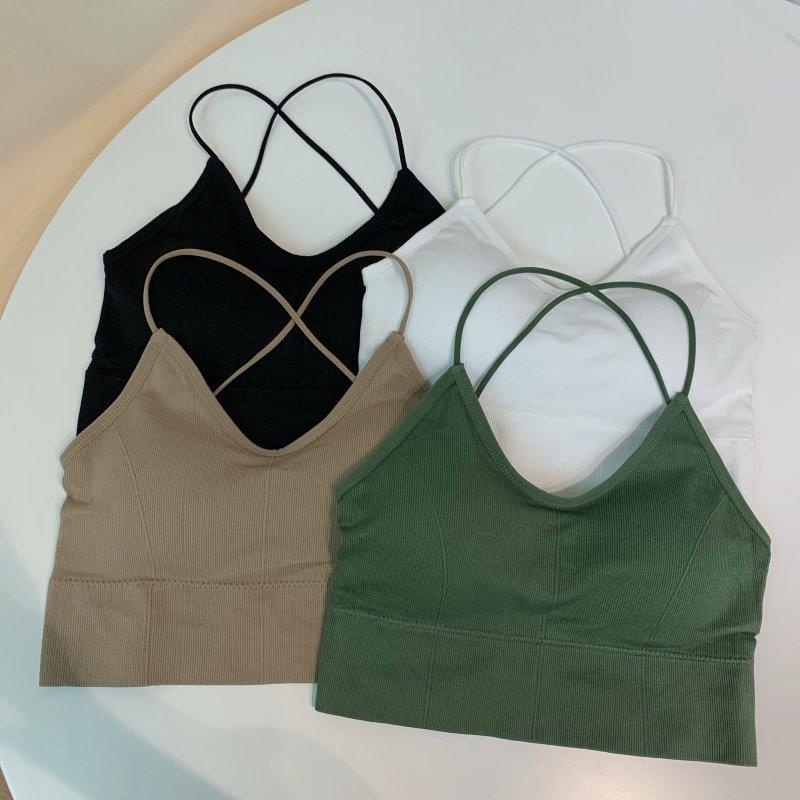 Camisola de encaje con espalda cruzada para mujer, nuevo estilo 2023, interior de algodón puro con almohadilla para el pecho, ropa interior sexy para el exterior.