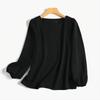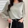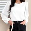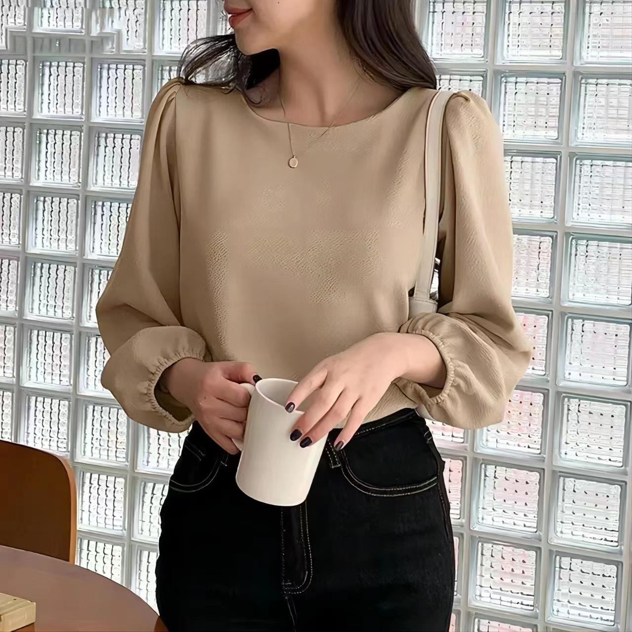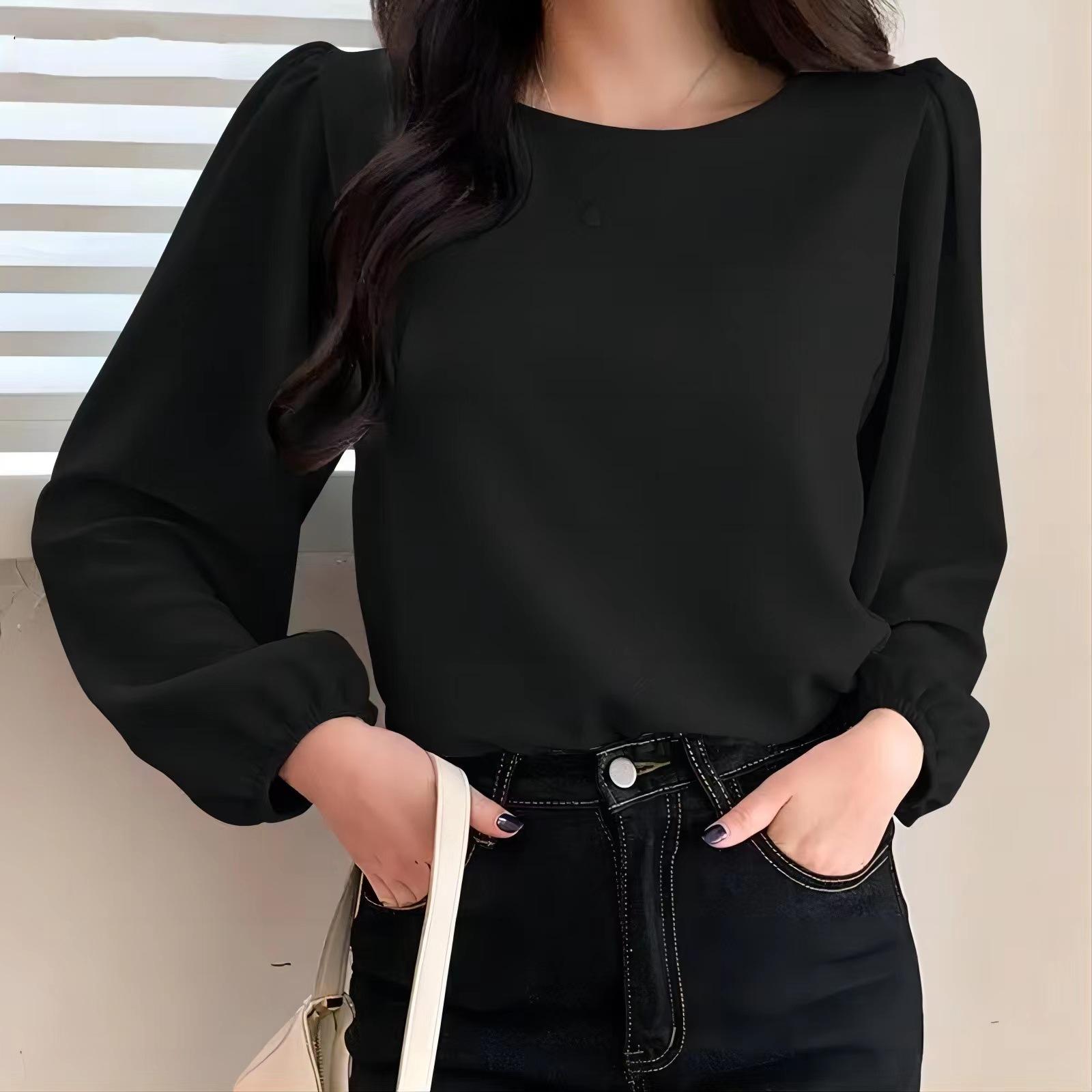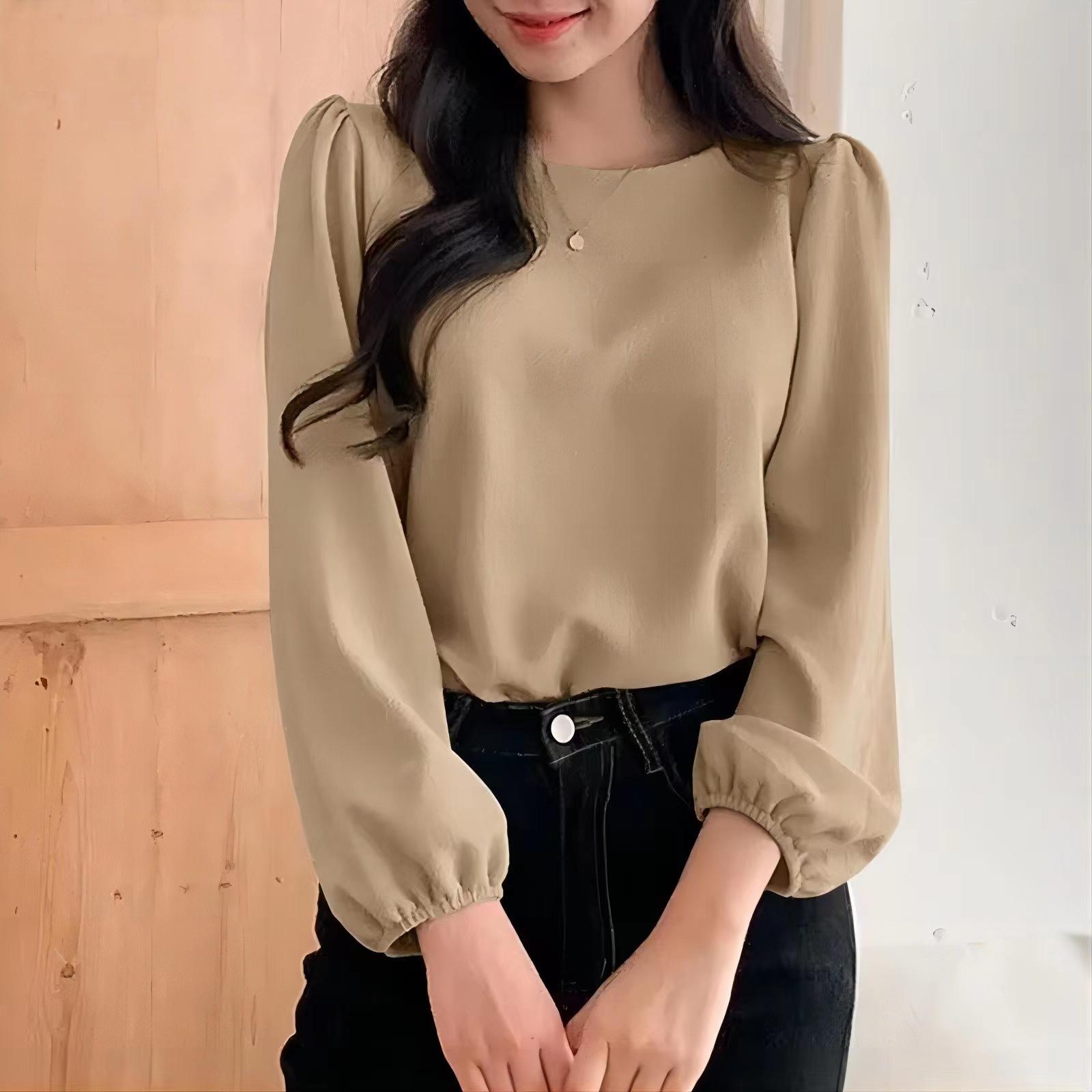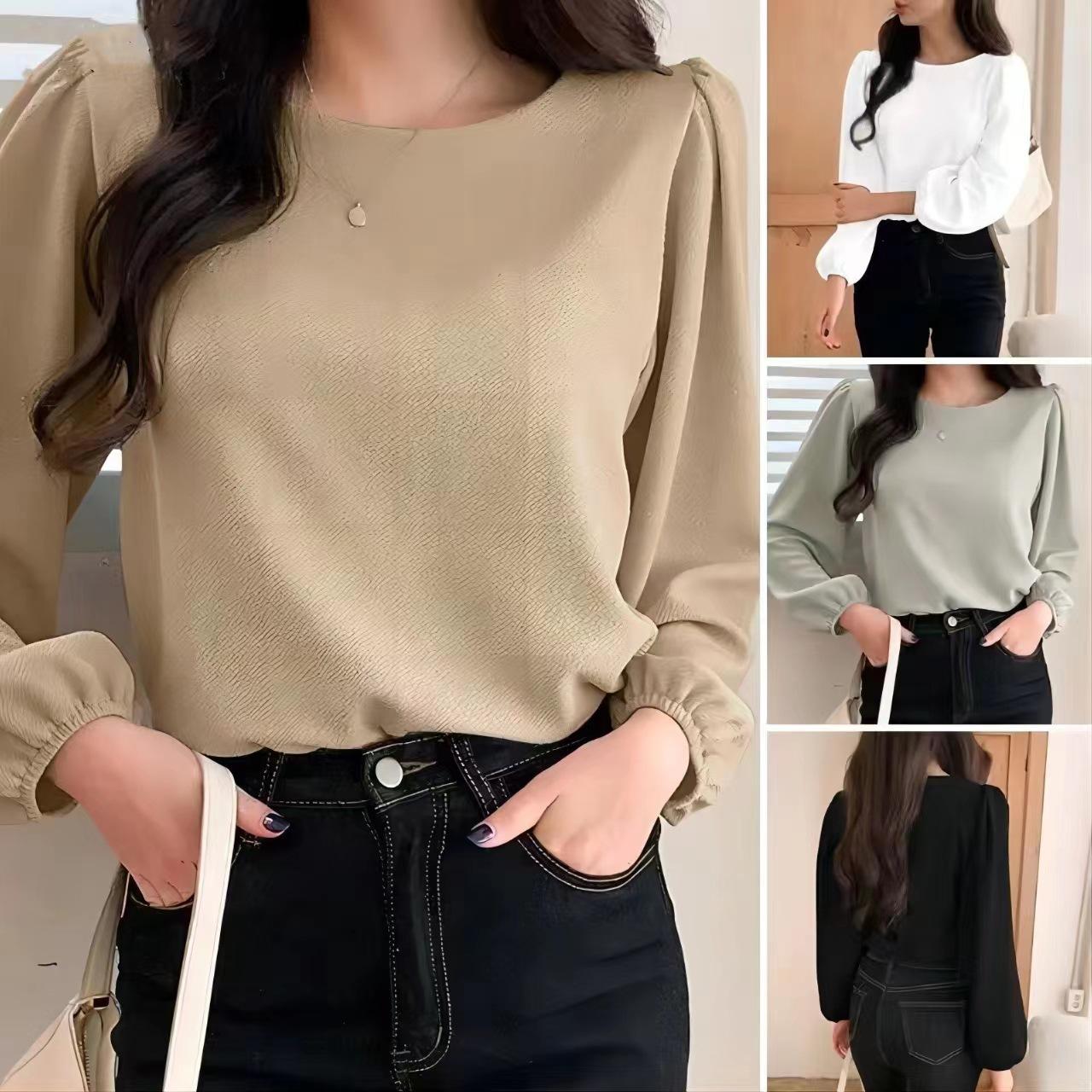 Camisa de manga abullonada para mujer, elegante, de color sólido, con cuello redondo, informal, para primavera 2024, comercio exterior transfronterizo