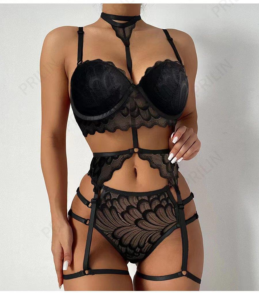 Lencería Sexy de Comercio Exterior, Pechos Pequeños, Broma de Tres Puntos, Tentación Transparente, Pijama de Cama, Traje de Pasión, Sin Aro