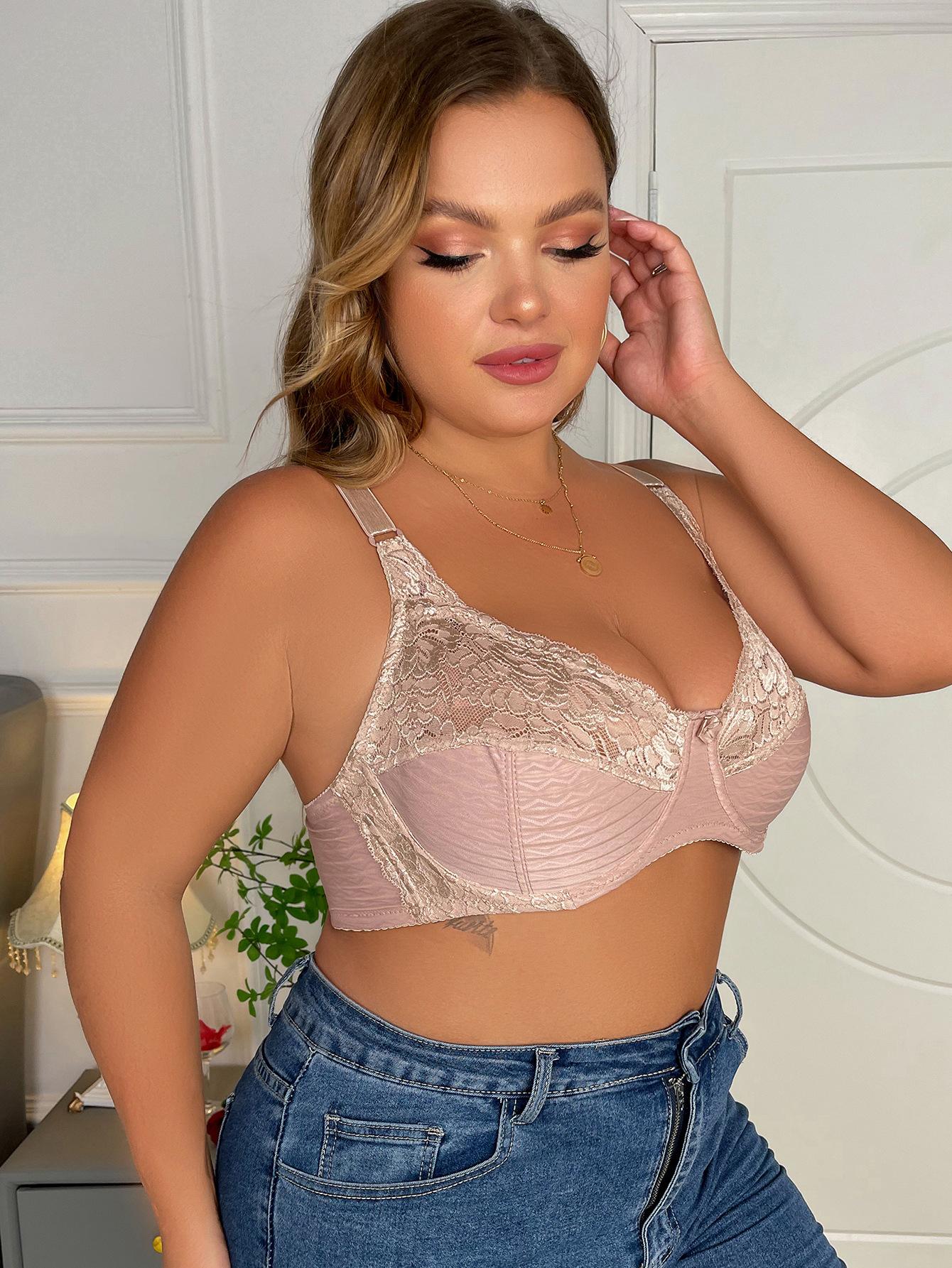 Un sujetador ajustable de talla grande con aro de acero cruzado ultrafino con rayas europeas y americanas.