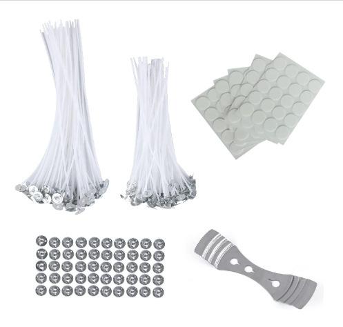 Mechas para velas de 15cm y 20cm Mechas de algodón para velas 100 piezas Pegatinas para mechas de algodón para velas 50 piezas Etiquetas metálicas
