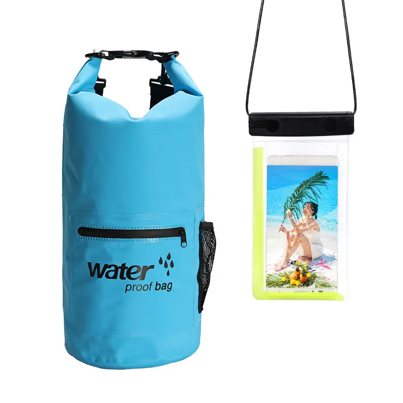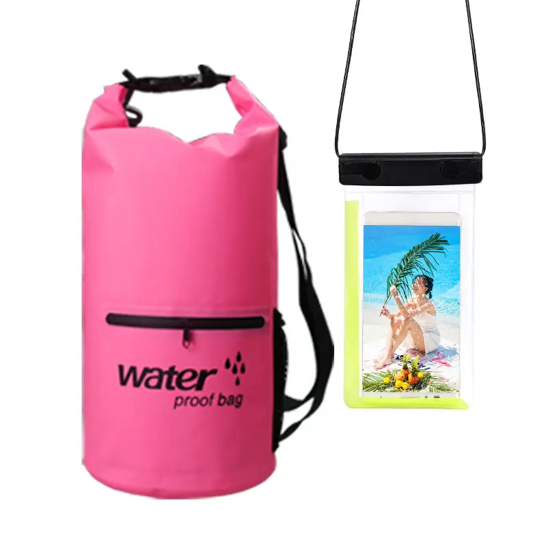 Bolsa impermeable para natación con bolsillo con cremallera, bolsa impermeable para exteriores de PVC, bolsa impermeable para playa, bolsa impermeable para la deriva.