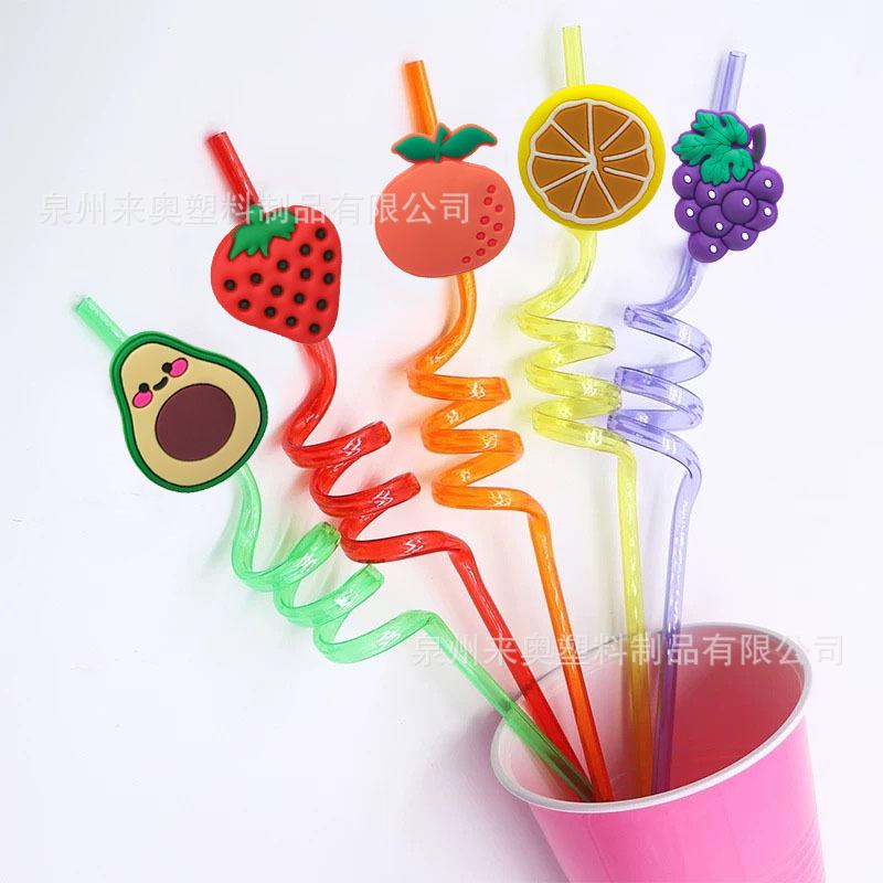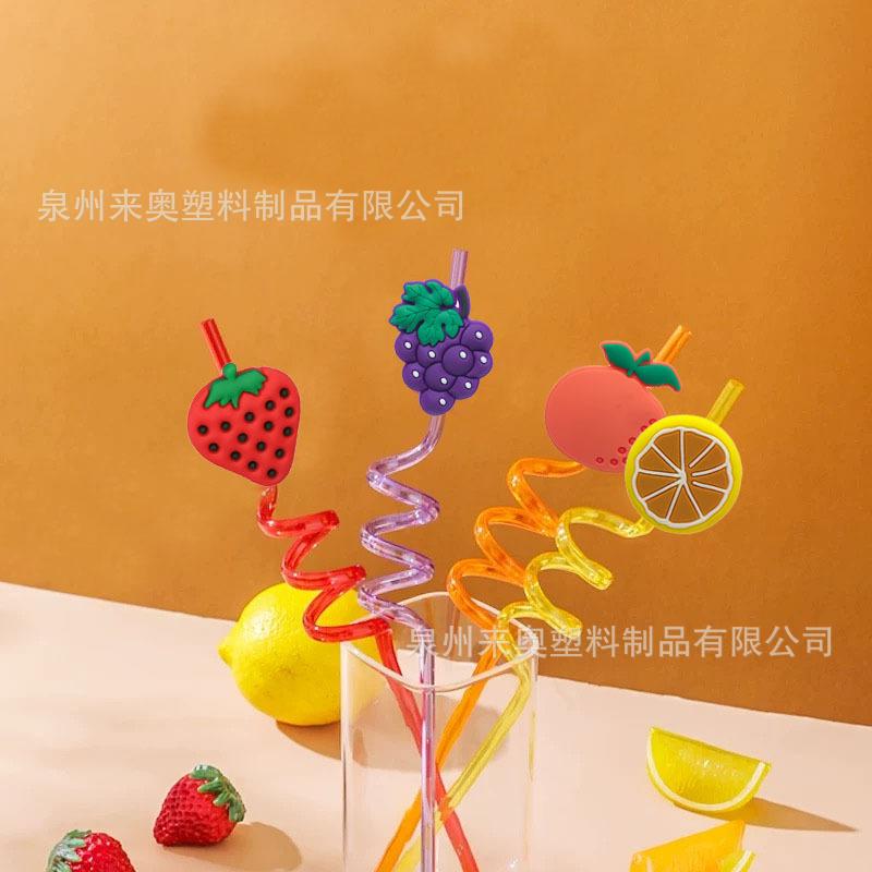 Venta Caliente Nuevos Accesorios de Tapón de Pajita de Fruta en stock Dibujo Animado Limón PVC Pegamento Suave Soporte para Pajita Transfronterizo