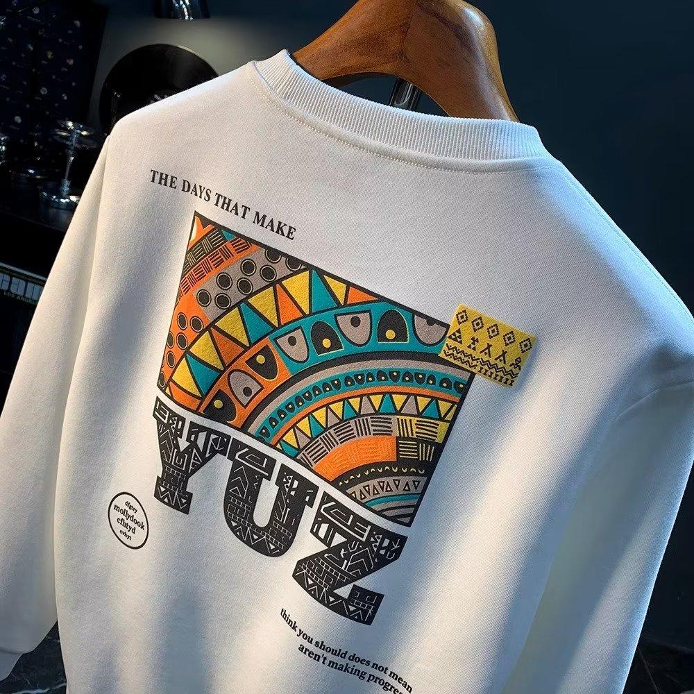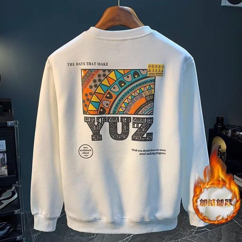 Nuevo suéter con capucha para hombre forrado de polar, holgado, pesado, vintage, con estampado de dibujos animados, abrigo de manga larga