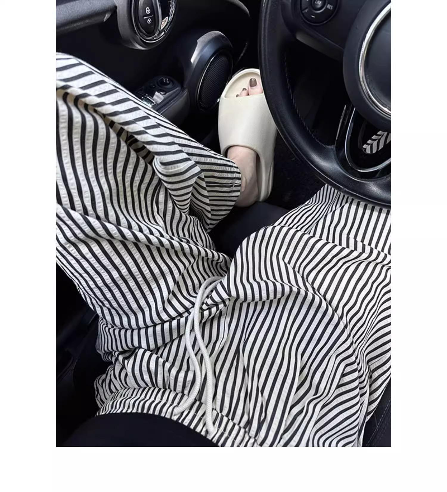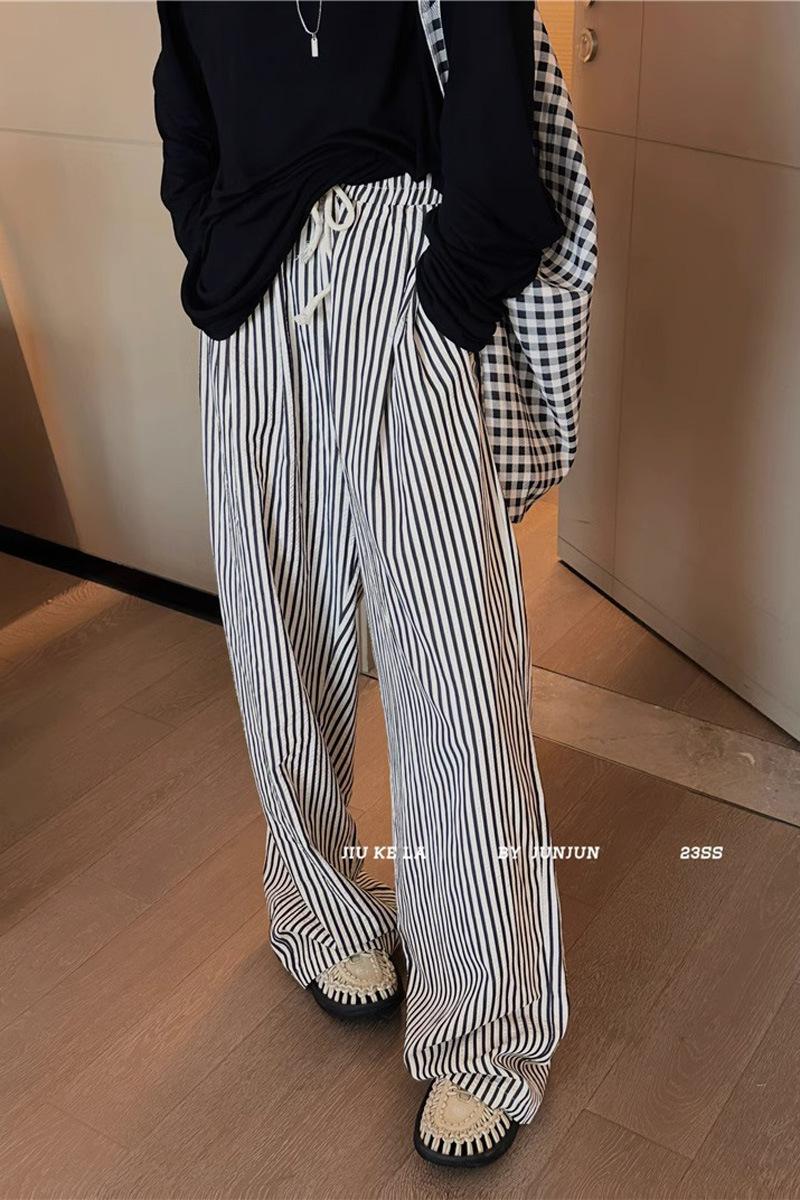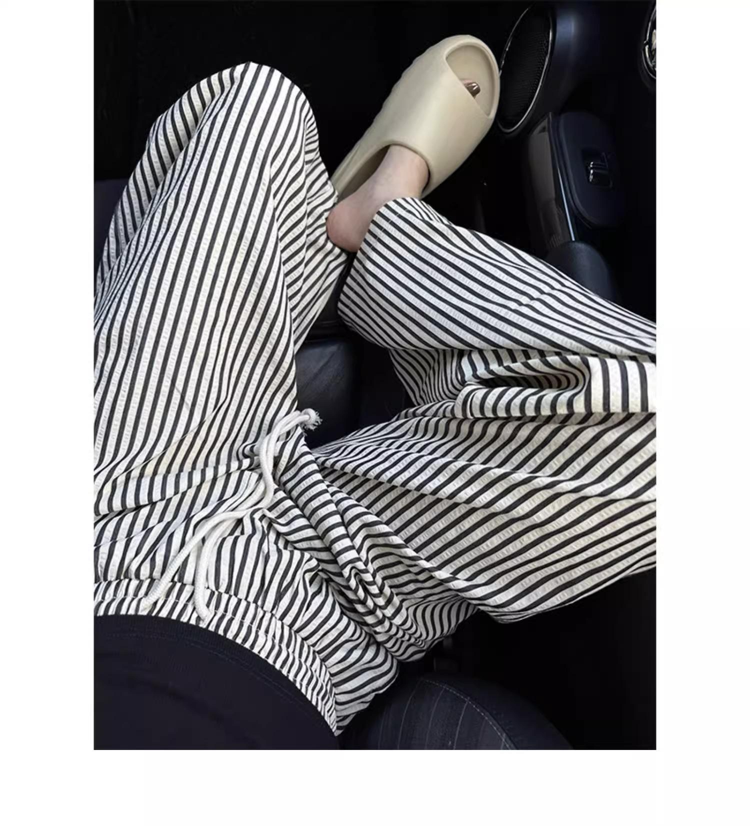 Pantalones anchos con cordones y rayas de verano de 150 cm para mujer, talla pequeña 145, cintura alta, rectos y drapeados, talla XS