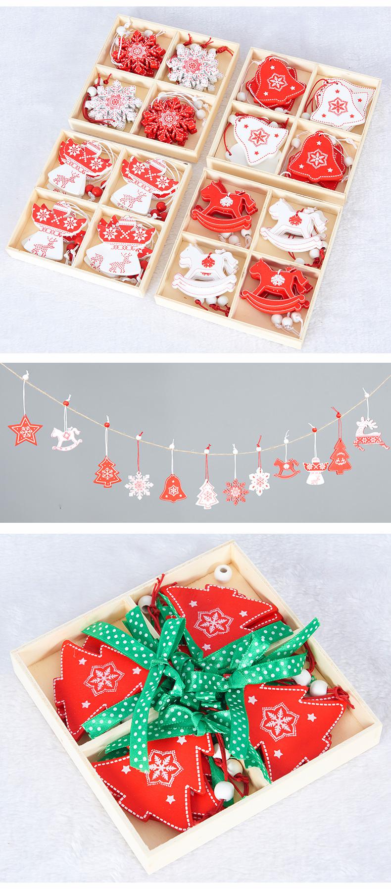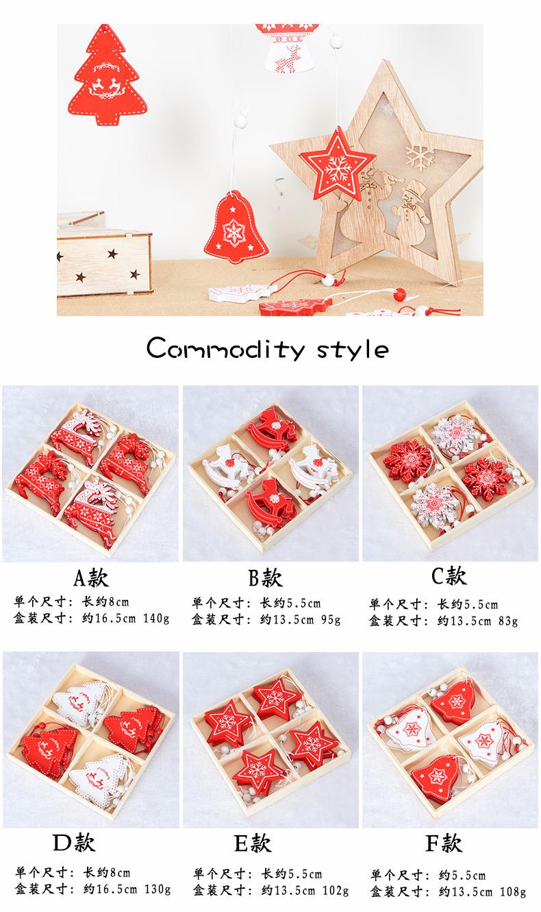 Type A large elk, Type B red and white rocking horse, Wooden pendant-C style red and white snowflake, D type l...