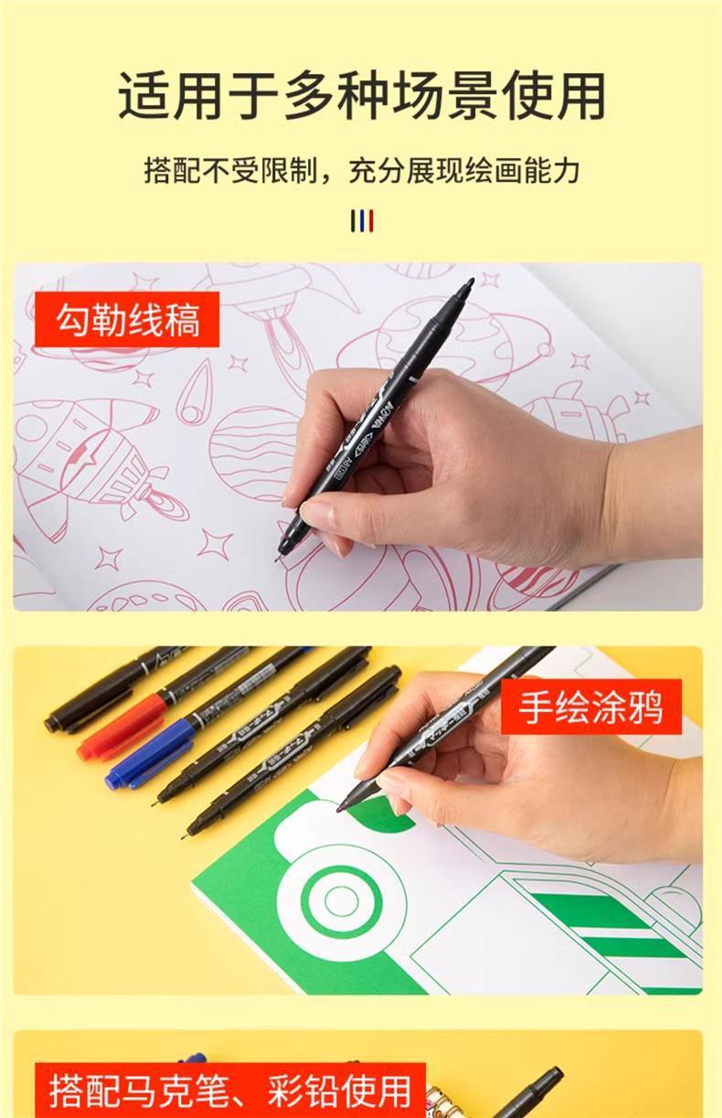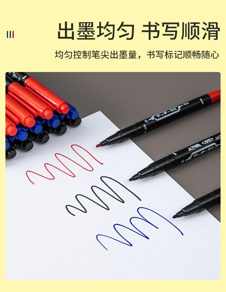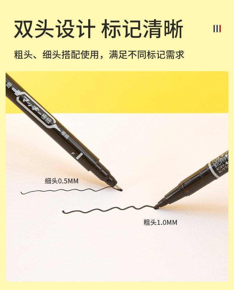 Marcador de doble punta negro resistente al agua a prueba de aceite que no se decolora resistente al agua de punta gruesa aceitoso de punta grande bolígrafo de señalización estudiante oficinista