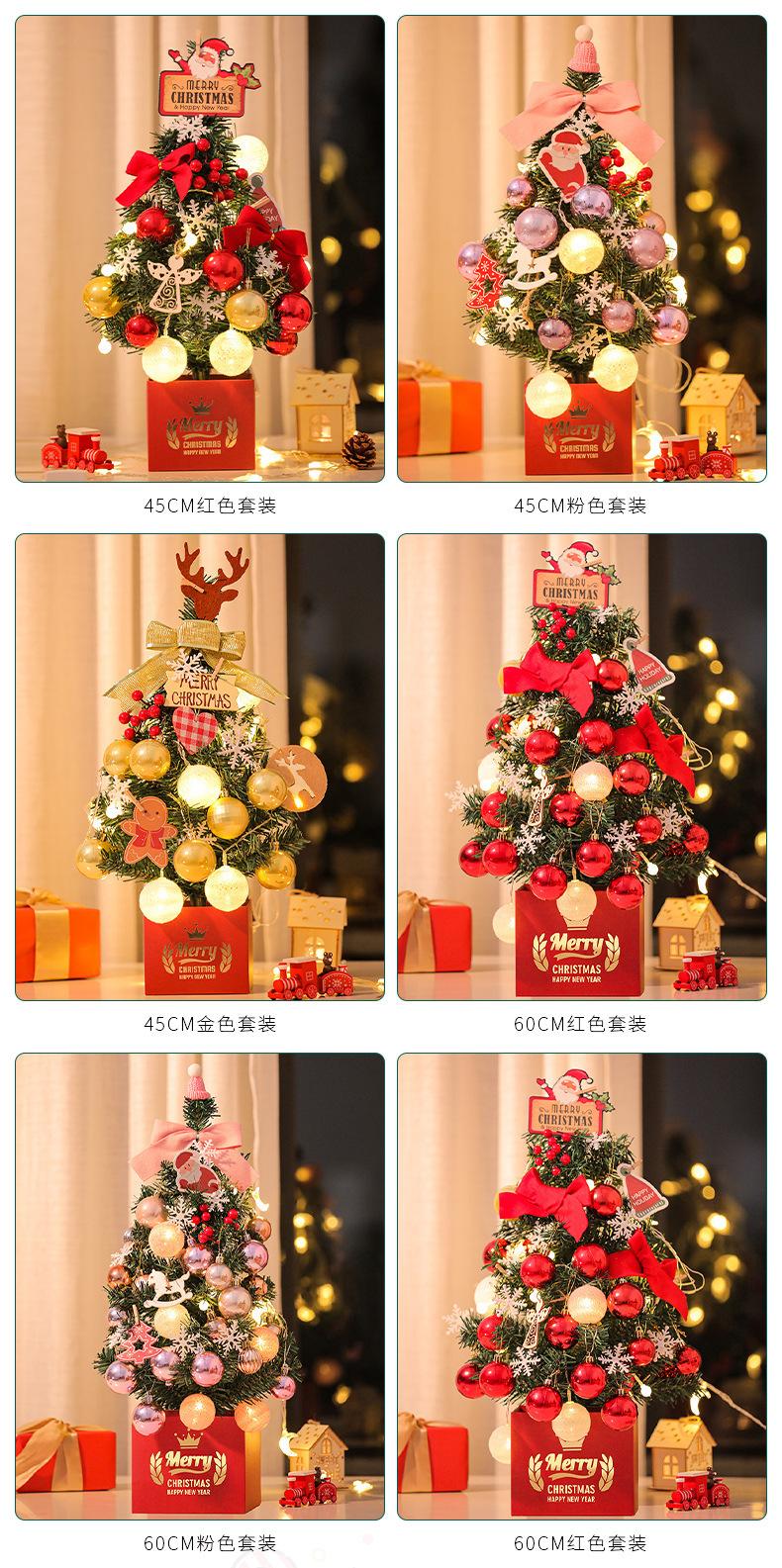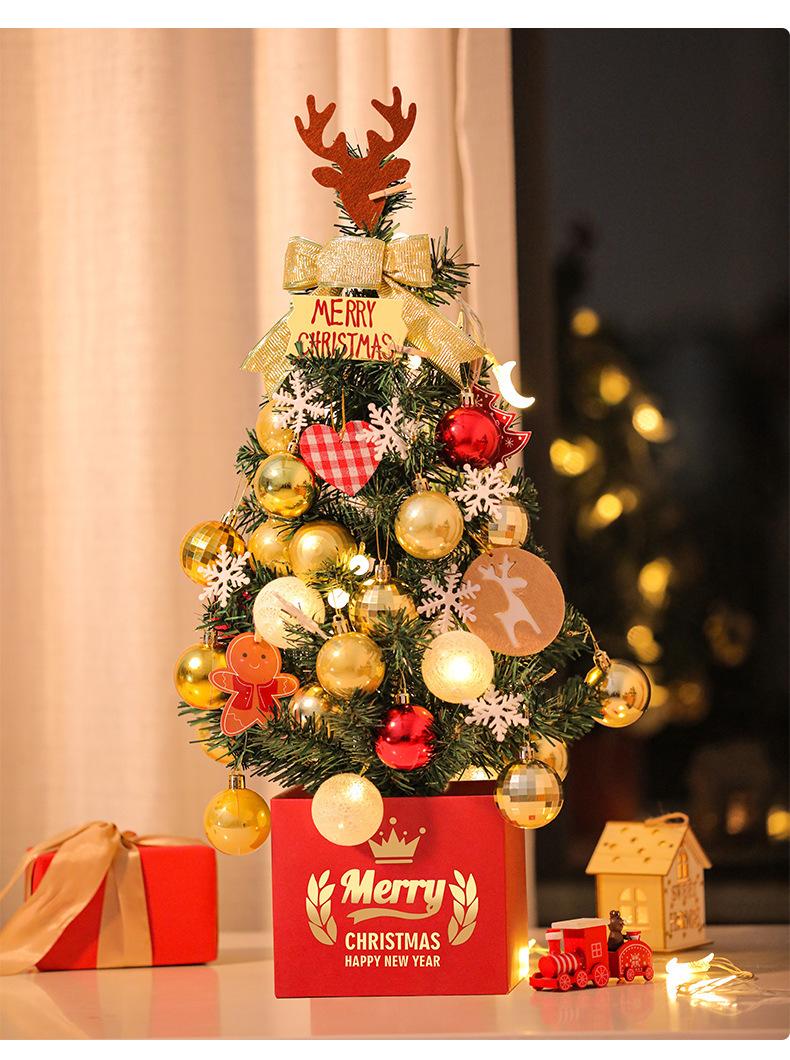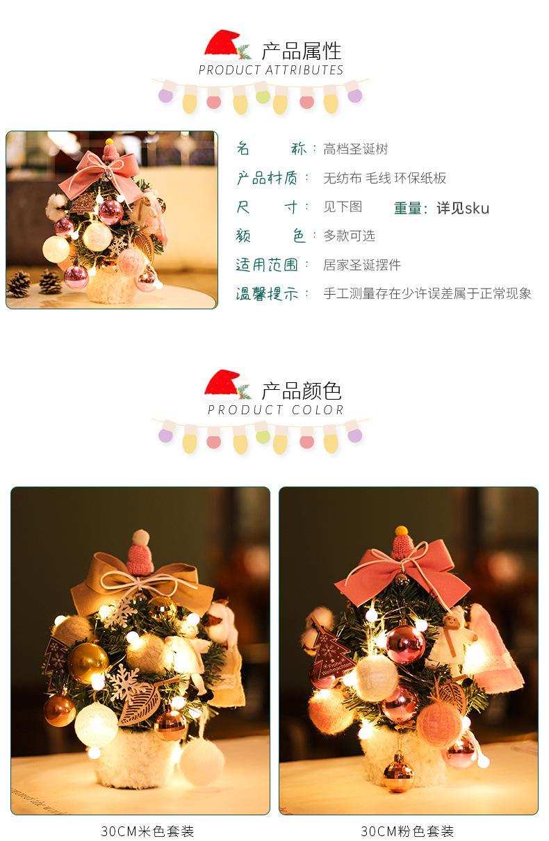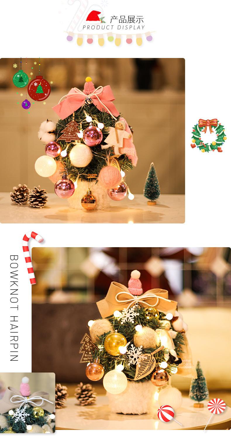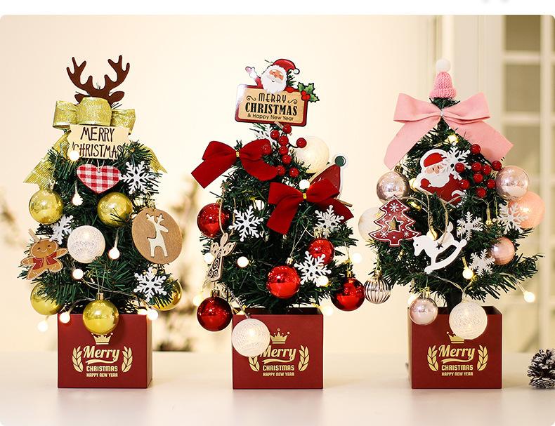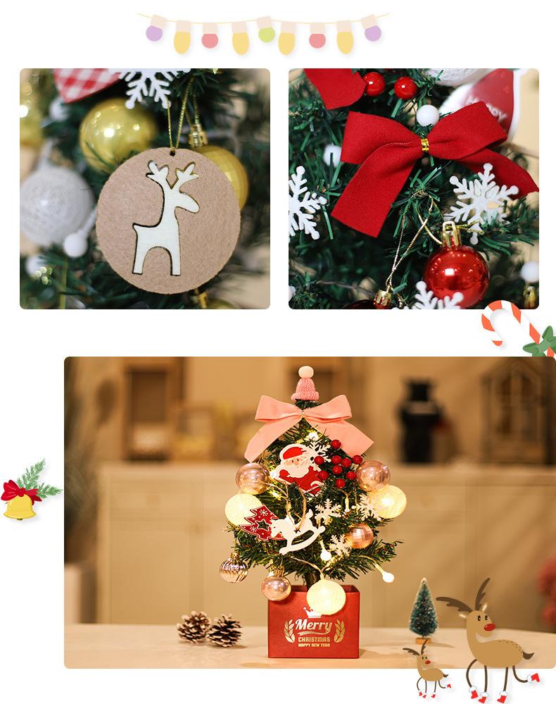 Mini árbol de Navidad blanco flocado, paquete de adornos para árbol de Navidad, pequeño traje cifrado, bolsa de material de escritorio