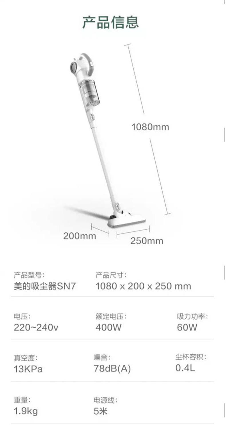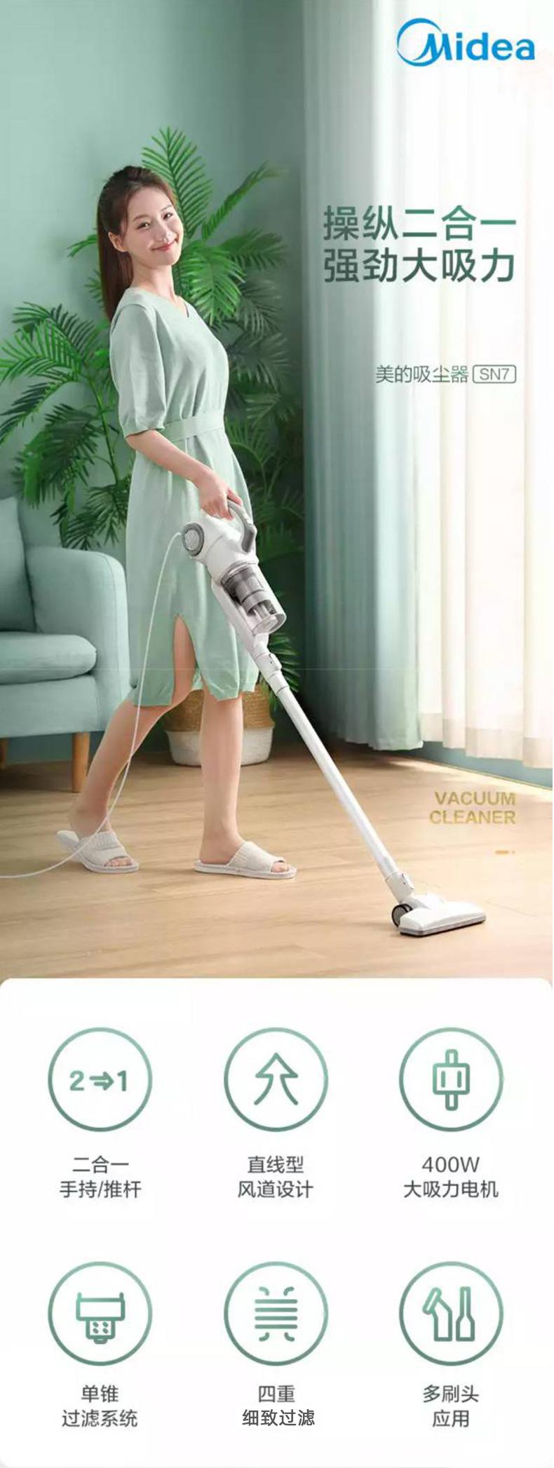 Aspiradora de mano vertical Midea SN7 con varilla de empuje, 2 en 1, para el hogar, de fuerte succión