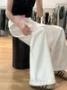Pantalones anchos de algodón y lino blancos para mujer en verano, pantalones holgados de seda fina con caída recta y fregona.