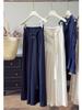 Pantalones anchos y finos de cintura alta de algodón y lino blancos para mujer, novedad de verano 2025, pantalones rectos de seda helada con drapeado relajante.