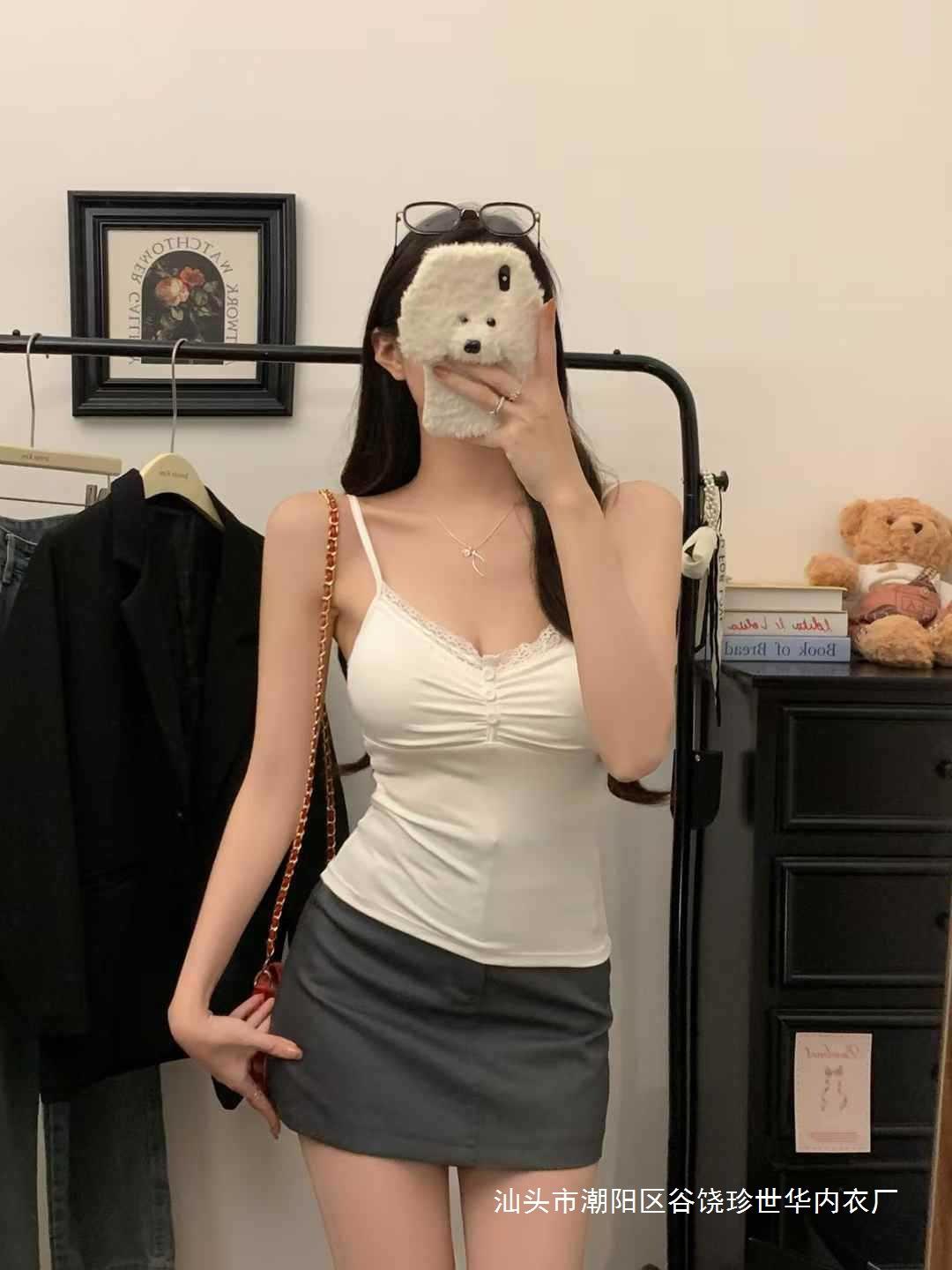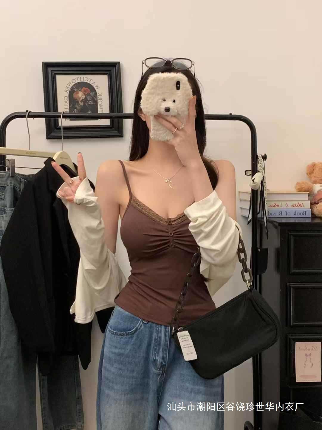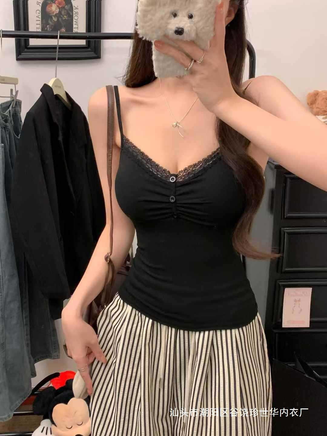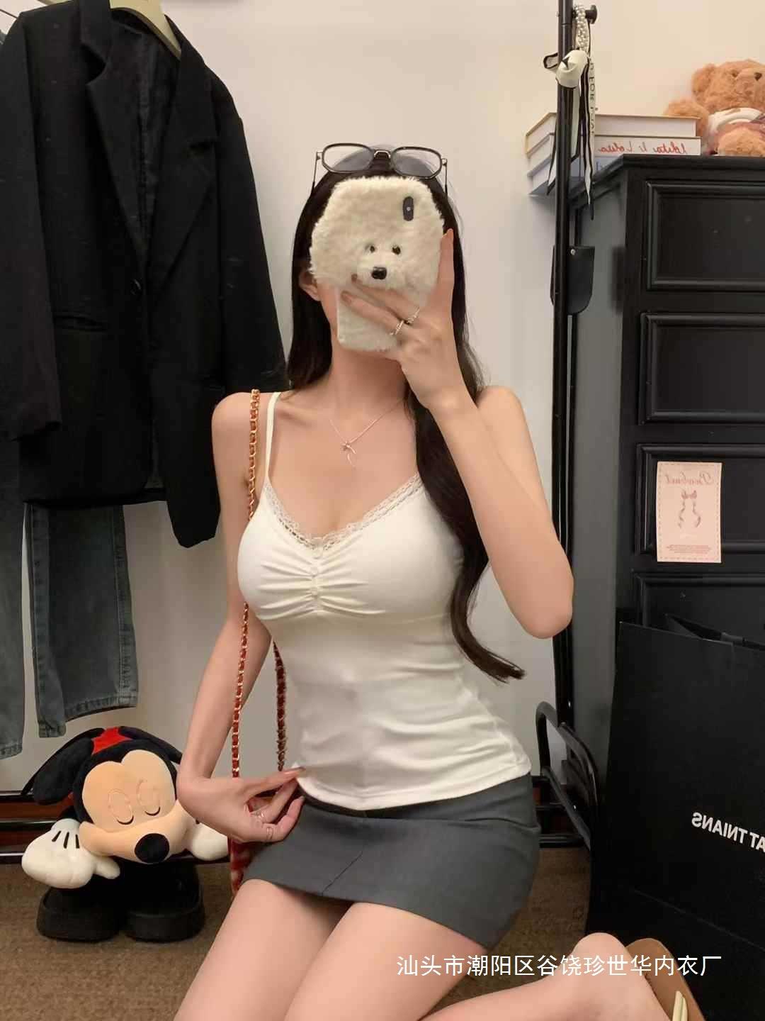 791# Top sin mangas con tirantes de encaje y escote en V ajustado de rayón para mujer, nuevo diseño de chaleco de vacaciones interior de primavera y verano
