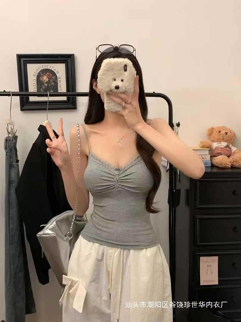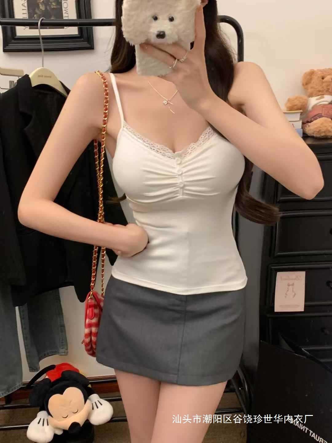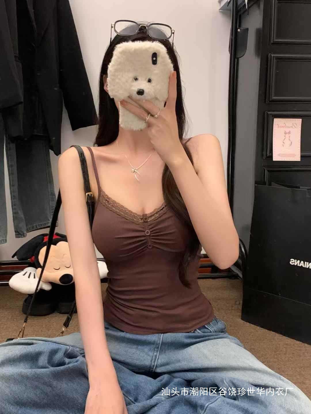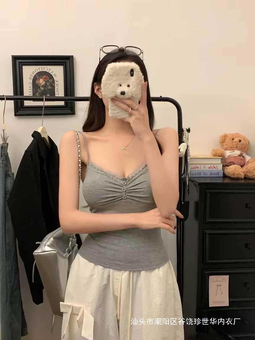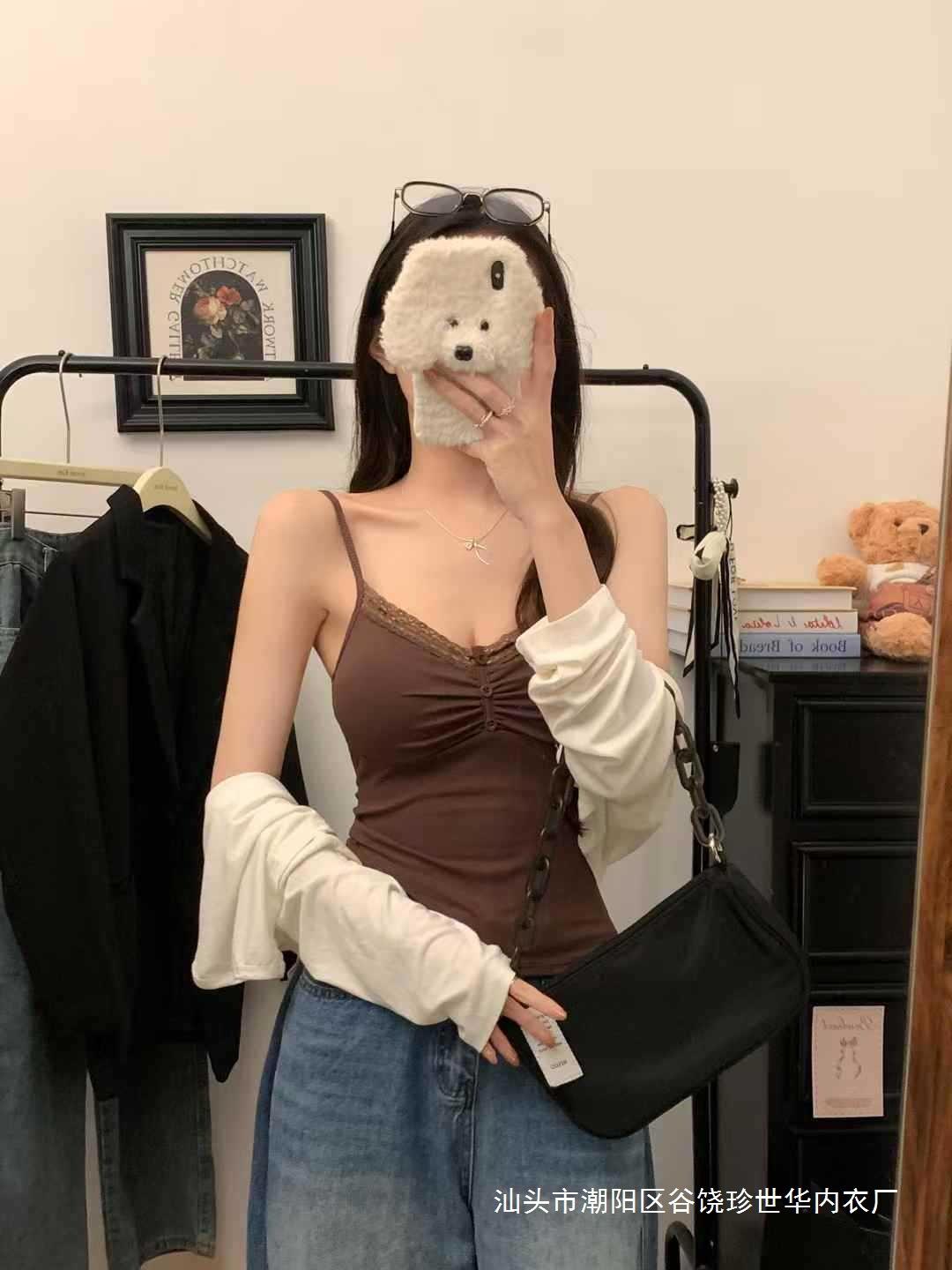 791# Top sin mangas con tirantes de encaje y escote en V ajustado de rayón para mujer, nuevo diseño de chaleco de vacaciones interior de primavera y verano