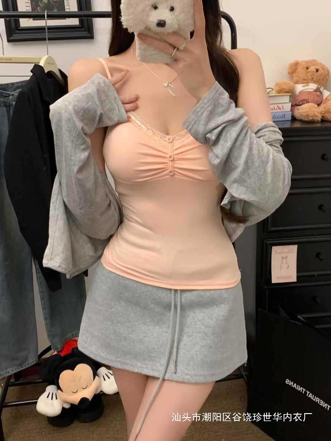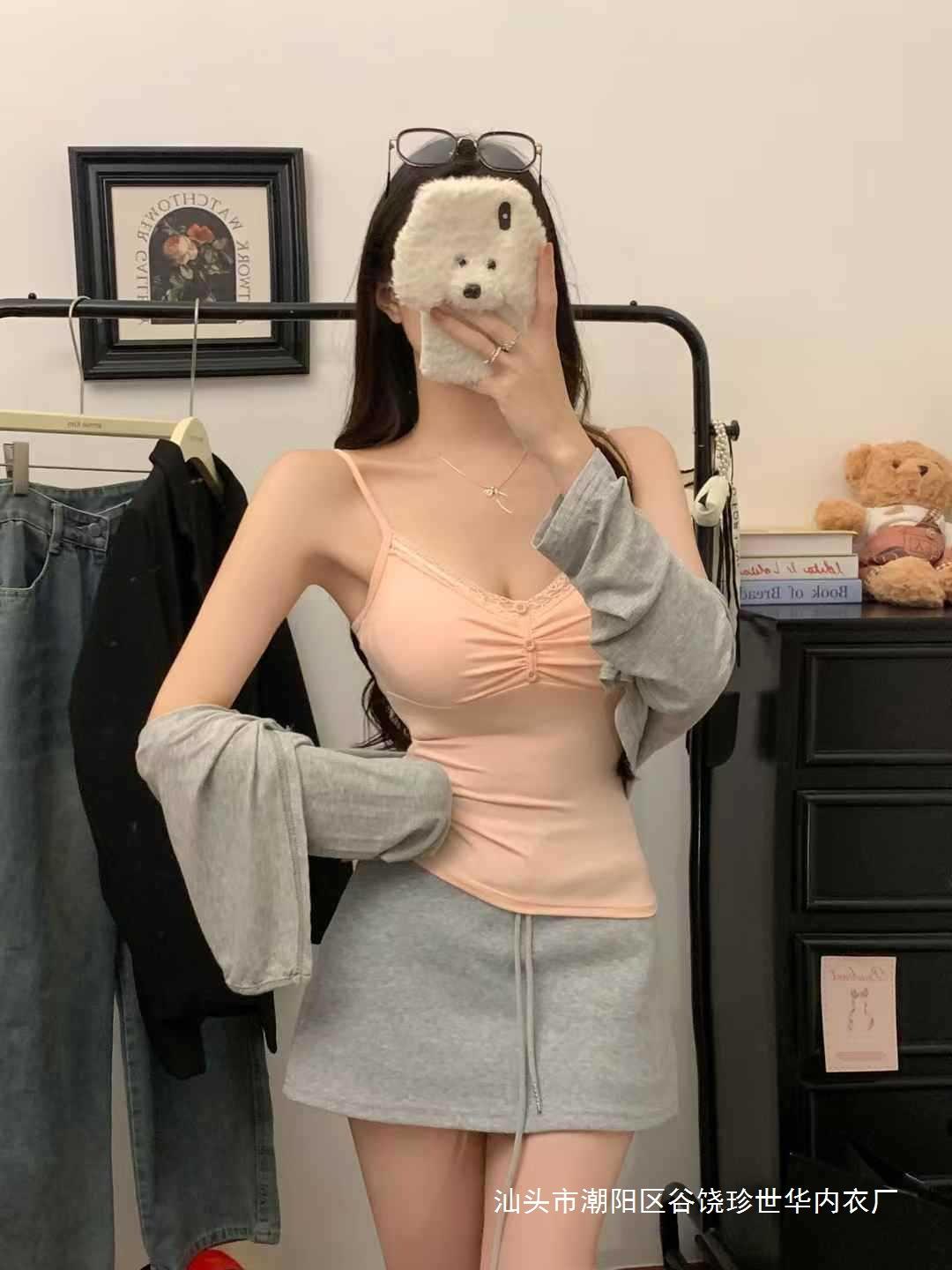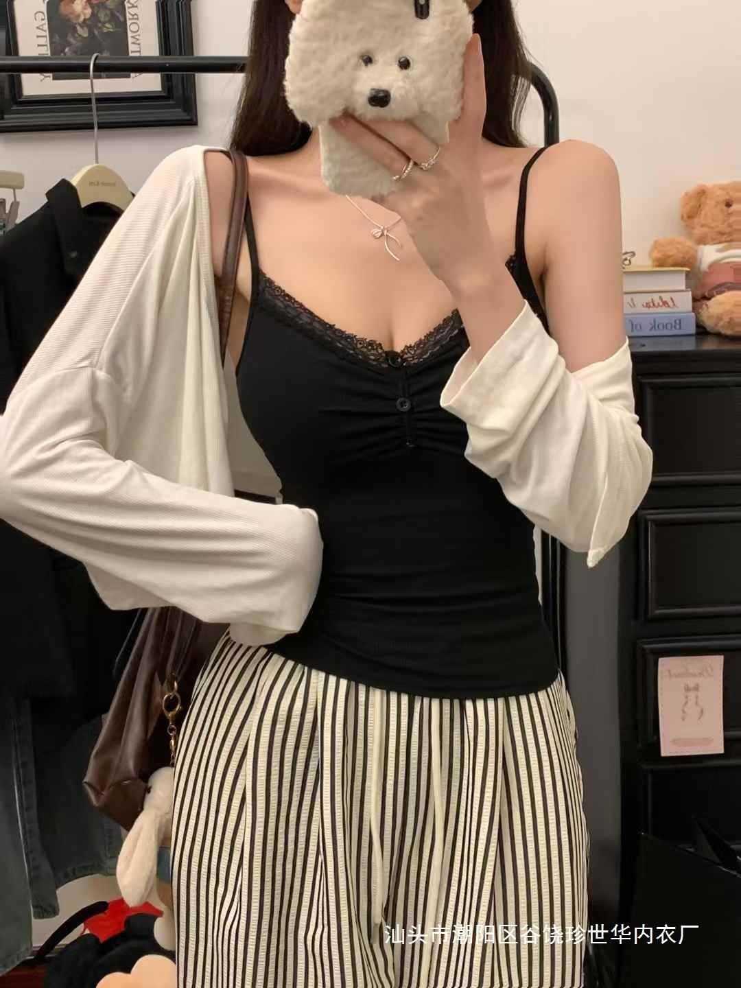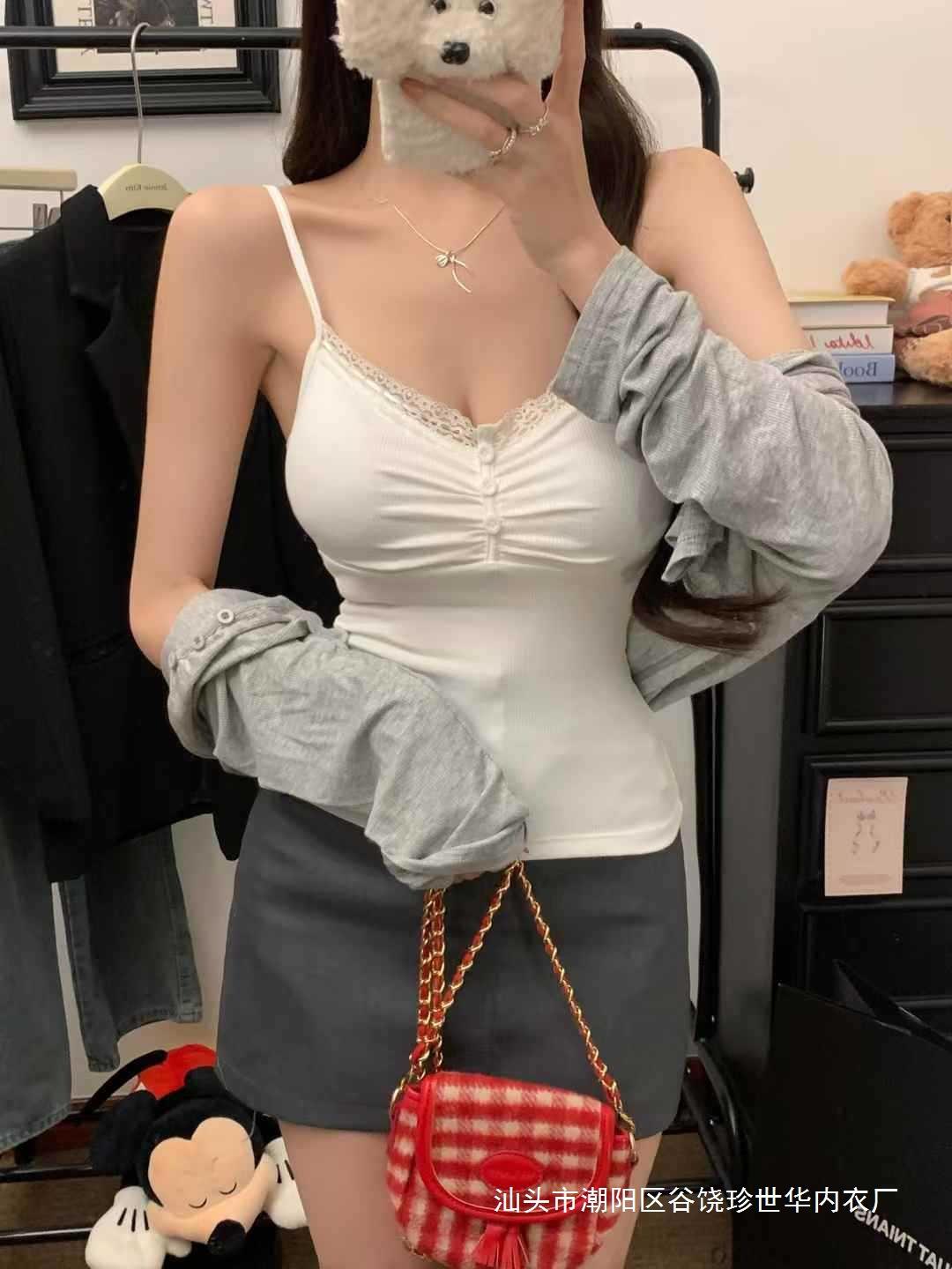 791# Top sin mangas con tirantes de encaje y escote en V ajustado de rayón para mujer, nuevo diseño de chaleco de vacaciones interior de primavera y verano
